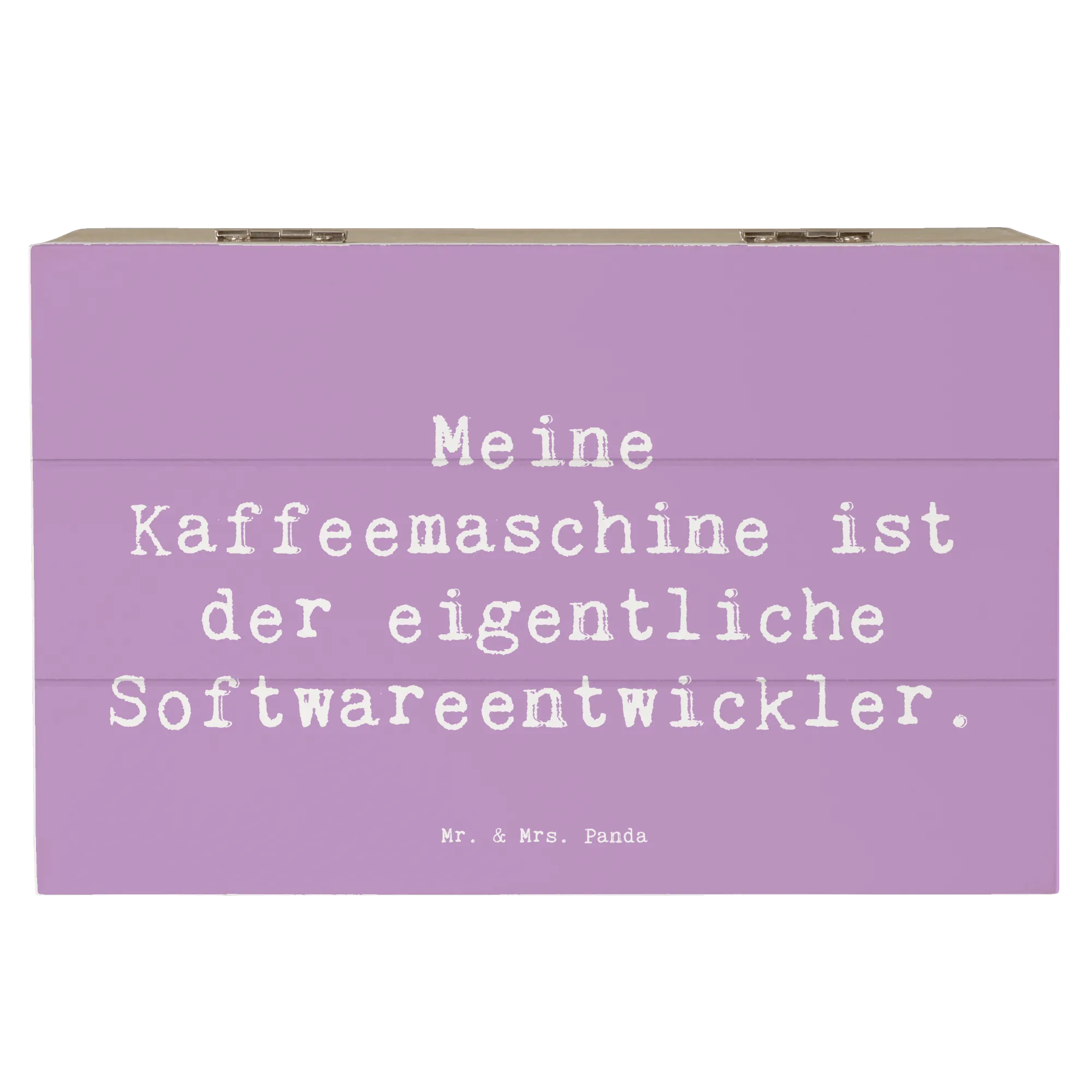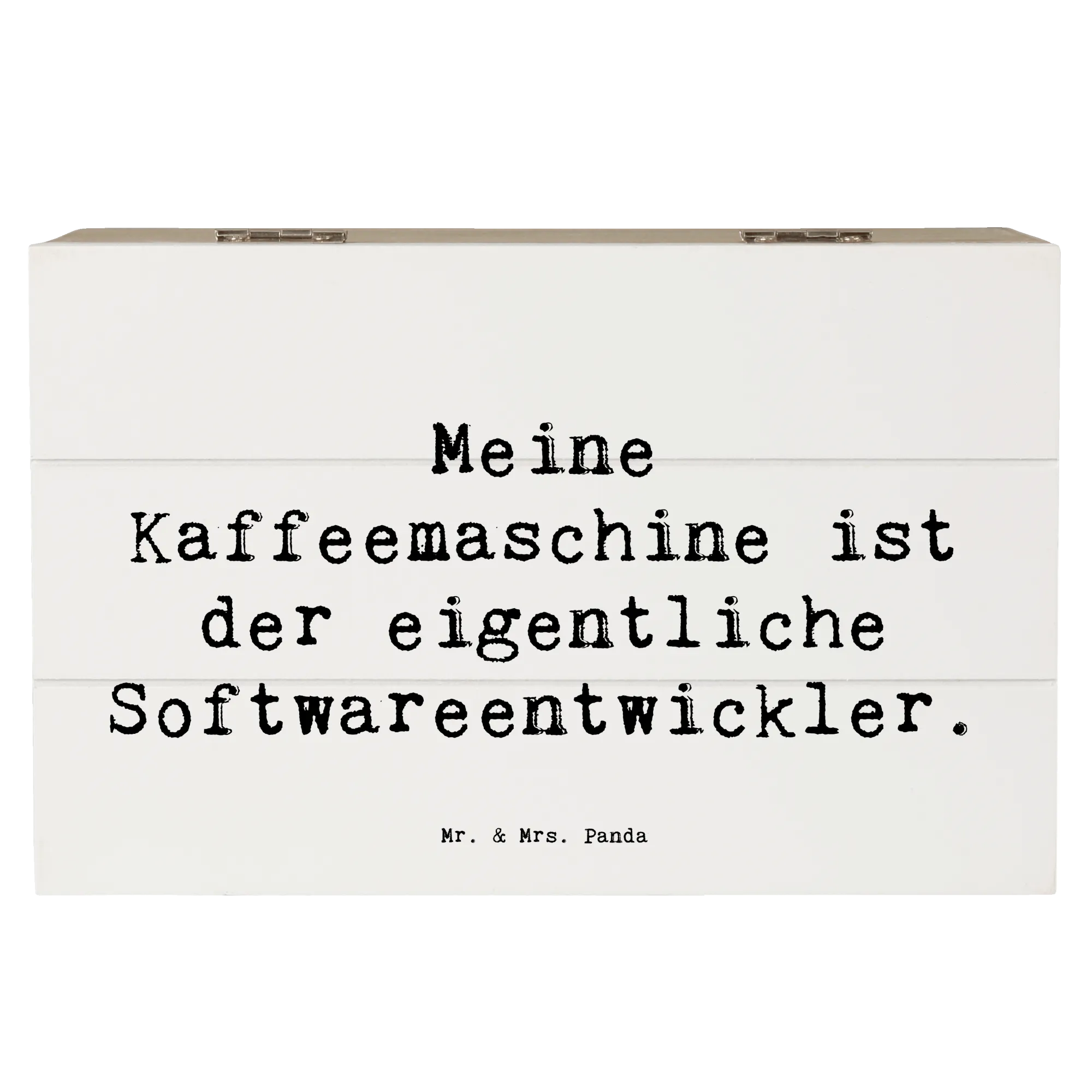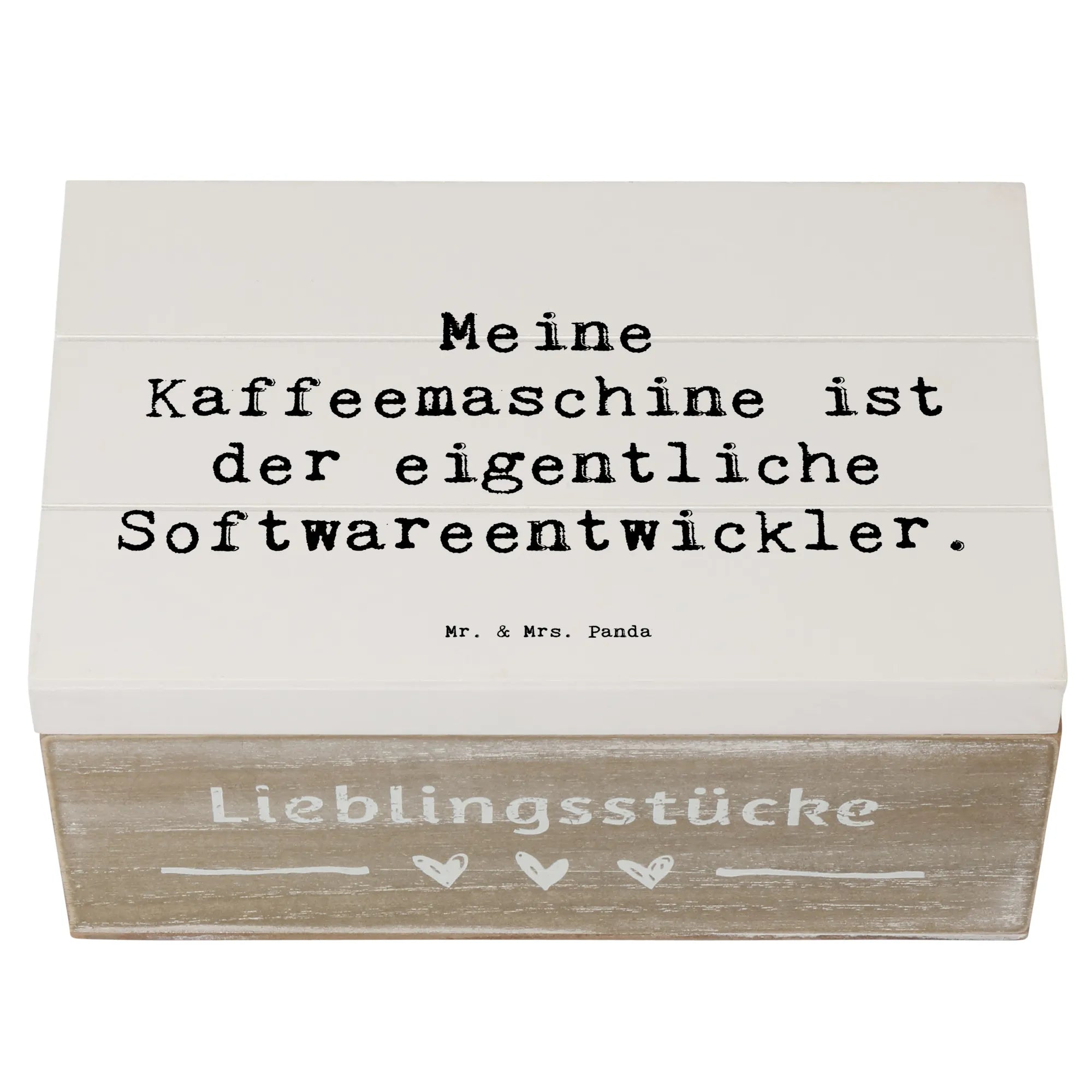 Die wunderschöne Holzkiste von Mr. & Mrs. Panda ist nicht nur ein Blickfang, sondern auch das perfekte Geschenk für alle Softwareentwickler und Technologen. Mit dem liebevollen Motiv "Meine Kaffeemaschine ist der eigentliche Softwareentwickler." ist diese Kiste ein humorvolles und zugleich praktisches Accessoire für jeden Programmierer.
