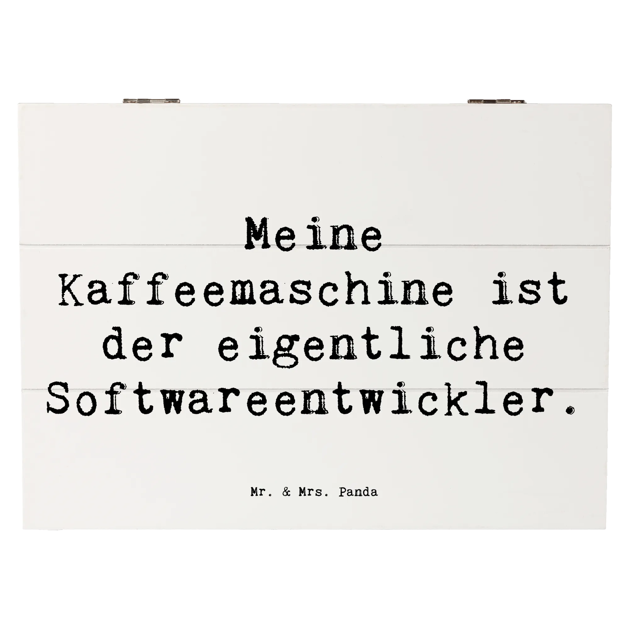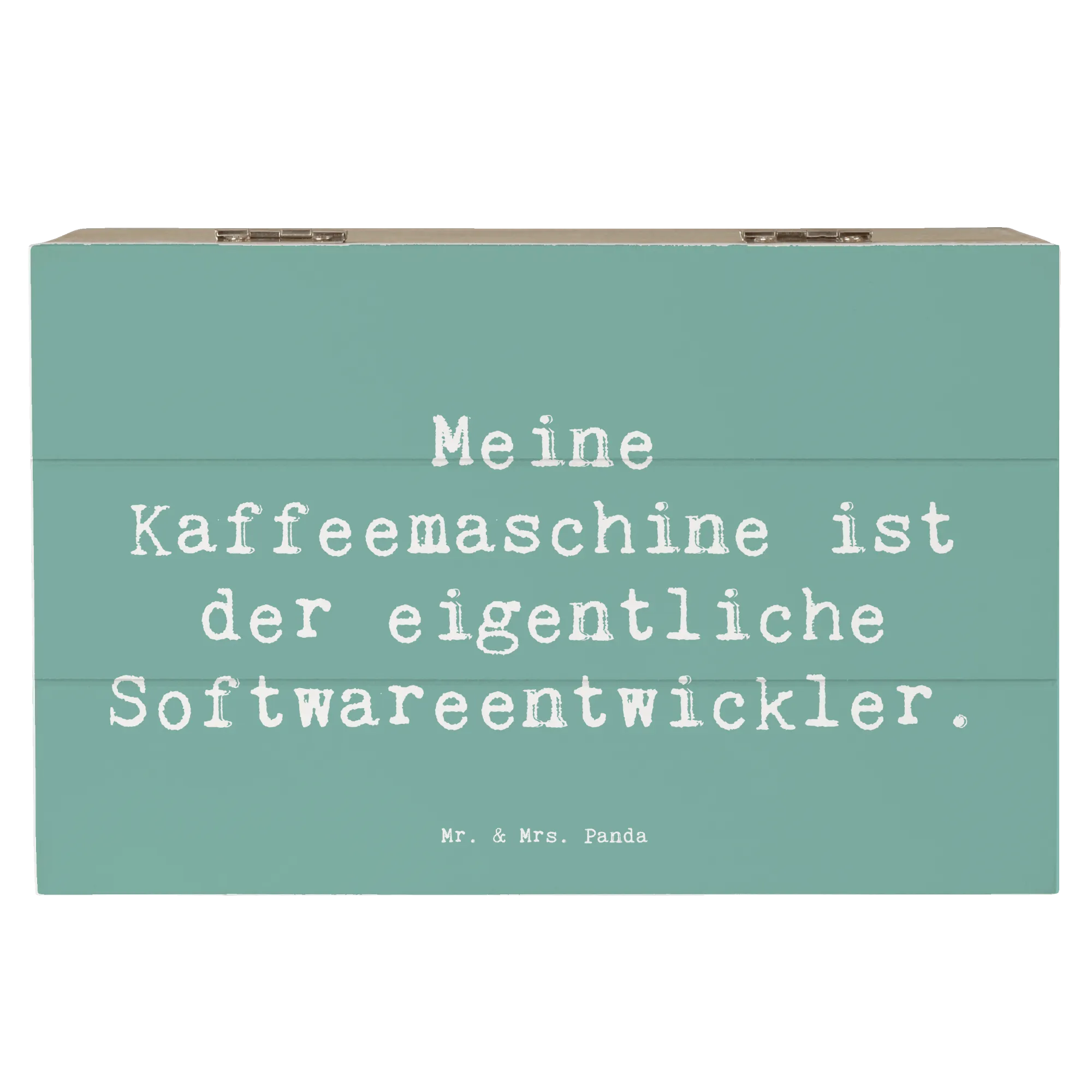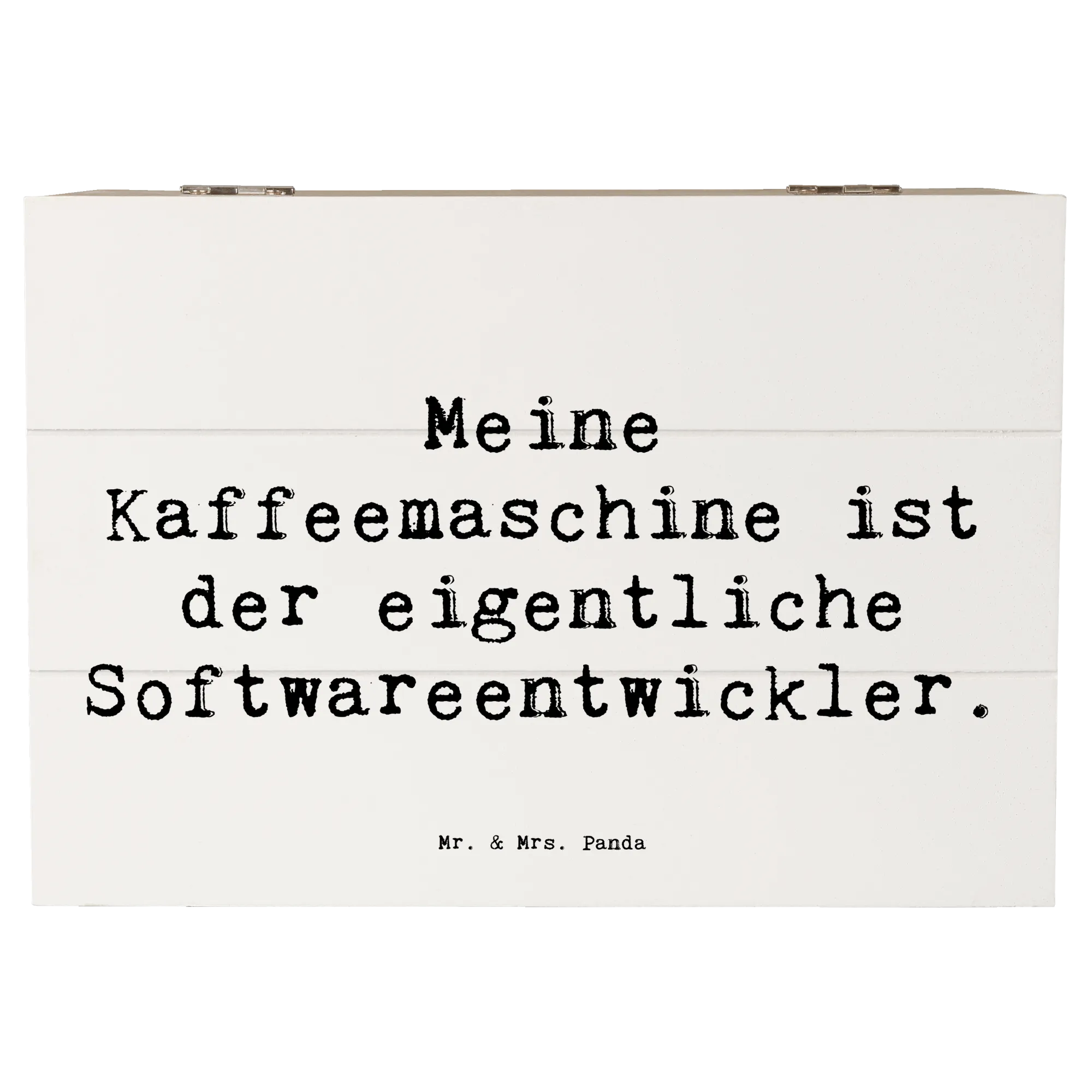 Die wunderschöne Holzkiste von Mr. & Mrs. Panda ist nicht nur ein Blickfang, sondern auch das perfekte Geschenk für alle Softwareentwickler und Technologen. Mit dem liebevollen Motiv "Meine Kaffeemaschine ist der eigentliche Softwareentwickler." ist diese Kiste ein humorvolles und zugleich praktisches Accessoire für jeden Programmierer.