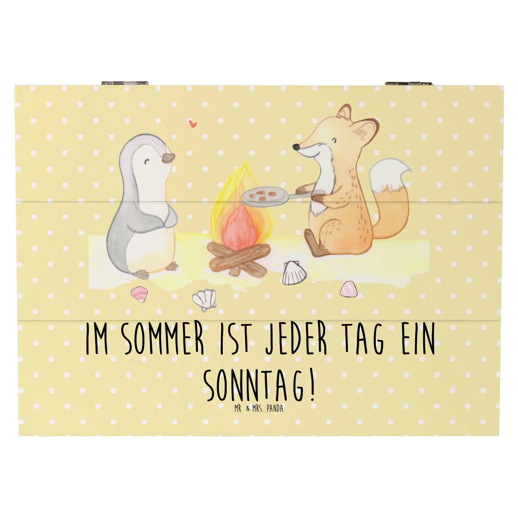 Entdecke die zauberhafte Holzkiste mit dem sommerlichen Motiv von Mr. & Mrs. Panda! Diese wunderschöne Kiste ist nicht nur ein praktischer Aufbewahrungsort für all Deine Schätze, sondern auch eine Erinnerungskiste, die die warmen Sommergefühle einfängt.