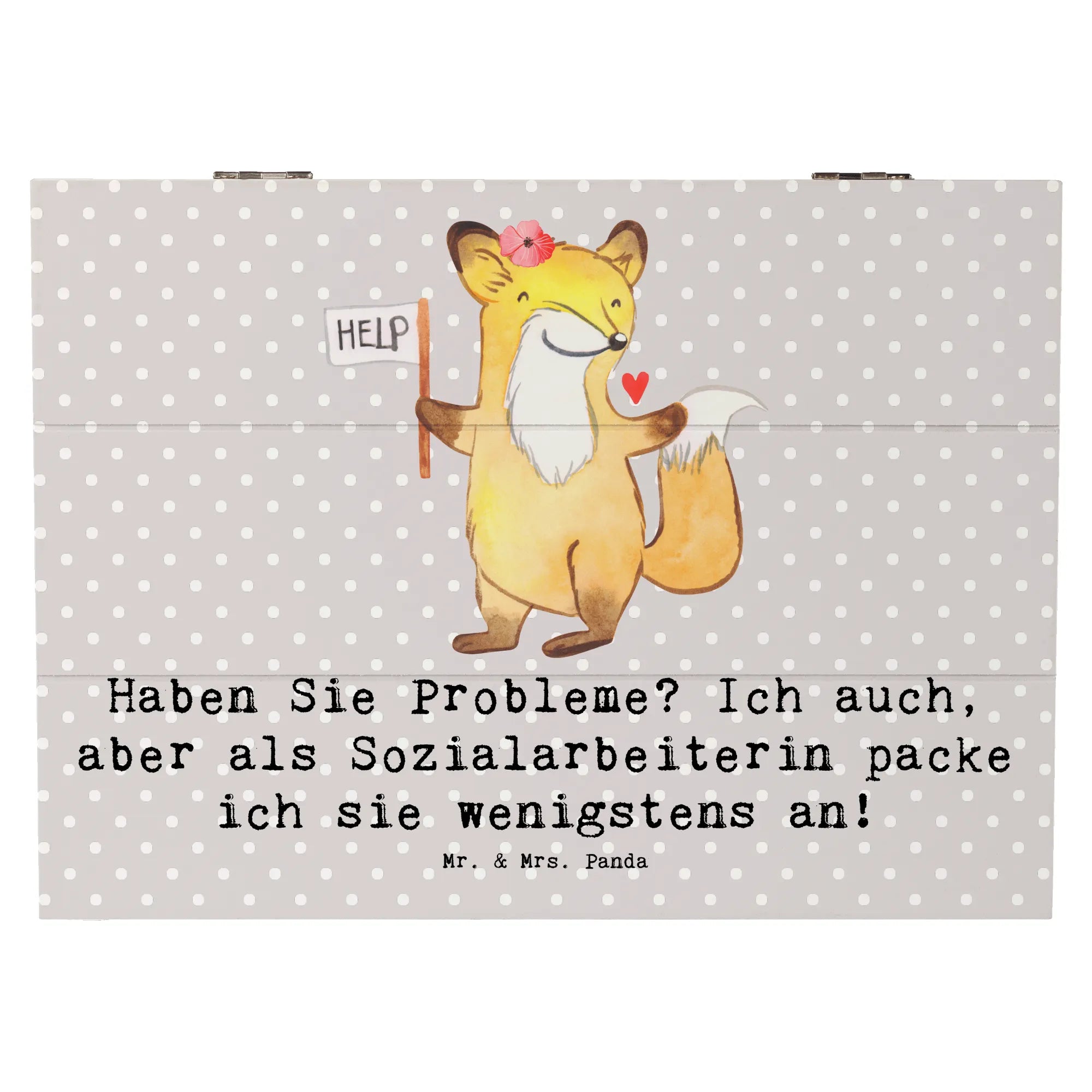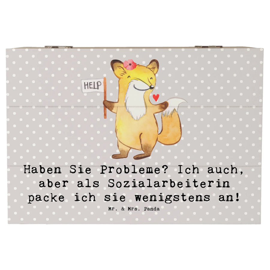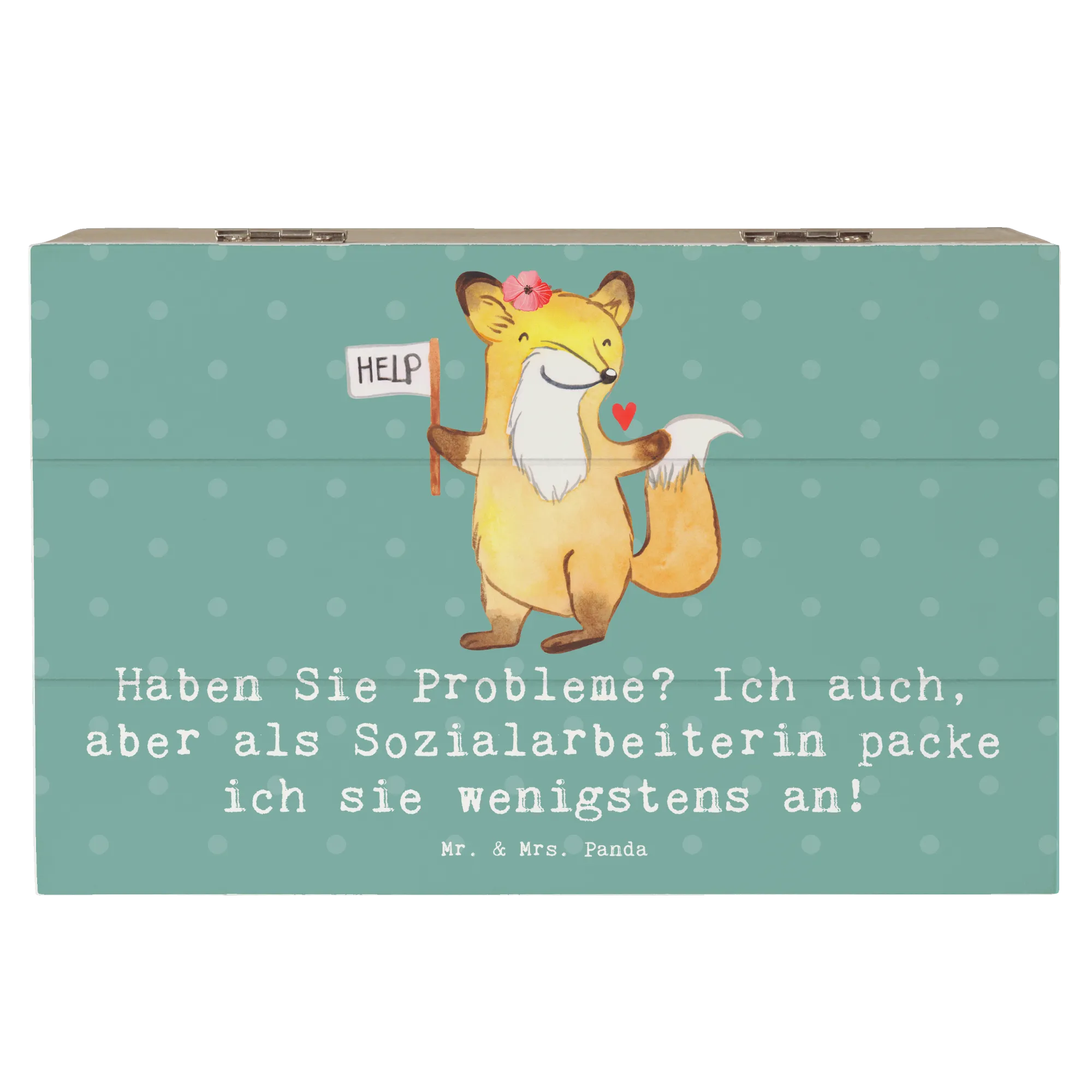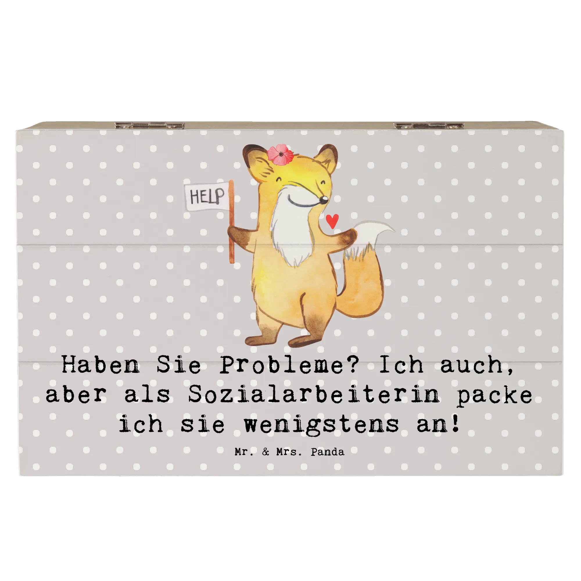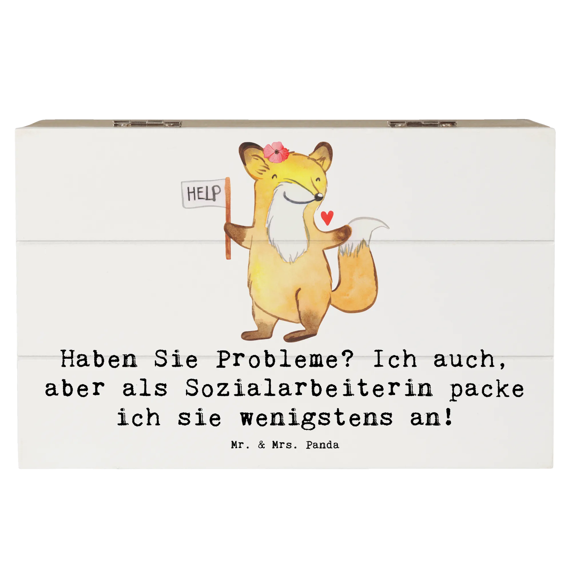 Mit dem liebevollen Text - "Haben Sie Probleme? Ich auch, aber als Sozialarbeiterin packe ich sie wenigstens an!" - ist diese Kiste ein echter Hit und bringt sicherlich ein Lächeln auf die Gesichter von Freunden und Kollegen. Die robuste Holzfaser sorgt dafür, dass deine Kiste sowohl stabil als auch elegant ist und die perfekten Bedingungen für die Aufbewahrung deiner wertvollen Erinnerungen bietet.