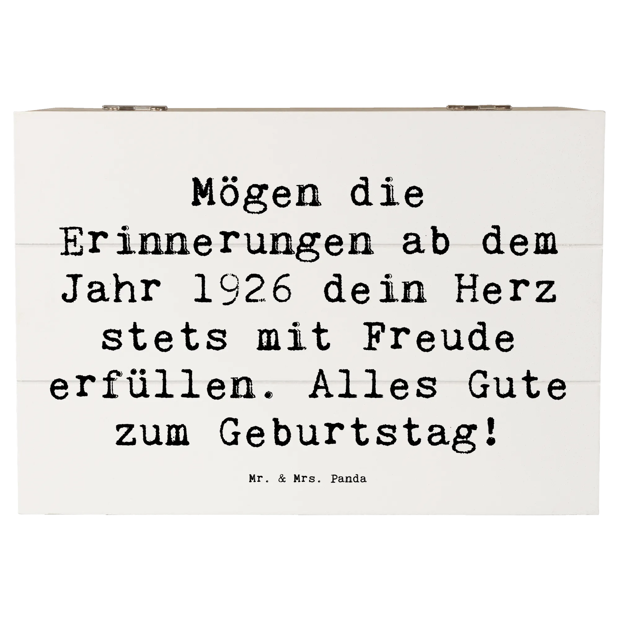 Die wunderschöne Holzkiste von Mr. & Mrs. Panda ist das perfekte Geschenk für jeden, der das Geburtsjahr 1926 feiert. Diese Schatzkiste ist nicht nur ein einfacher Aufbewahrungsort für besondere Erinnerungen, sie erzählt Geschichten, die Herzen berühren.