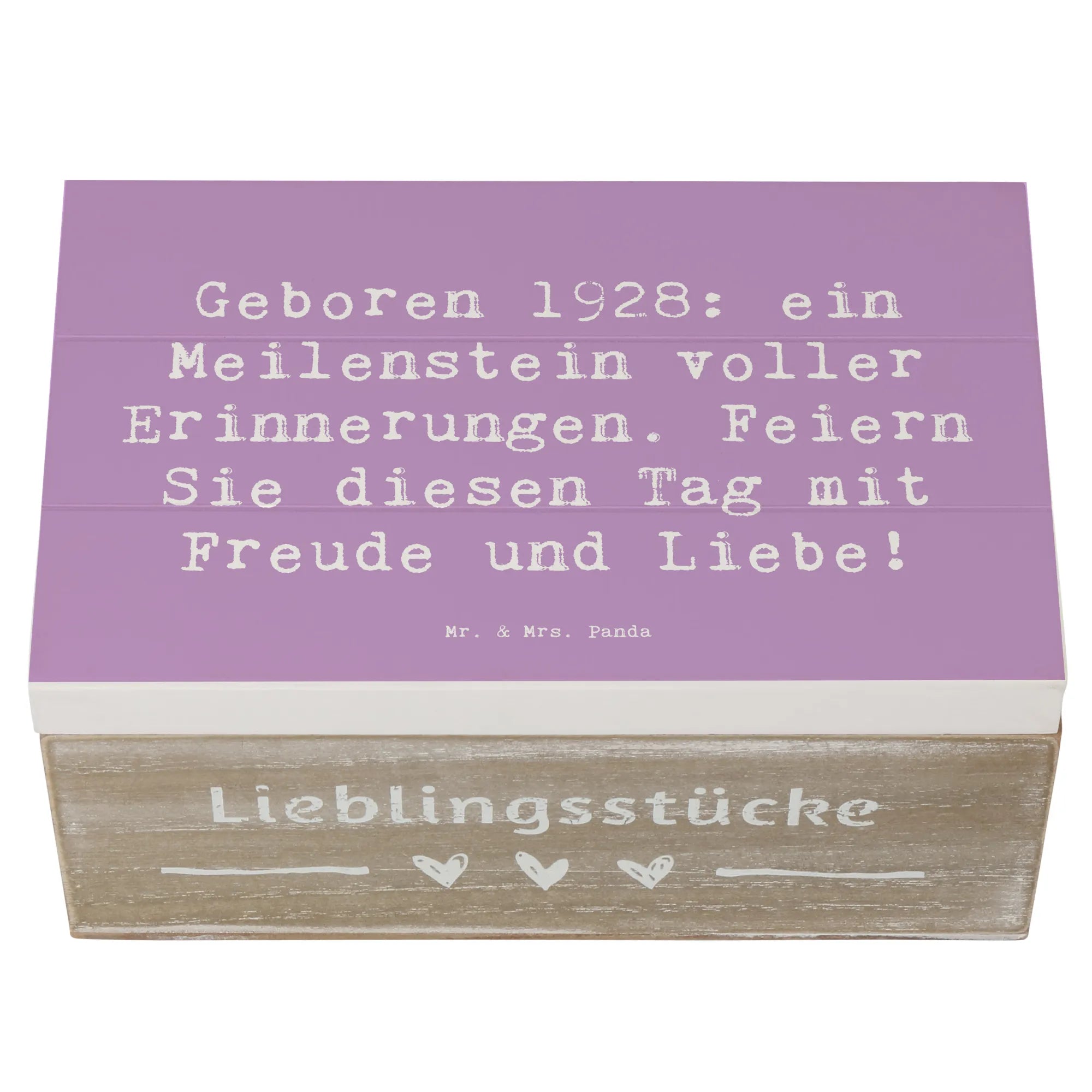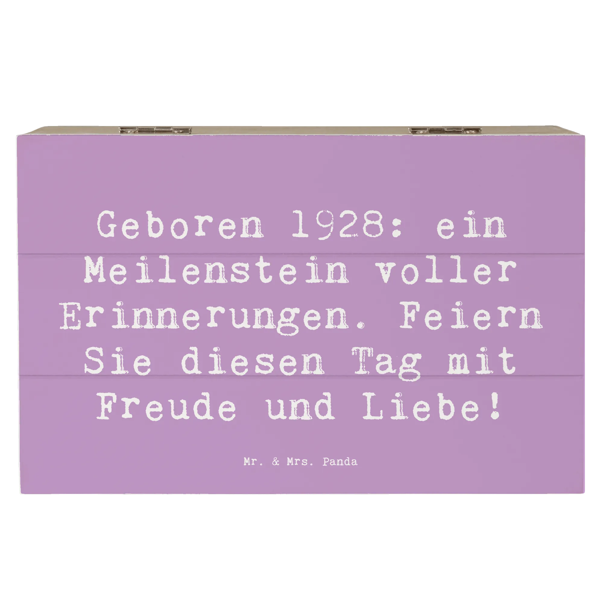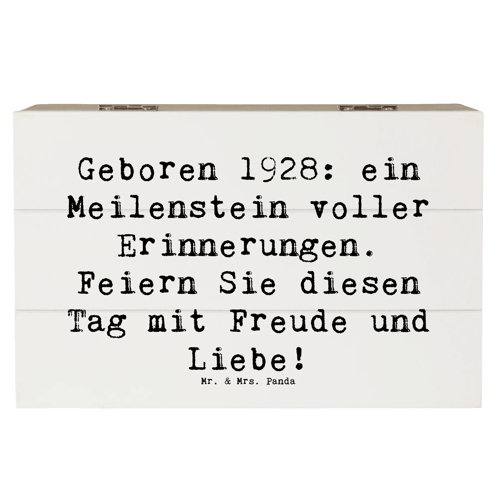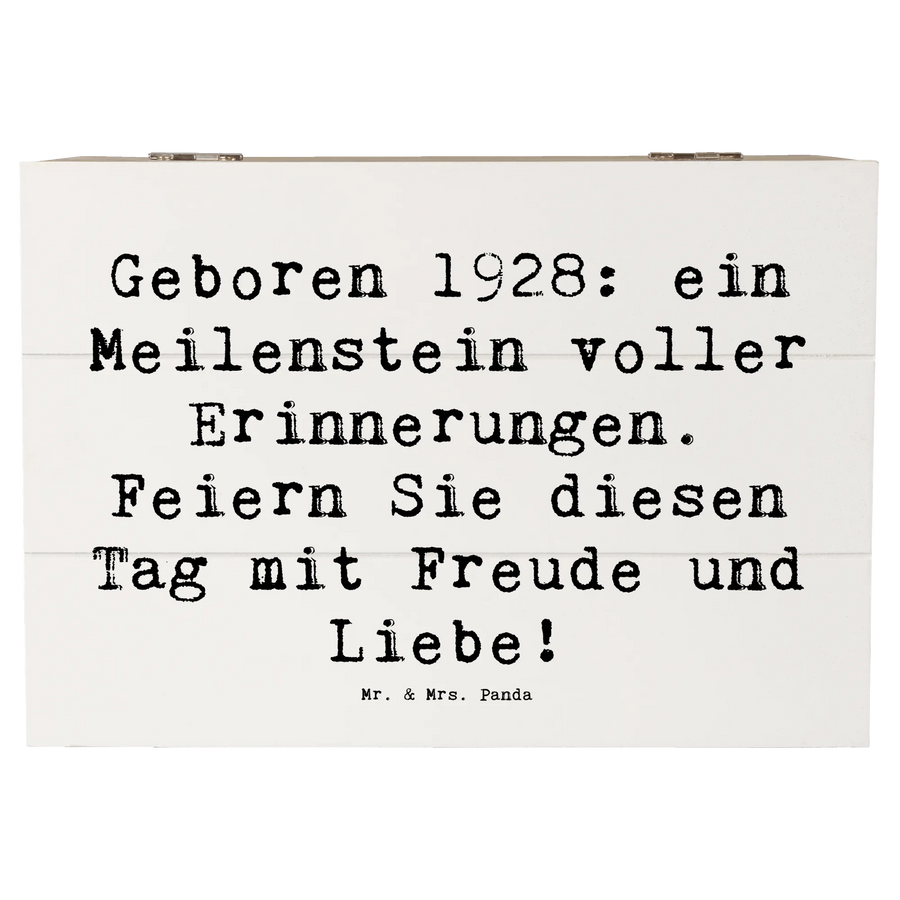 Die wunderschöne Holzkiste von Mr. & Mrs. Panda, bedruckt mit dem charmanten Motiv 'Geboren 1928: ein Meilenstein voller Erinnerungen. Feiern Sie diesen Tag mit Freude und Liebe!', ist das ideale Geschenk für alle, die einen besonderen Geburtstag feiern möchten.