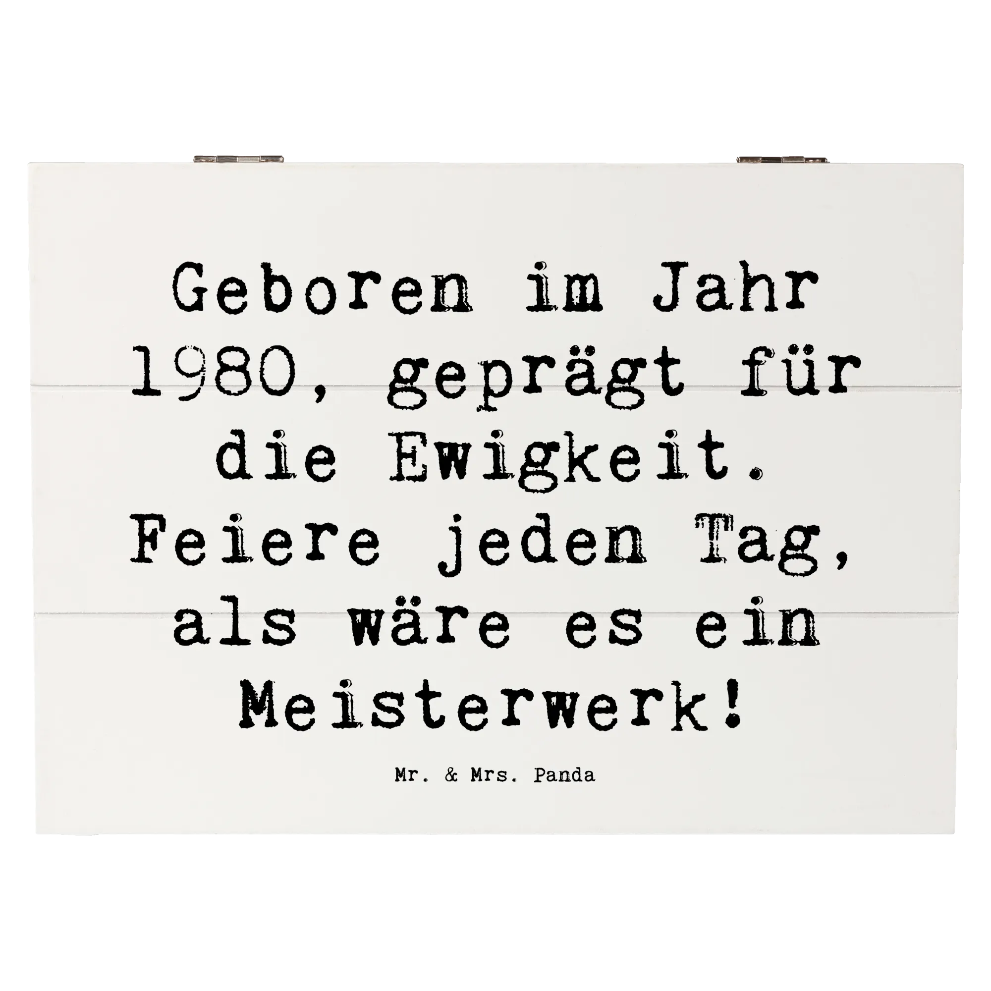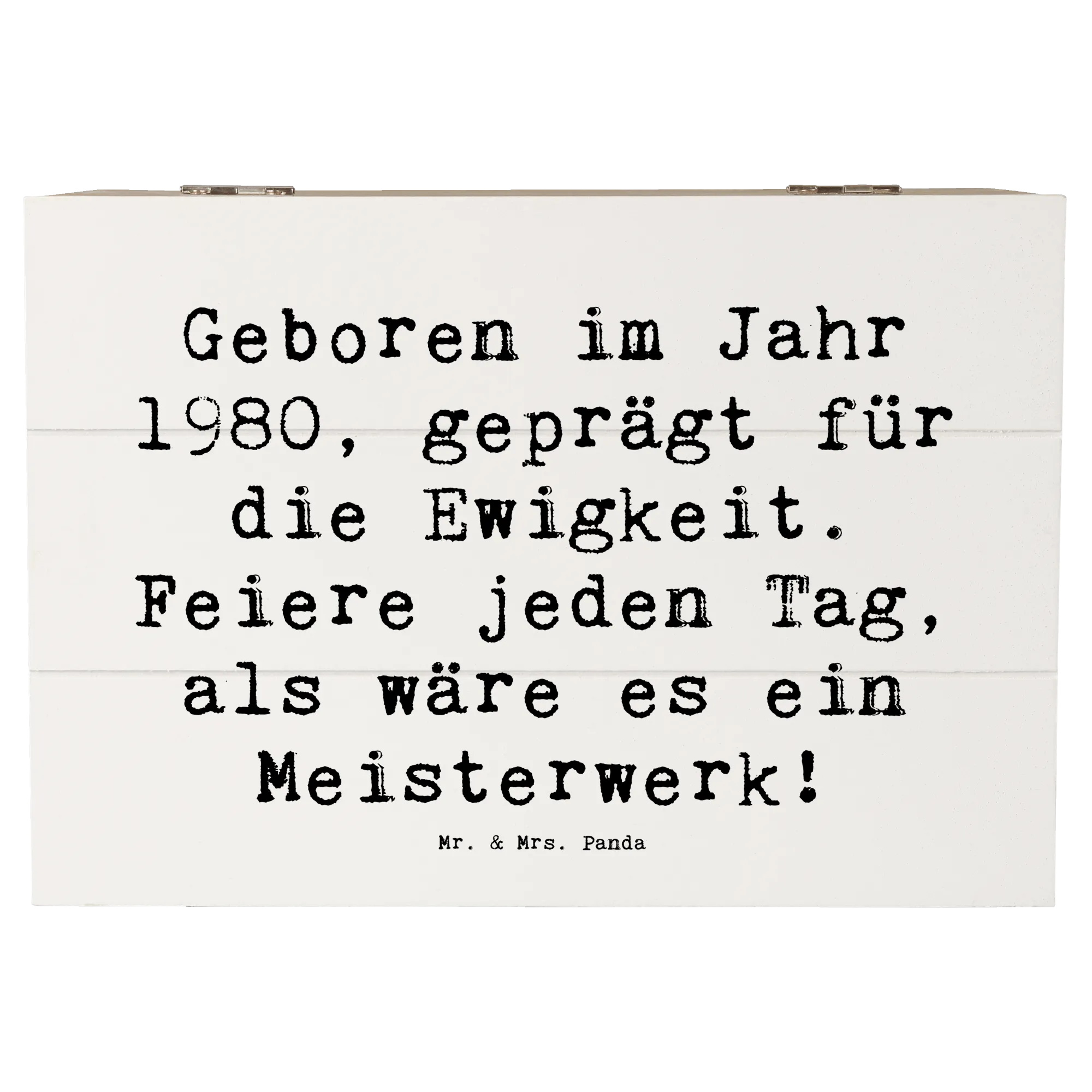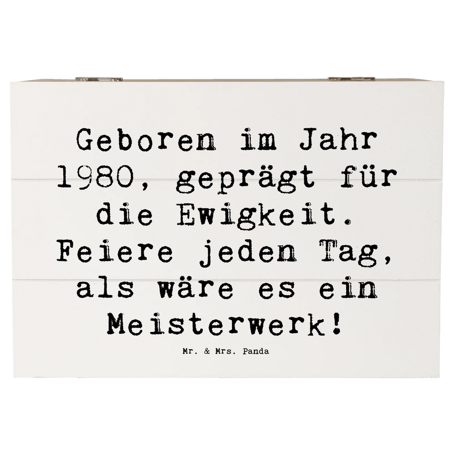 Die Holzkiste von Mr. & Mrs. Panda ist das perfekte Geschenk für jeden, der 1980 geboren wurde! Mit dem liebevoll gestalteten Motiv "Geboren im Jahr 1980, geprägt für die Ewigkeit" und einem ansprechenden Design ist diese Kiste nicht nur ein echter Hingucker, sondern auch eine wunderbare Erinnerung.