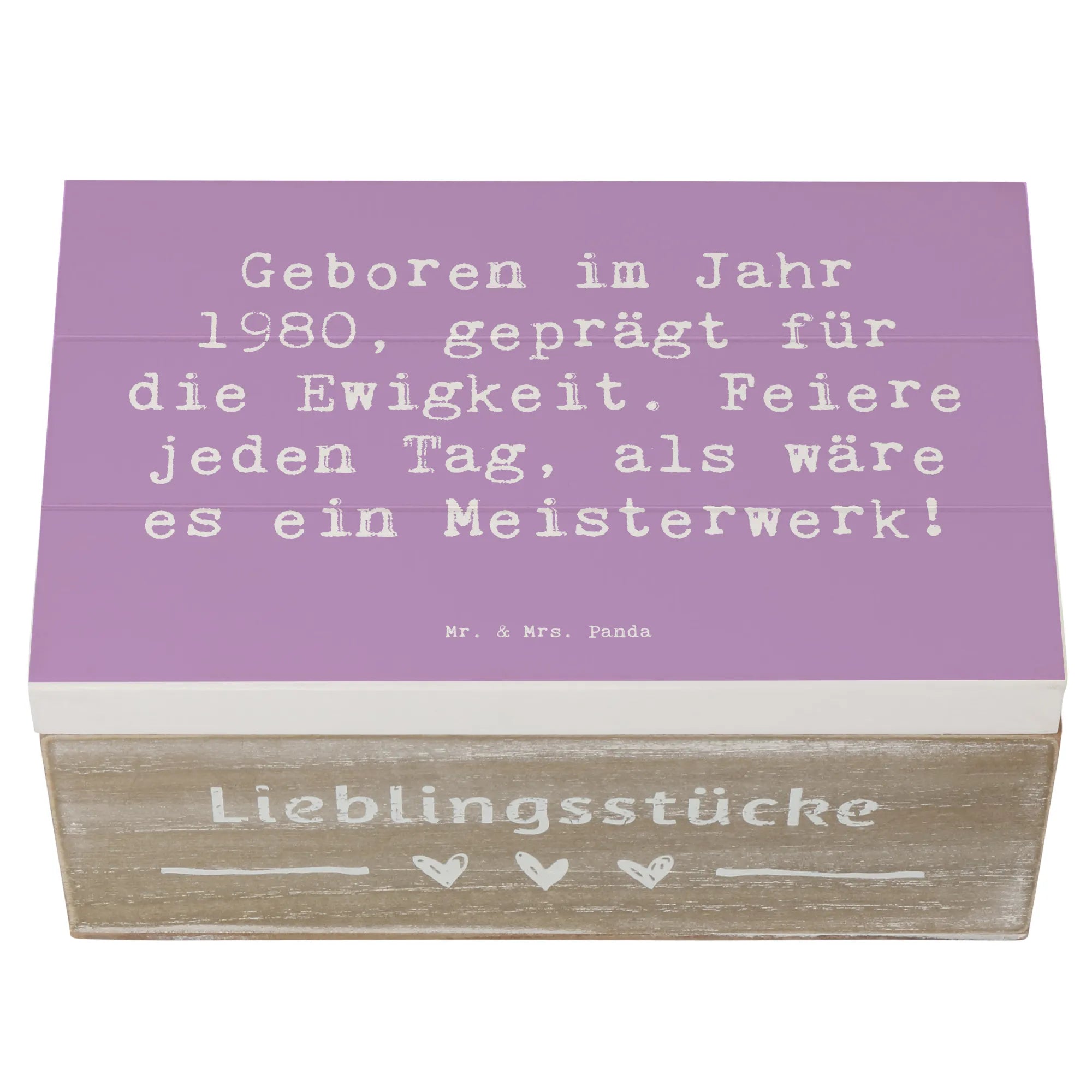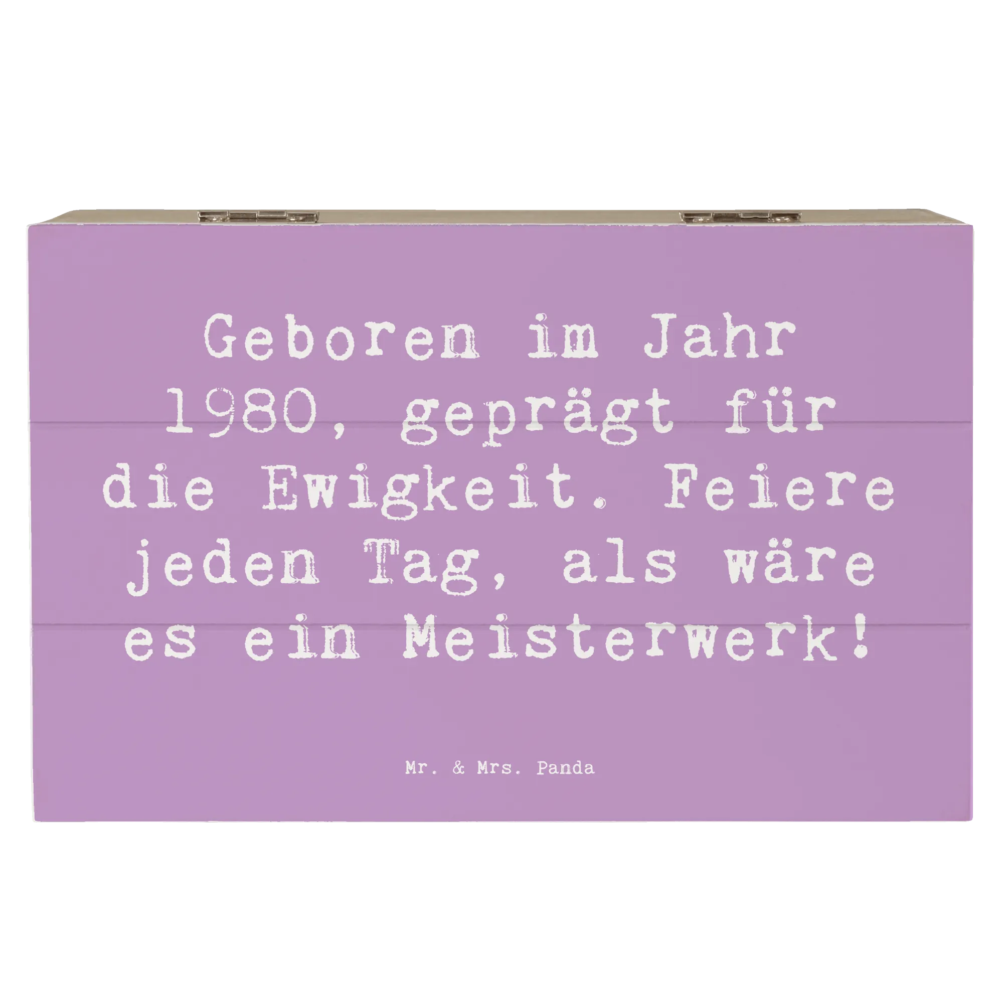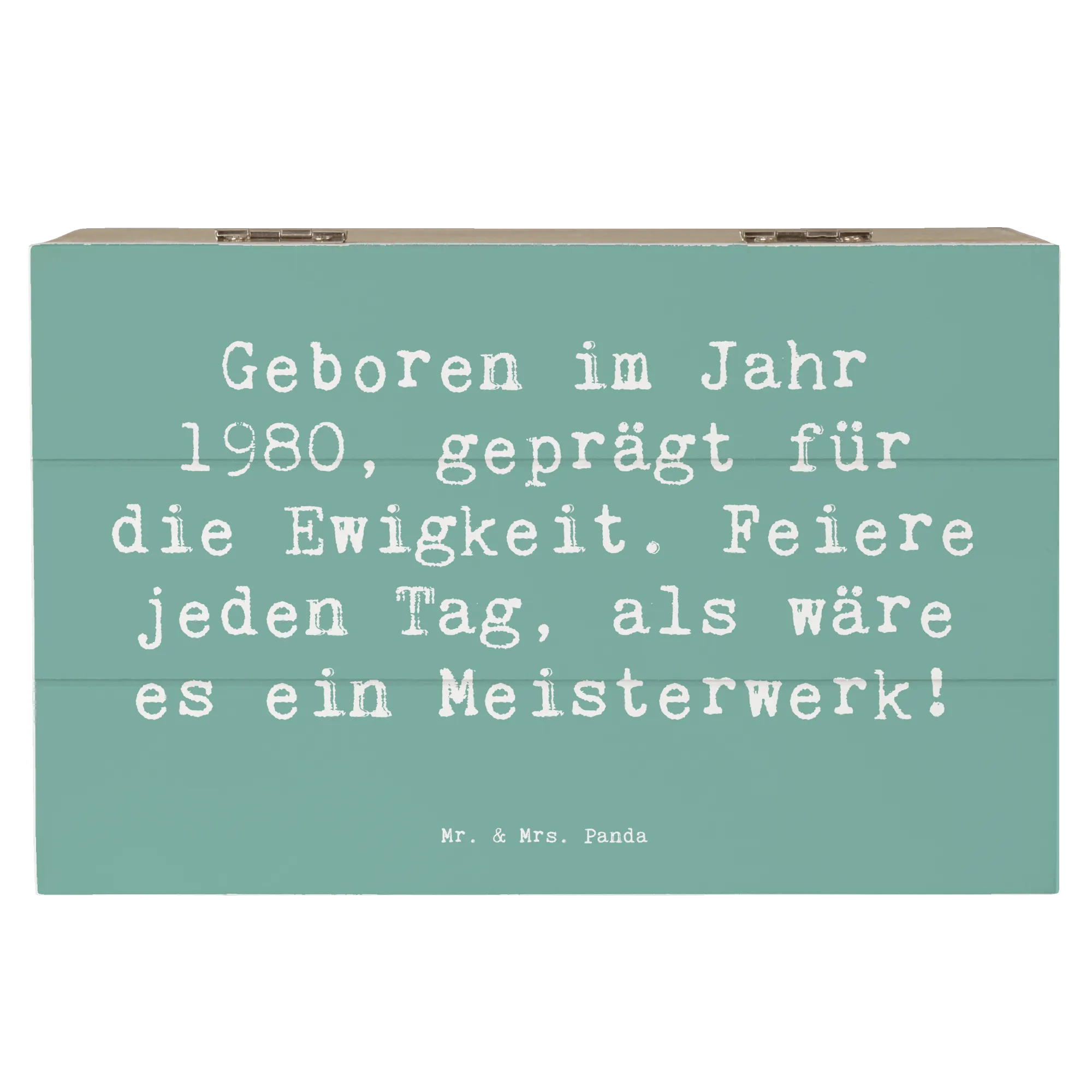 Die Holzkiste von Mr. & Mrs. Panda ist das perfekte Geschenk für jeden, der 1980 geboren wurde! Mit dem liebevoll gestalteten Motiv "Geboren im Jahr 1980, geprägt für die Ewigkeit" und einem ansprechenden Design ist diese Kiste nicht nur ein echter Hingucker, sondern auch eine wunderbare Erinnerung.