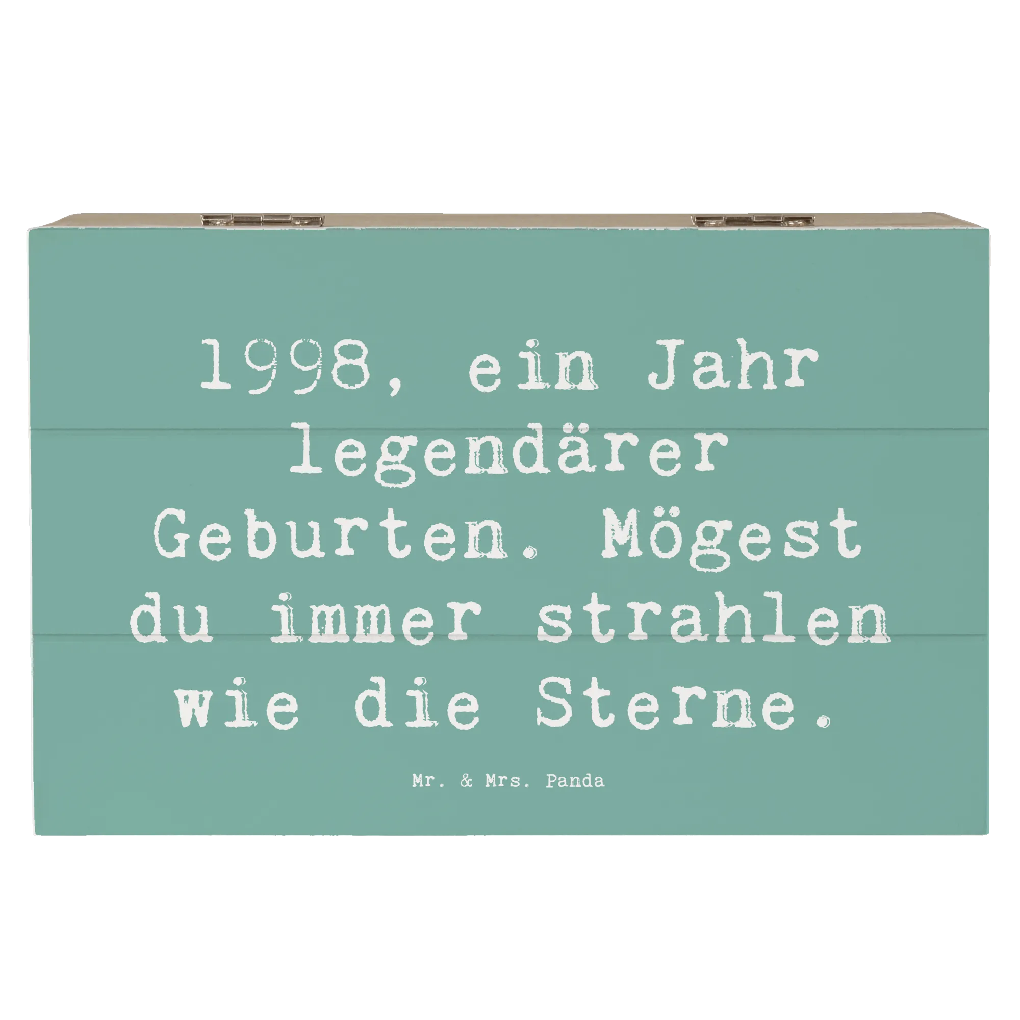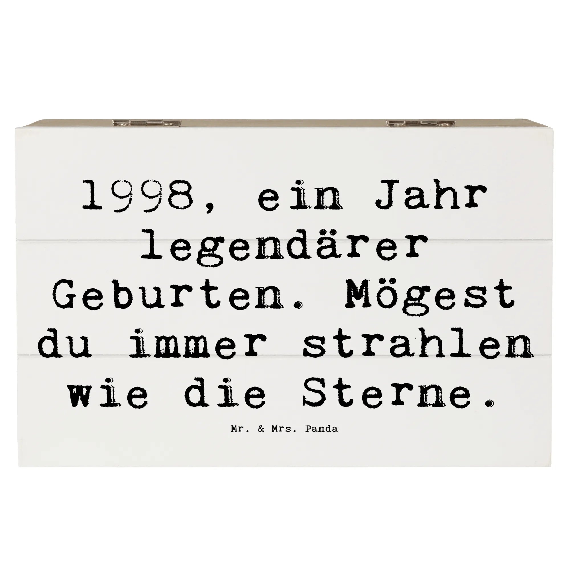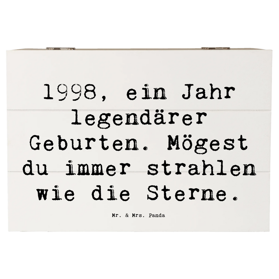 Die wunderschöne Holzkiste von Mr. & Mrs. Panda mit dem Motiv '1998 Geburtstag' ist das perfekte Geschenk für alle, die 1998 das Licht der Welt erblickt haben. Diese einzigartige Erinnerungsbox ist nicht nur ein toller Aufbewahrungsort für wundervolle Schätze, sondern auch ein liebevolles Andenken an besondere Momente.