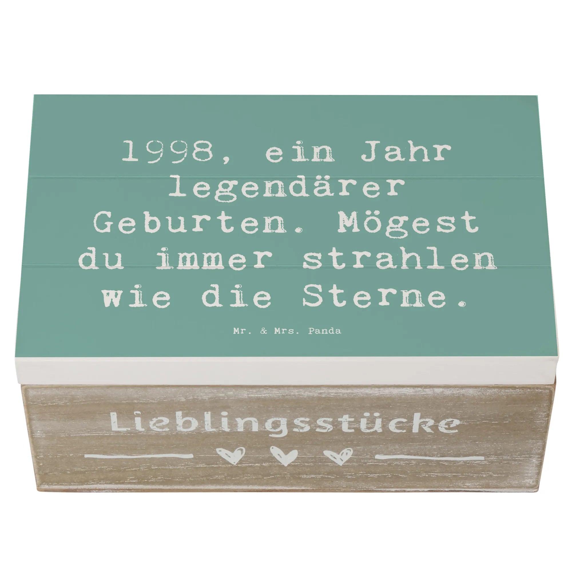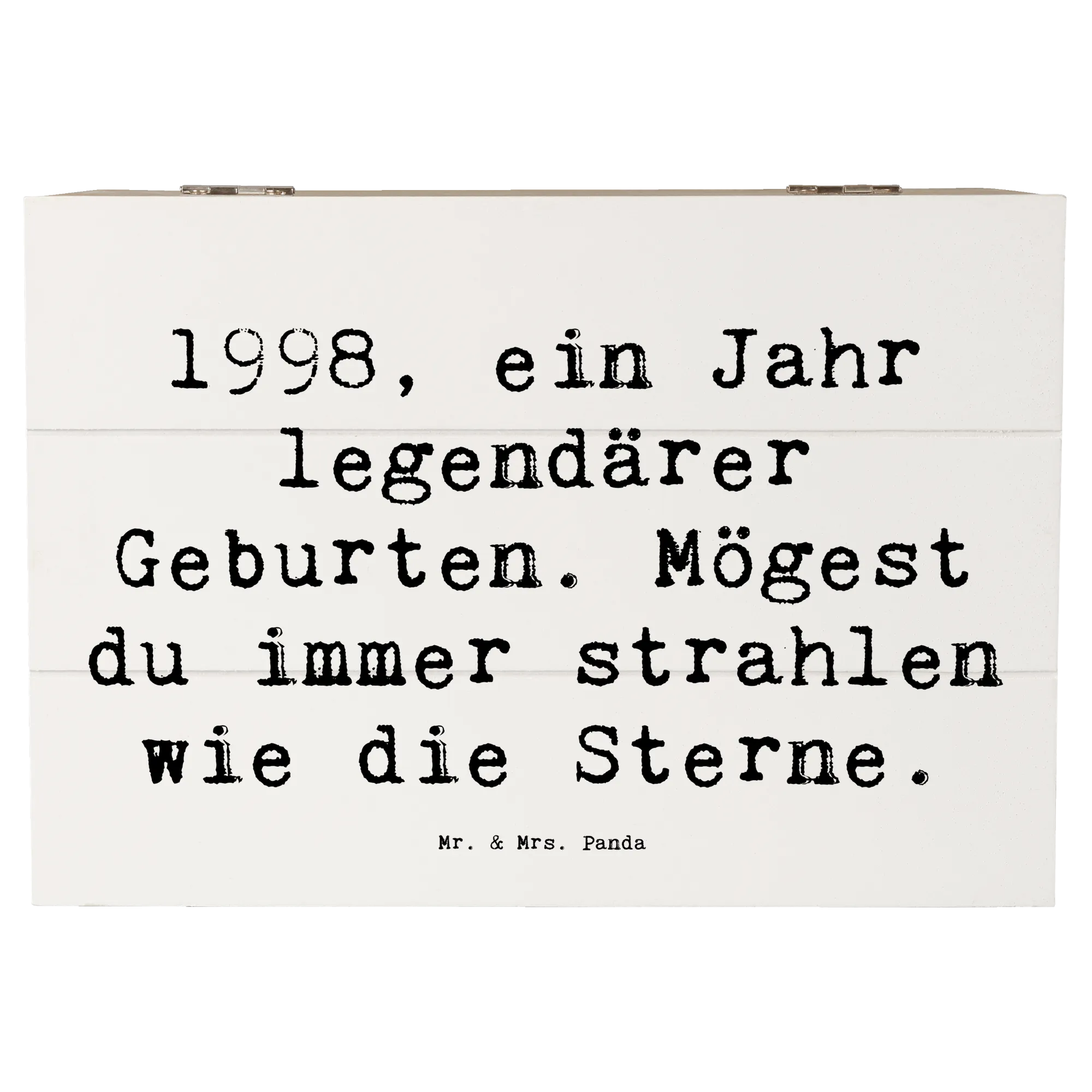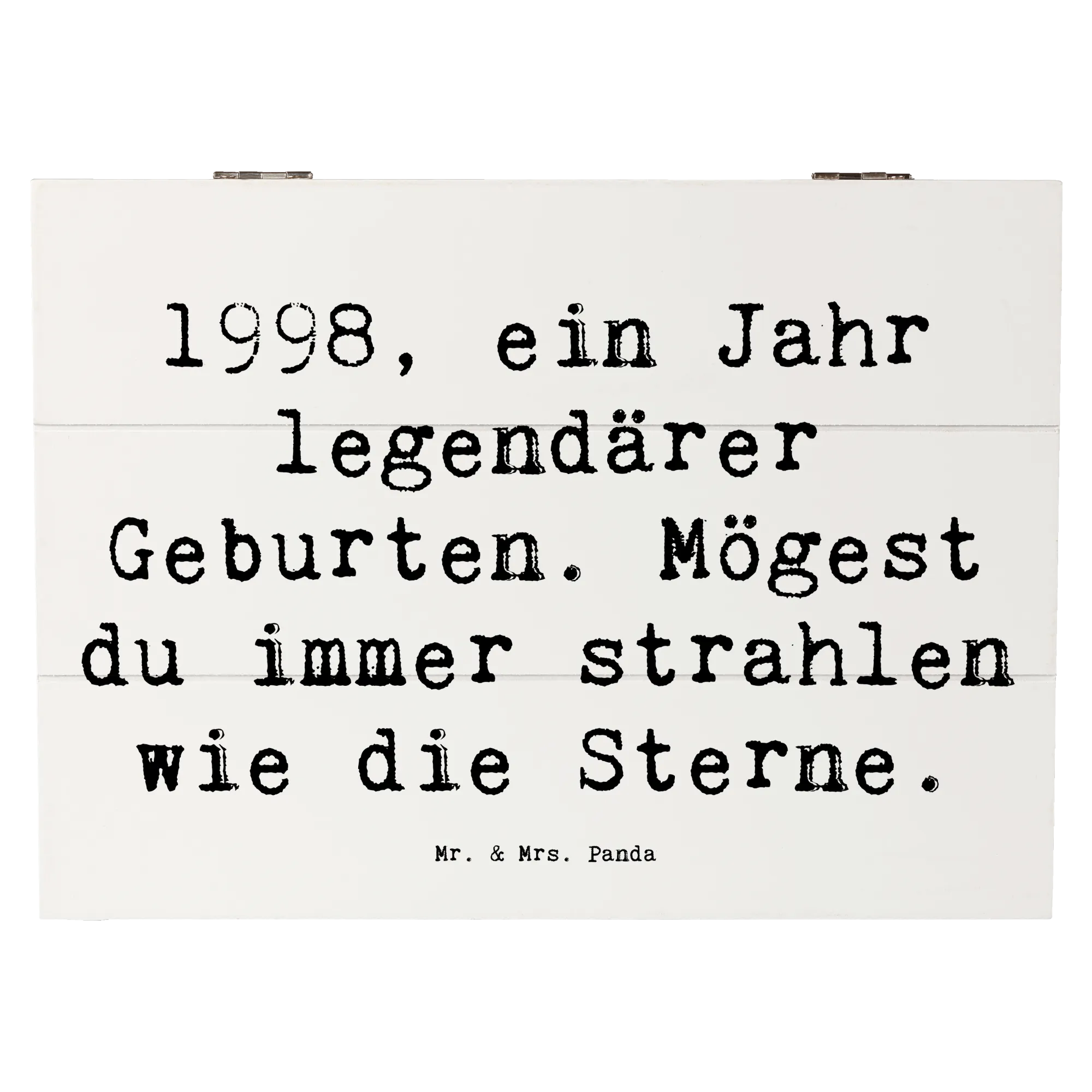 Die wunderschöne Holzkiste von Mr. & Mrs. Panda mit dem Motiv '1998 Geburtstag' ist das perfekte Geschenk für alle, die 1998 das Licht der Welt erblickt haben. Diese einzigartige Erinnerungsbox ist nicht nur ein toller Aufbewahrungsort für wundervolle Schätze, sondern auch ein liebevolles Andenken an besondere Momente.