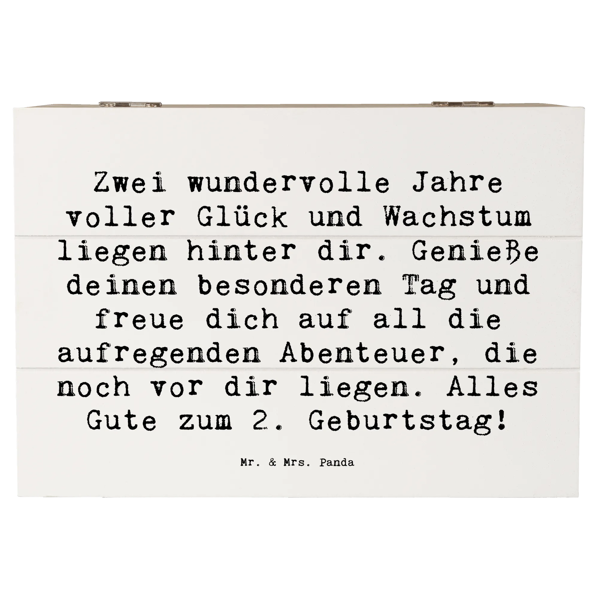 Wenn du auf der Suche nach einem einzigartigen und bedeutungsvollen Geschenk bist, das Freude bringt und gleichzeitig Erinnerungsstücke schützt, dann ist diese Holzkiste von Mr. & Mrs. Panda die perfekte Wahl. Mit ihrem charmanten Motiv und inspirierenden Spruch hinterlässt sie einen bleibenden Eindruck und sorgt dafür, dass der besondere Tag noch lange in Erinnerung bleibt. Mach den 2. Geburtstag zu einem unvergesslichen Ereignis mit dieser zauberhaften Aufbewahrungsbox, die die Freude des Lebens widerspiegelt.