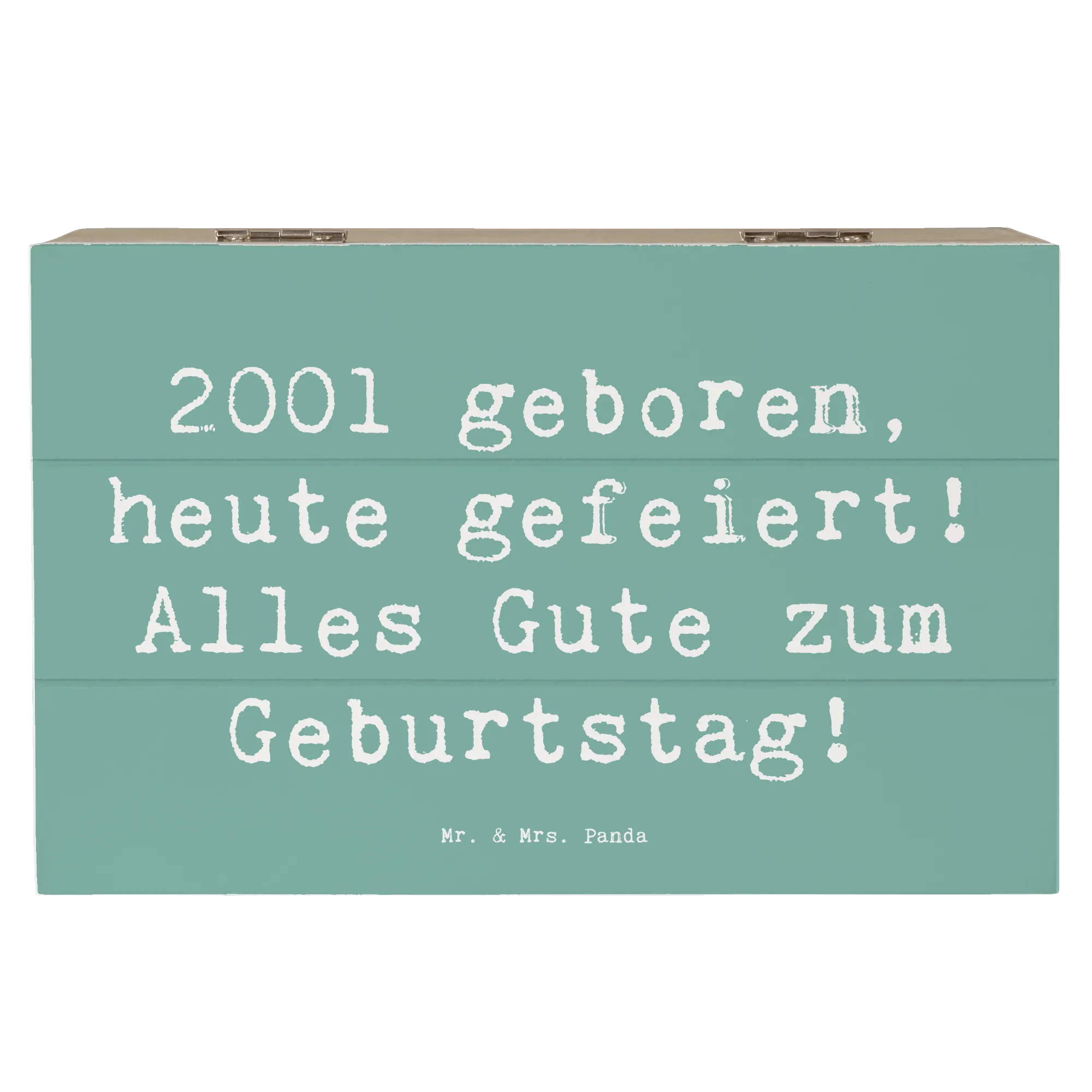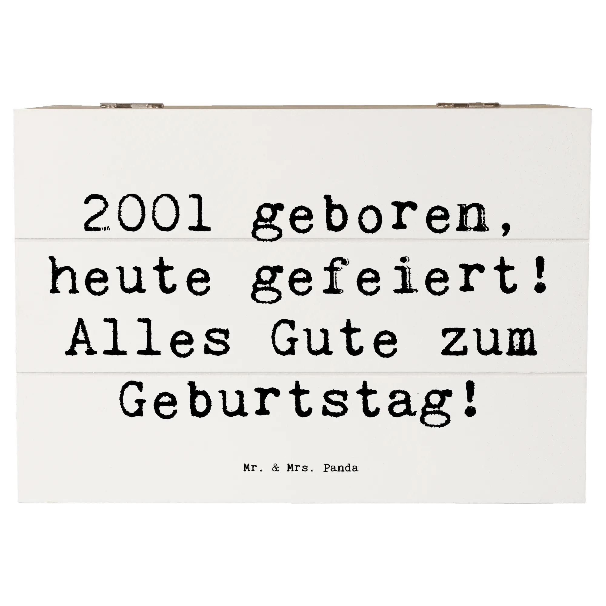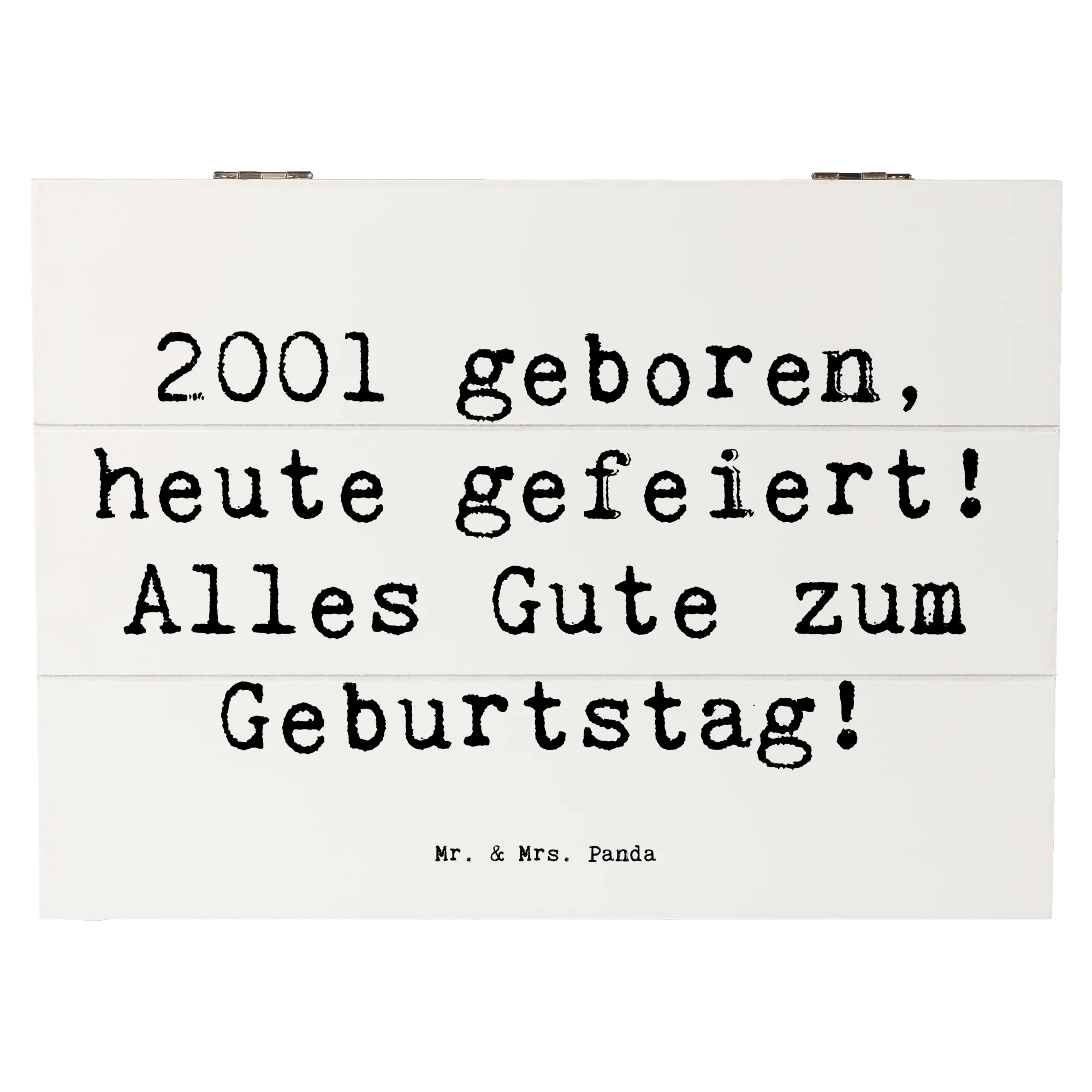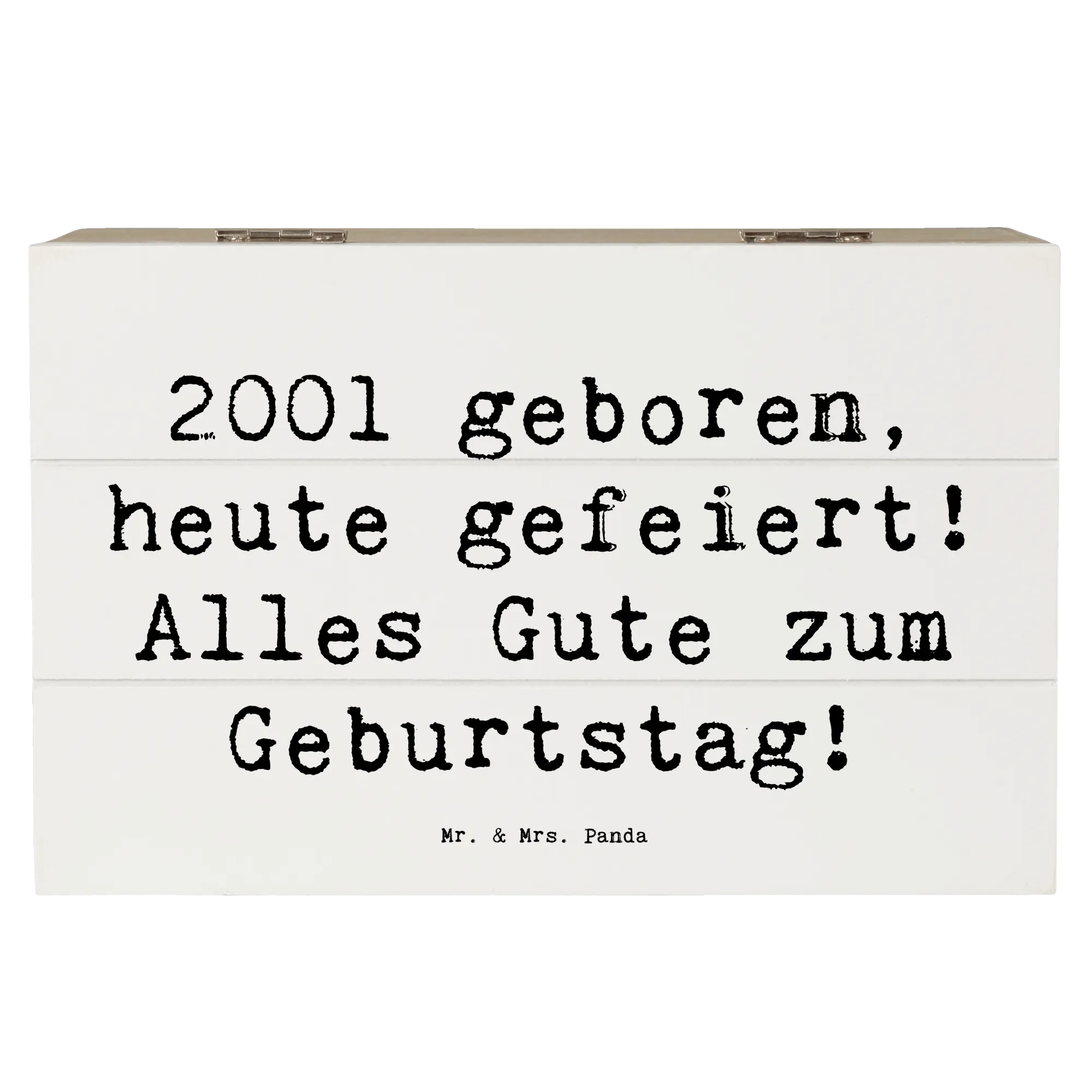 Die wunderschöne Holzkiste von Mr. & Mrs. Panda ist das perfekte Geschenk für alle, die 2001 geboren wurden! Mit dem liebevollen Spruch '2001 geboren, heute gefeiert! Alles Gute zum Geburtstag!' wird dieser besondere Tag unvergesslich.