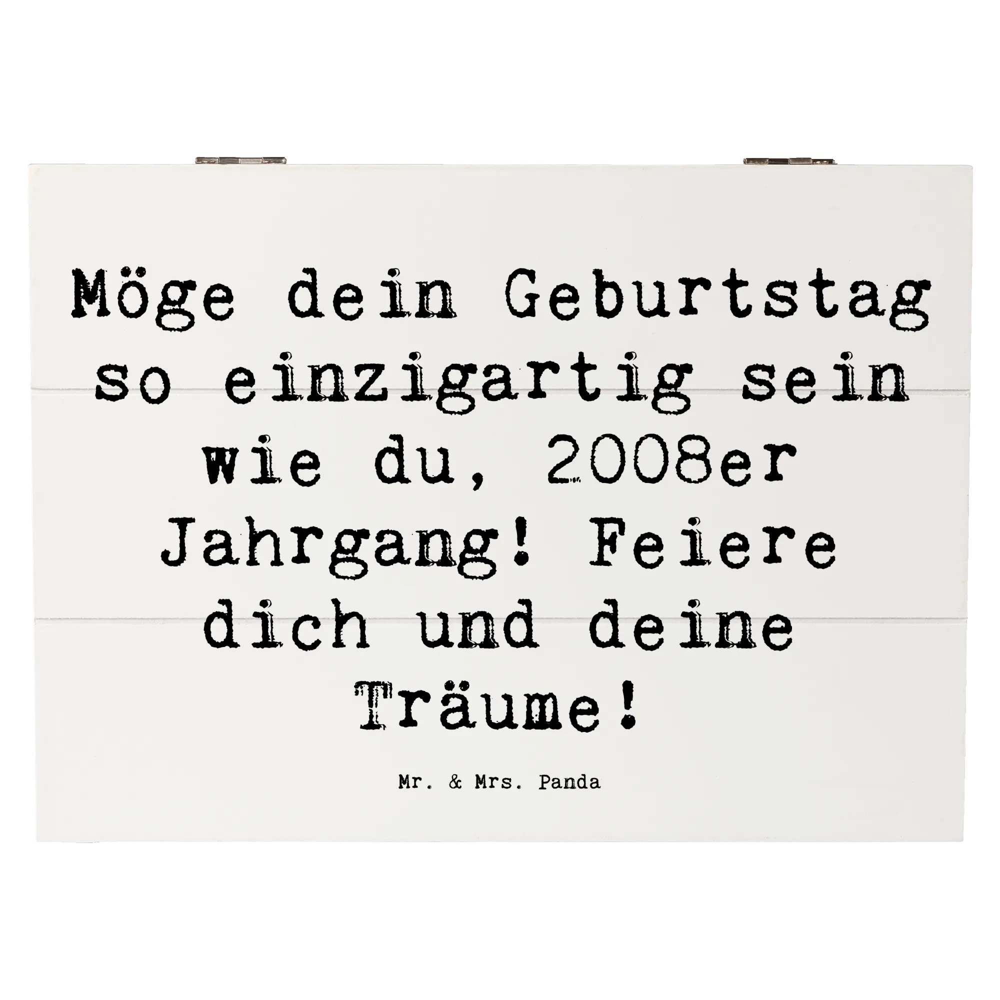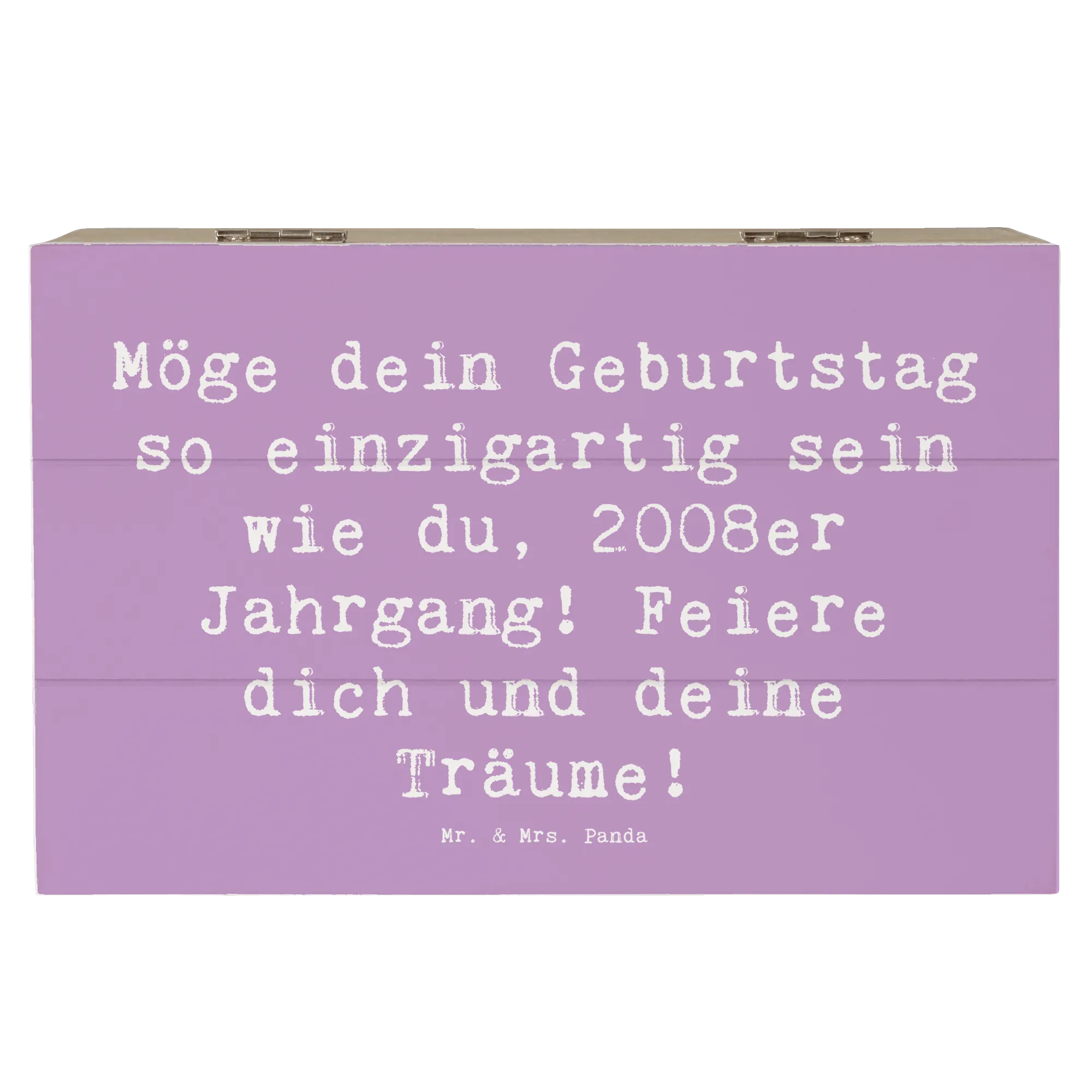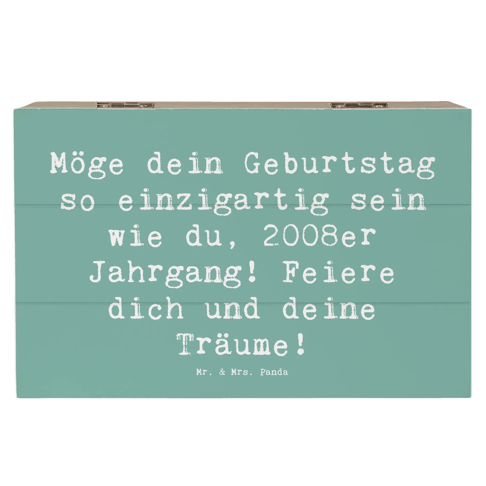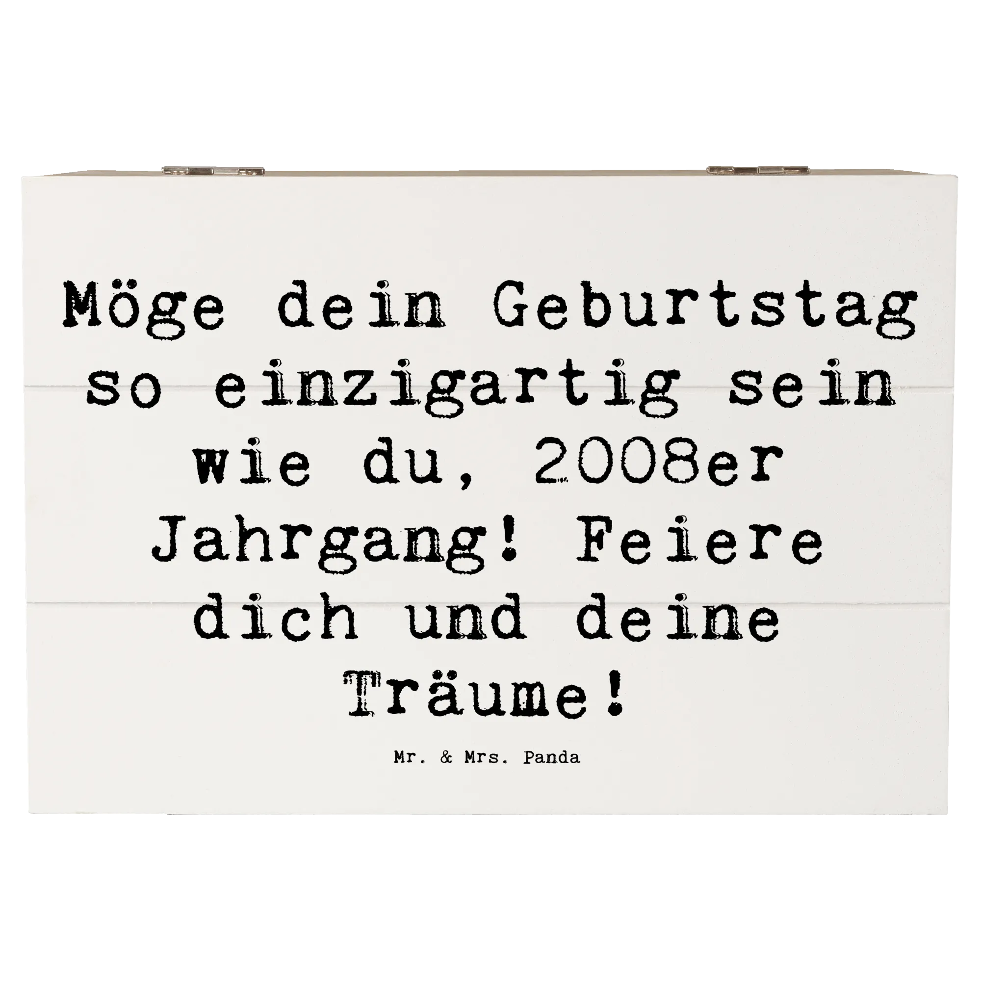 Die wunderschöne Holzkiste von Mr. & Mrs. Panda ist das perfekte Geschenk für jeden, der 2008 geboren wurde! Mit dem liebevollen Spruch "Möge dein Geburtstag so einzigartig sein wie du, 2008er Jahrgang! Feiere dich und deine Träume!" bietet diese Kiste nicht nur Platz für wundervolle Schätze, sondern auch eine liebevolle Botschaft, die an jedem Geburtstag Freude bereitet.