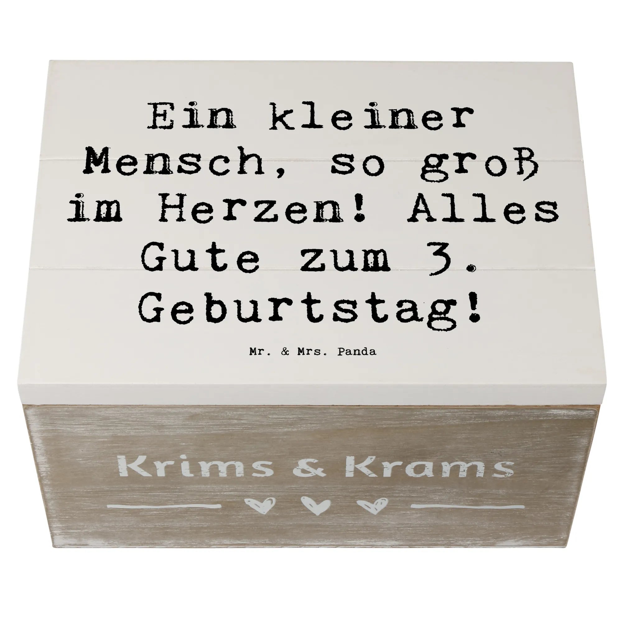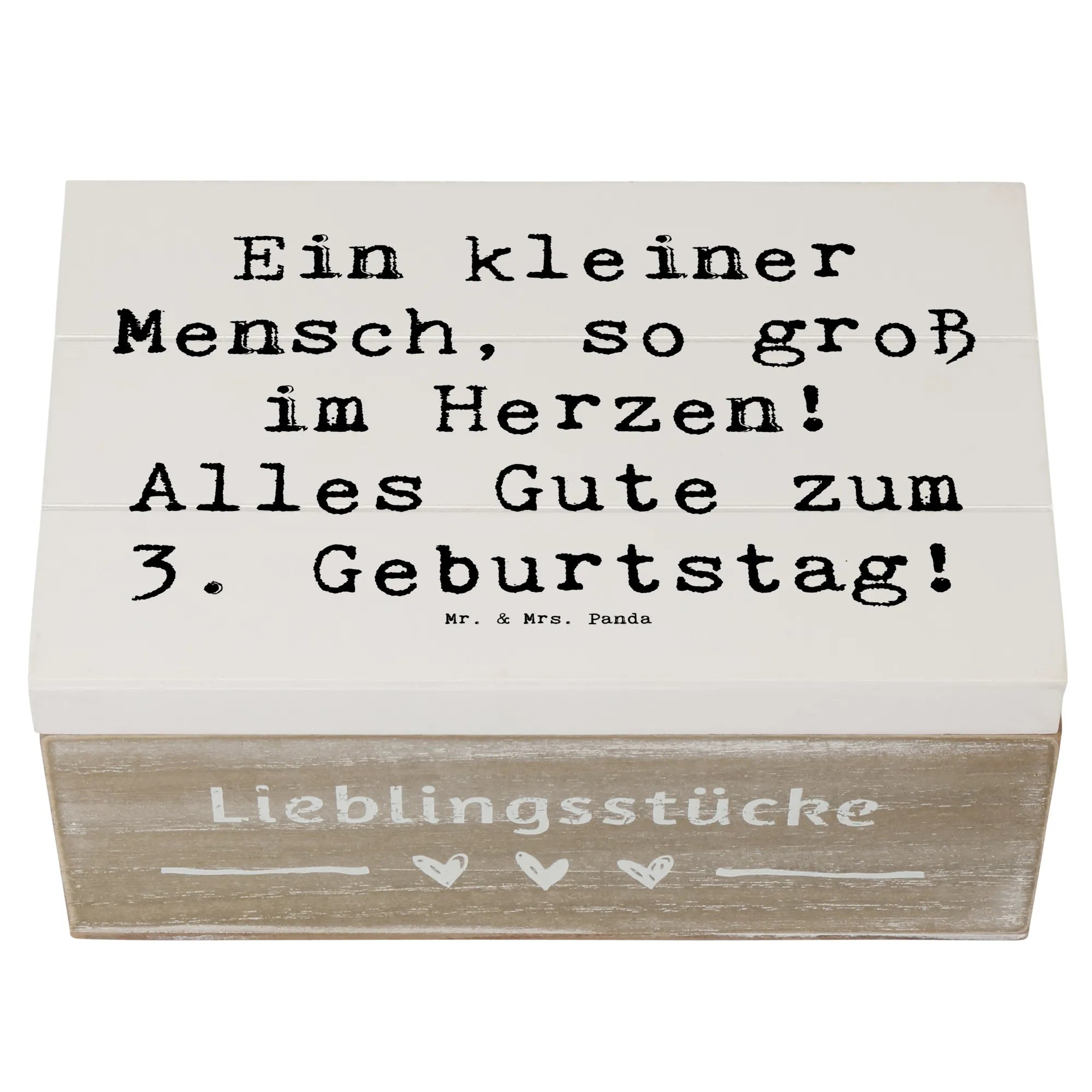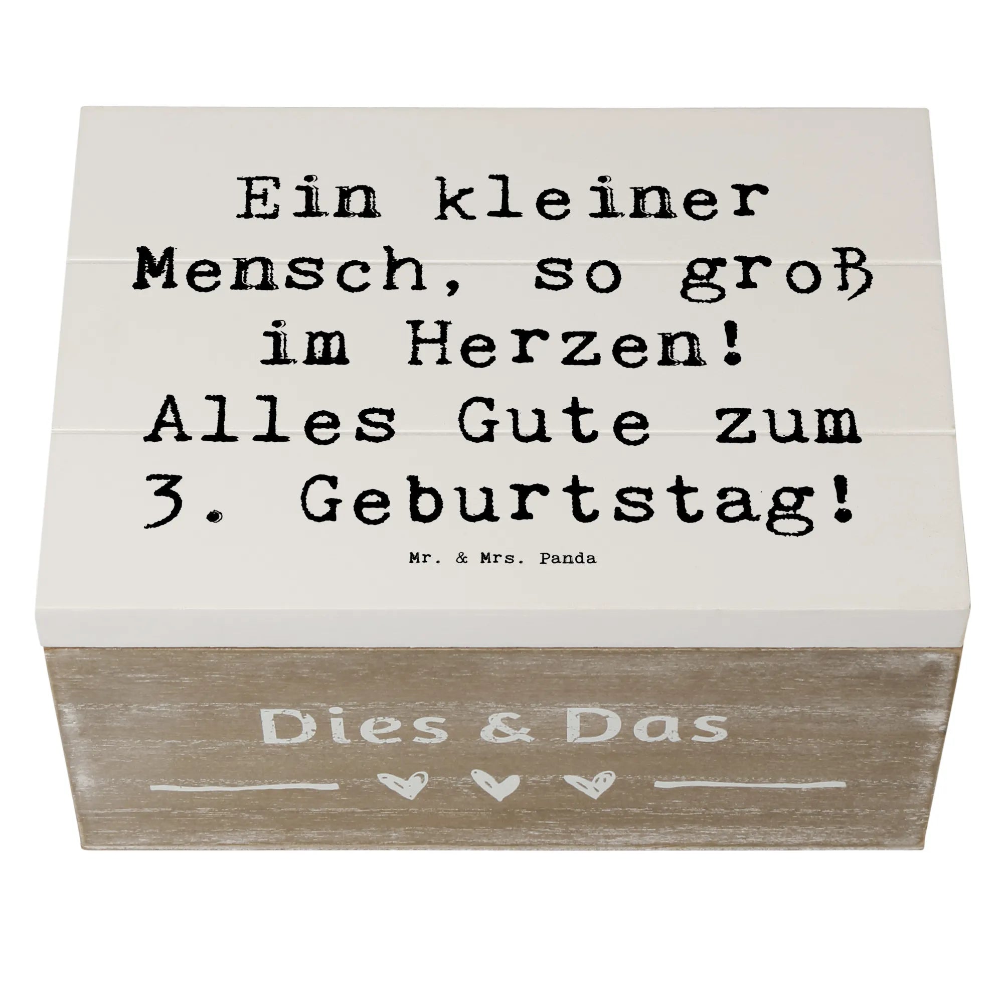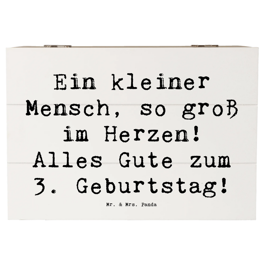Die wunderschöne Holzkiste von Mr. & Mrs. Panda ist das perfekte Geschenk zum 3. Geburtstag! Diese Erinnerungskiste, liebevoll gestaltet mit dem Spruch "Ein kleiner Mensch, so groß im Herzen! Alles Gute zum 3. Geburtstag!", ist ideal, um die wertvollsten Schätze und Erinnerungen deines kleinen Lieblings zu bewahren.