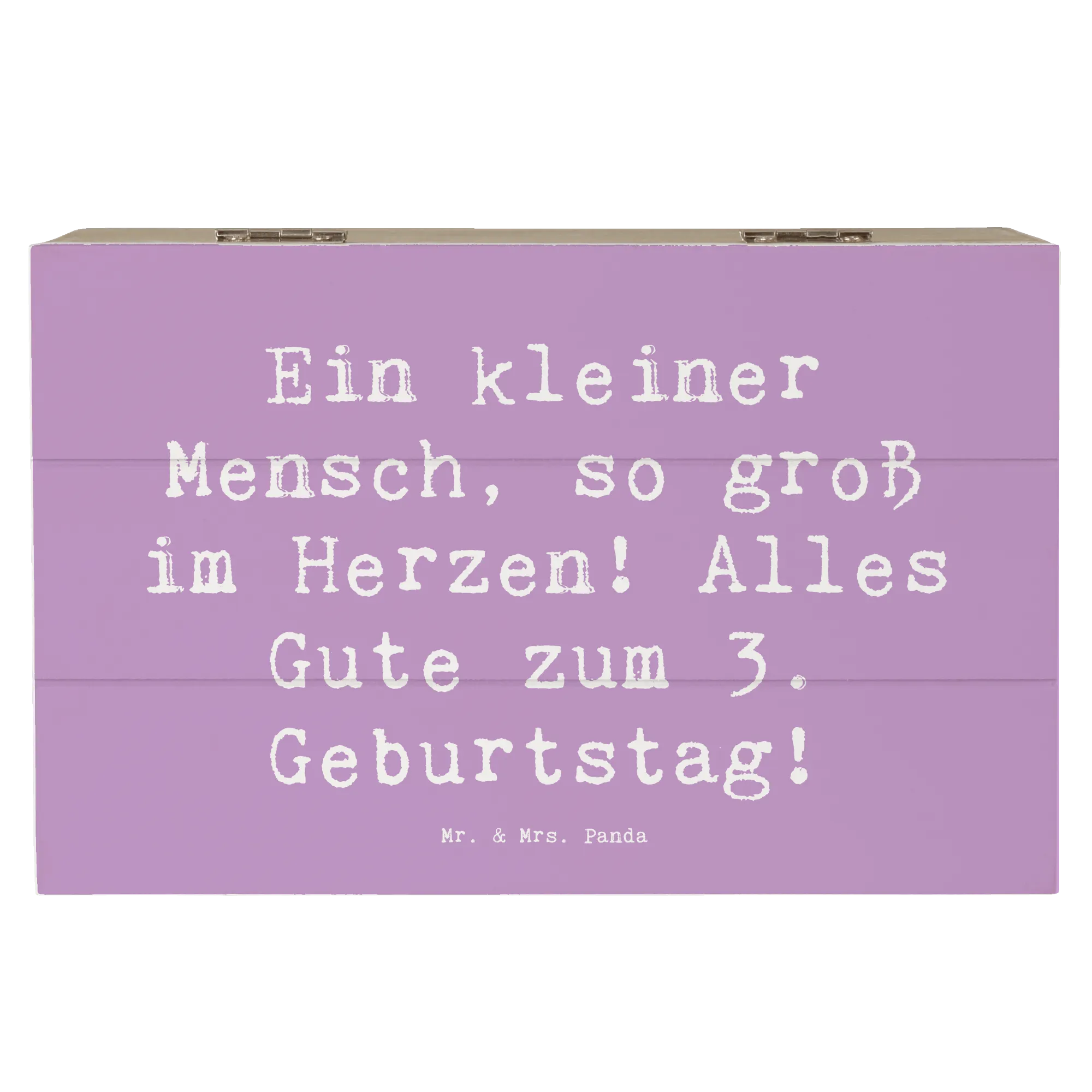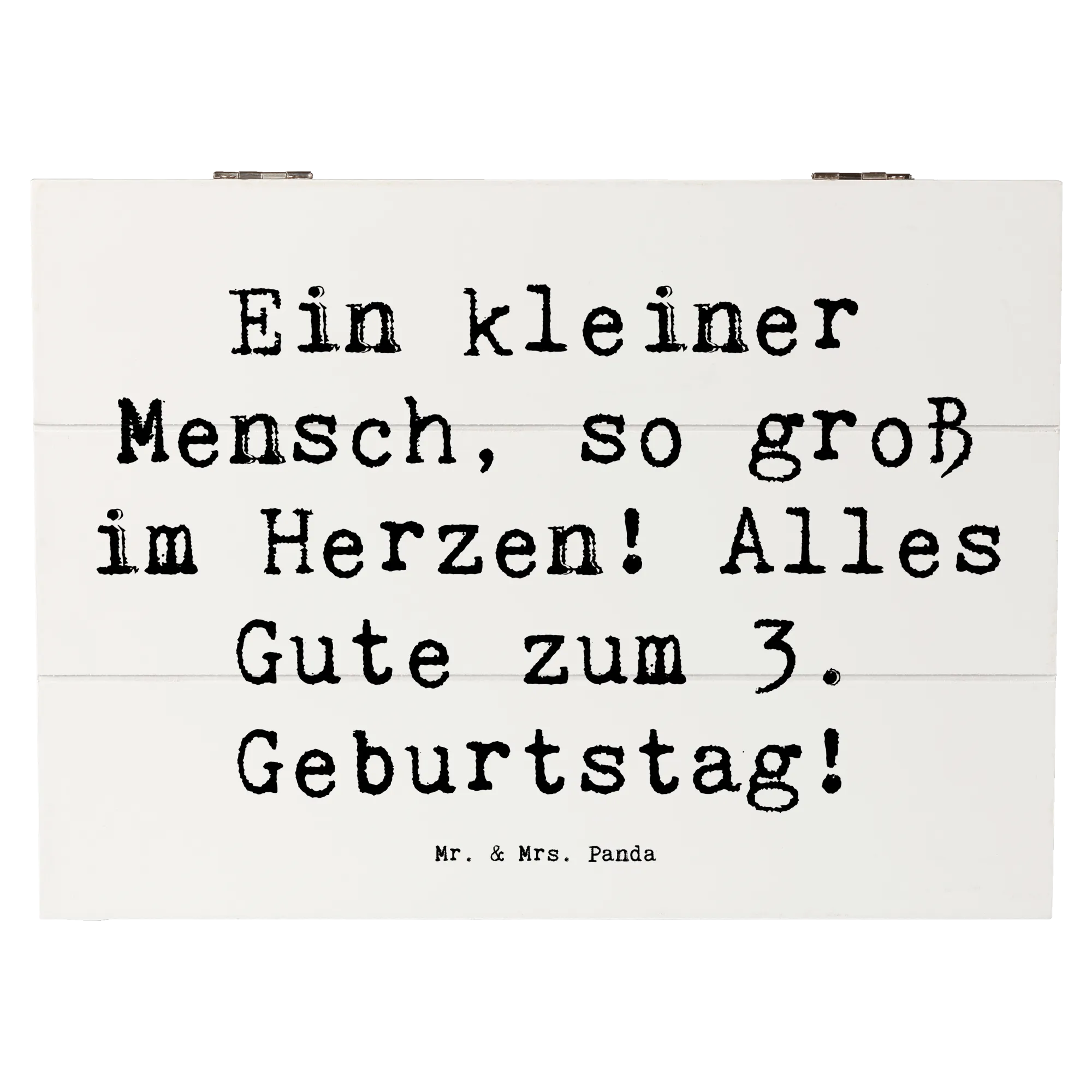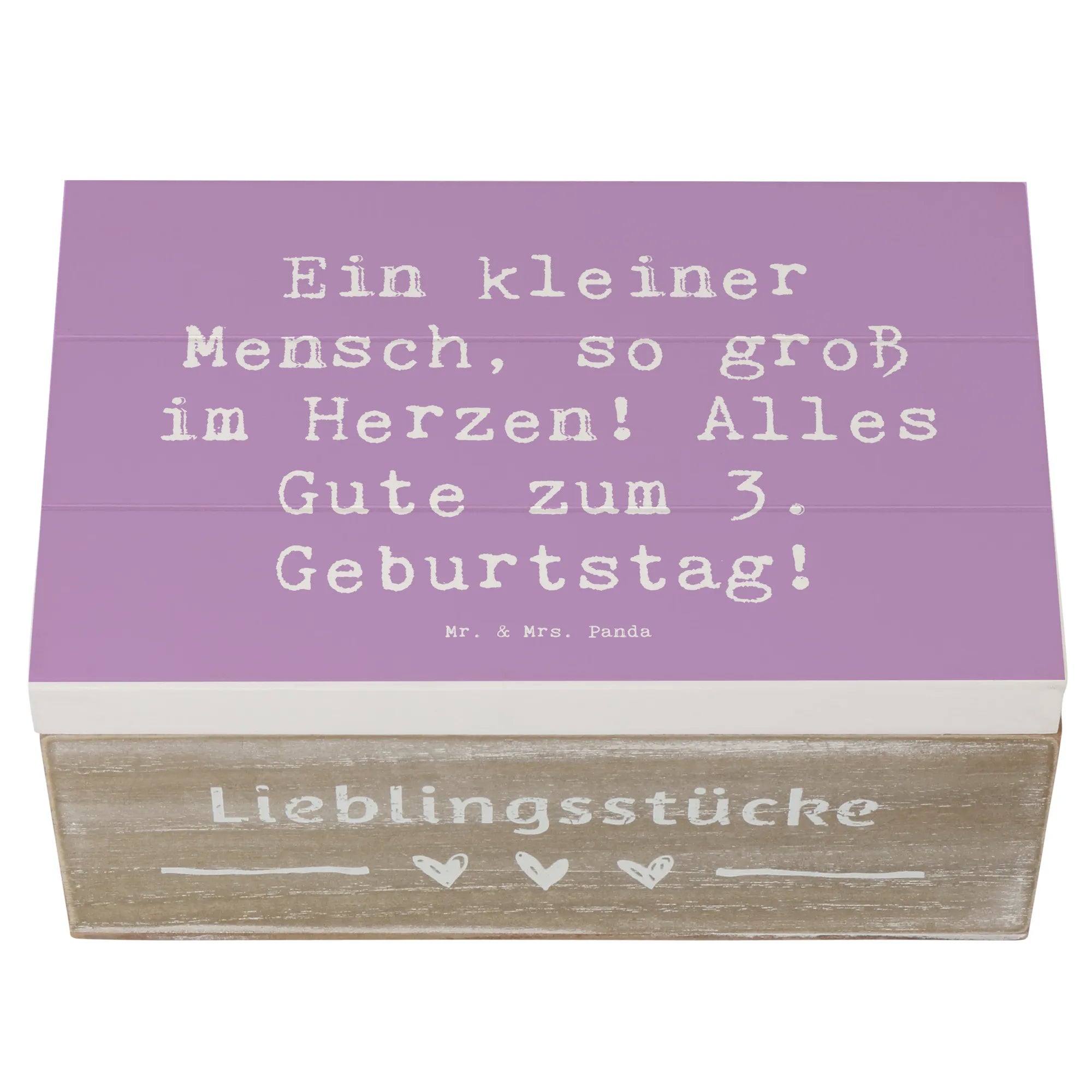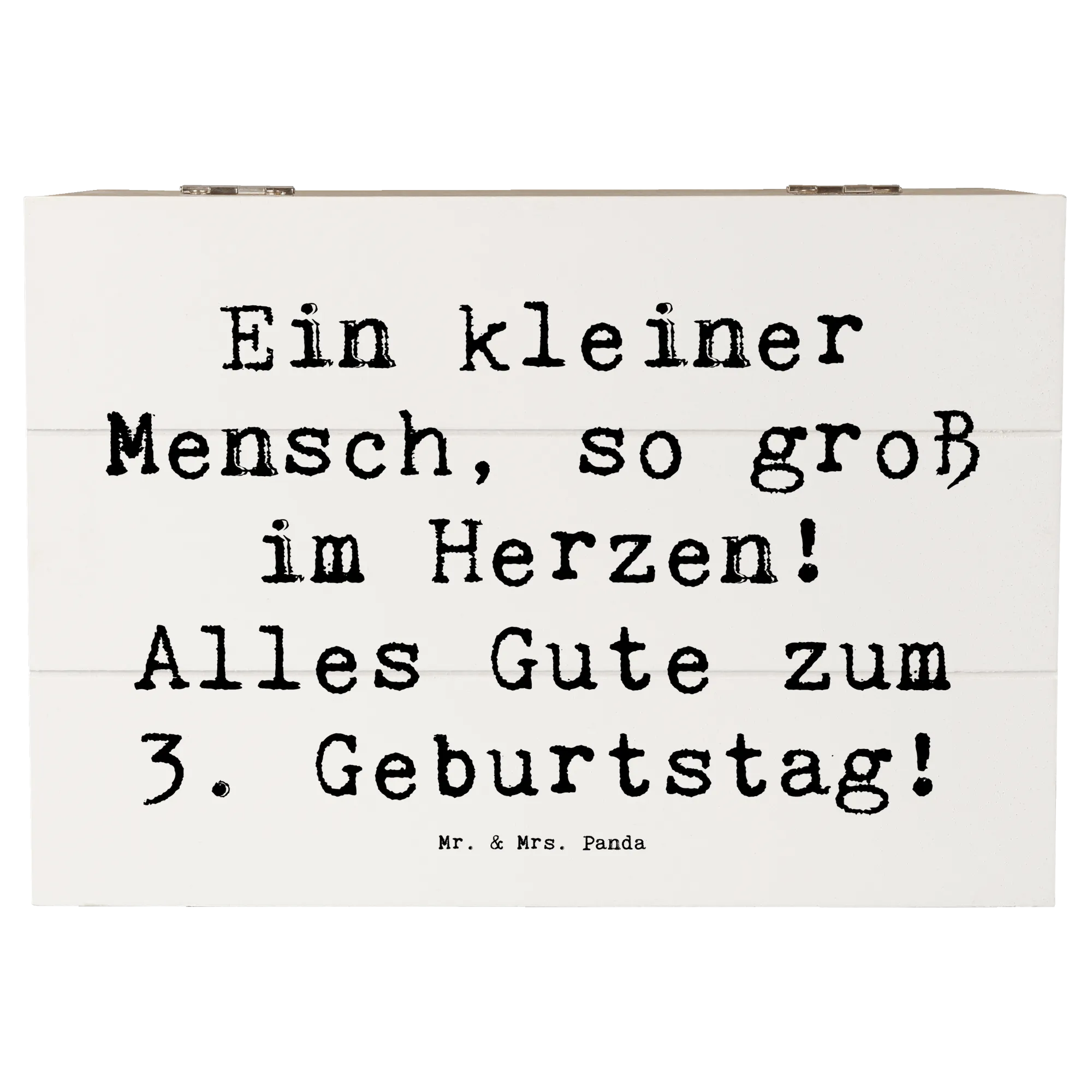 Die wunderschöne Holzkiste von Mr. & Mrs. Panda ist das perfekte Geschenk zum 3. Geburtstag! Diese Erinnerungskiste, liebevoll gestaltet mit dem Spruch "Ein kleiner Mensch, so groß im Herzen! Alles Gute zum 3. Geburtstag!", ist ideal, um die wertvollsten Schätze und Erinnerungen deines kleinen Lieblings zu bewahren.