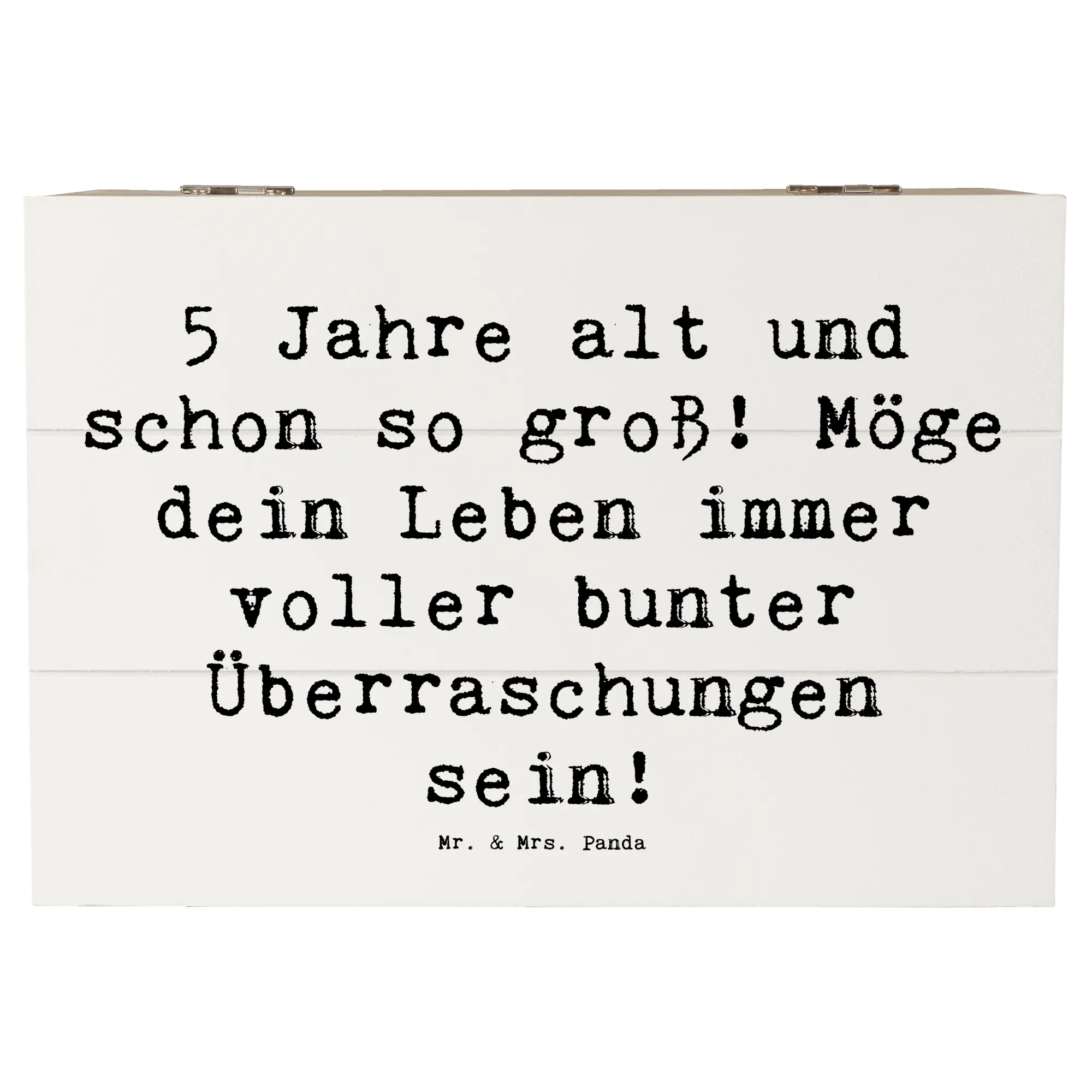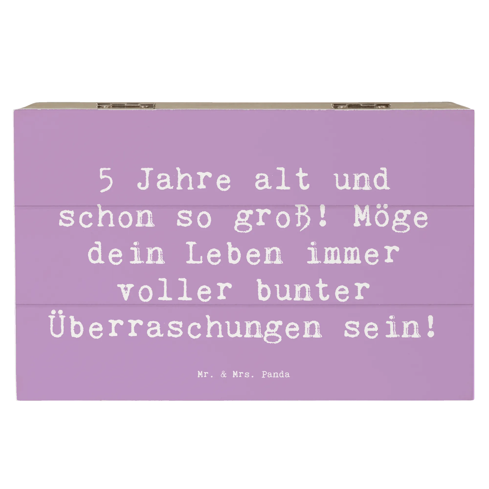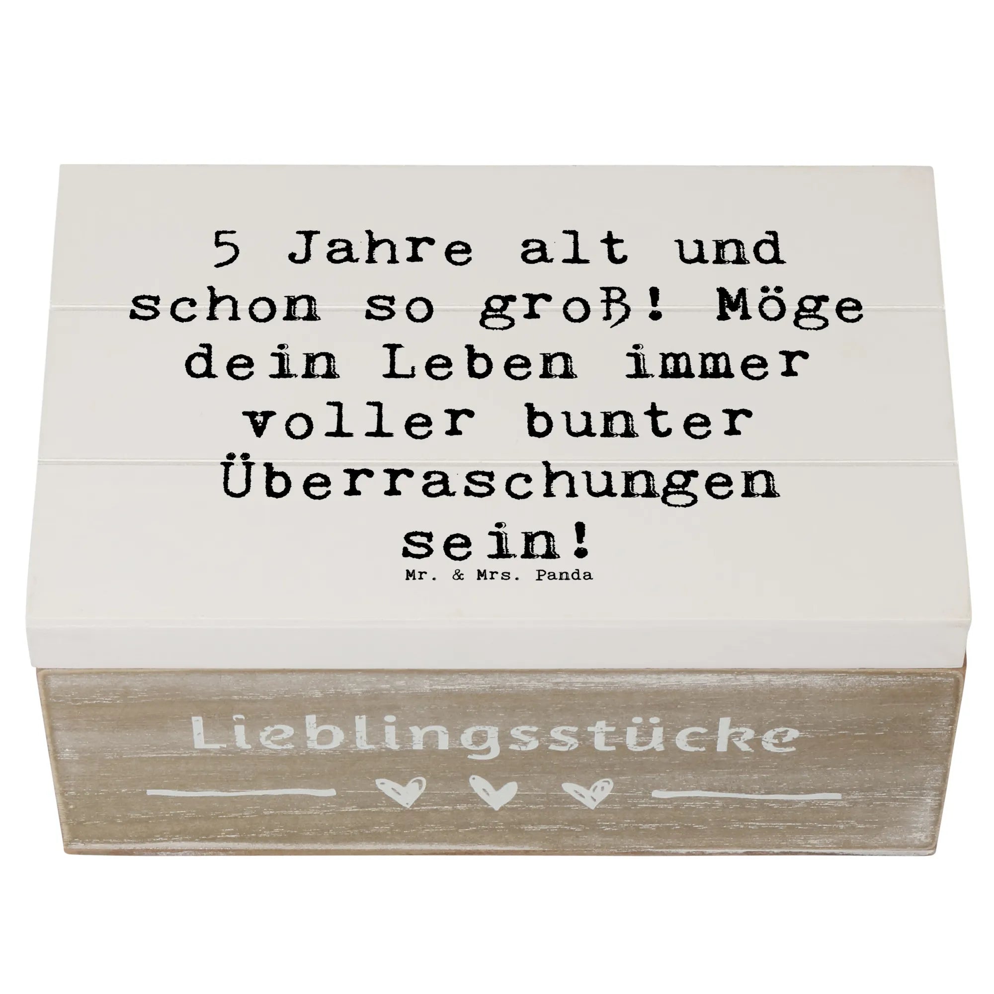 Entdecke die bezaubernde Holzkiste von Mr. & Mrs. Panda, die das perfekte Geschenk zum 5. Geburtstag ist! Diese liebevoll gestaltete Erinnerungskiste trägt den herzerwärmenden Spruch "5 Jahre alt und schon so groß! Möge dein Leben immer voller bunter Überraschungen sein!".