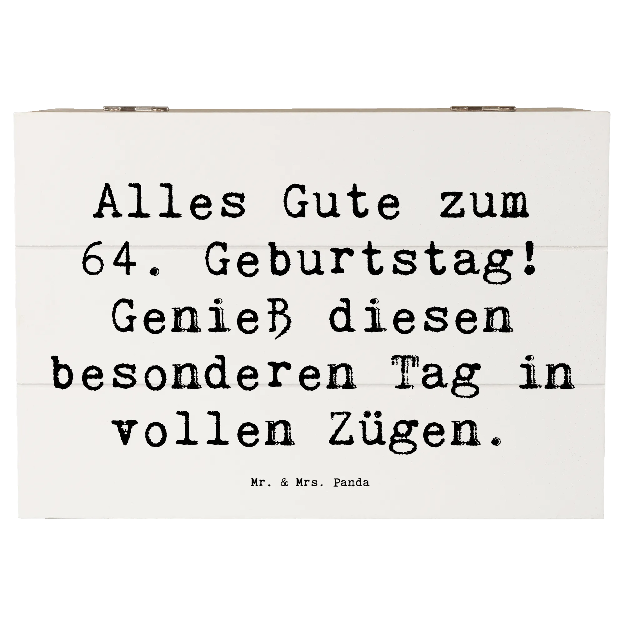 Du suchst nach einem ganz besonderen Geschenk zum 64. Geburtstag? Dann ist unsere wunderschöne Holzkiste von Mr. & Mrs. Panda genau das Richtige! Bedruckt mit dem liebevollen Slogan "Alles Gute zum 64. Geburtstag! Genieß diesen besonderen Tag in vollen Zügen." ist diese Holzkiste nicht nur eine schicke Aufbewahrungsbox, sondern auch ein echtes Highlight jeder Feier.