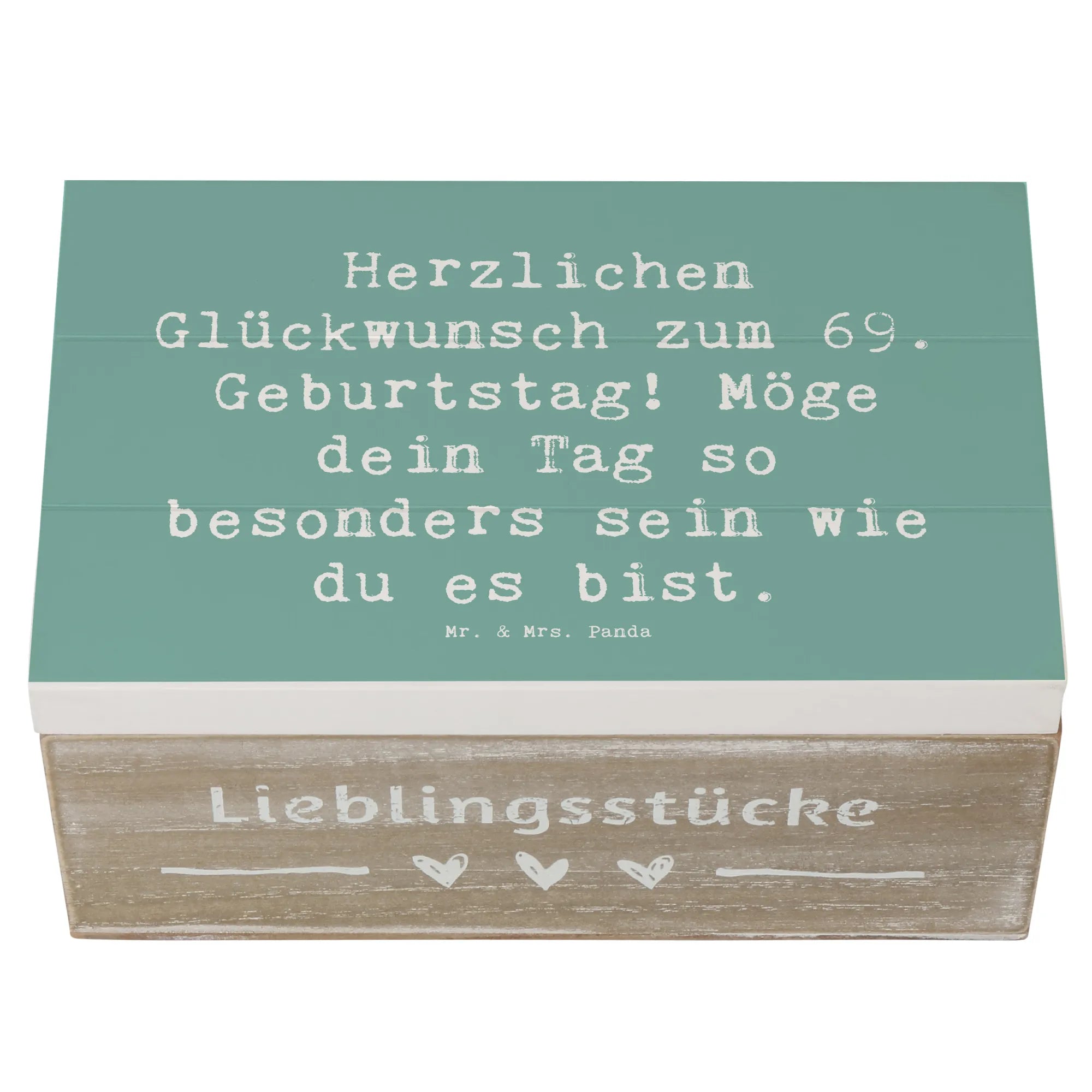 Die wunderschöne Holzkiste von Mr. & Mrs. Panda ist das perfekte Geschenk zum 69. Geburtstag! Mit dem liebevollen Spruch "Herzlichen Glückwunsch zum 69. Geburtstag! Möge dein Tag so besonders sein wie du es bist." wirst du garantiert ein Lächeln auf das Gesicht des Geburtstagskindes zaubern.