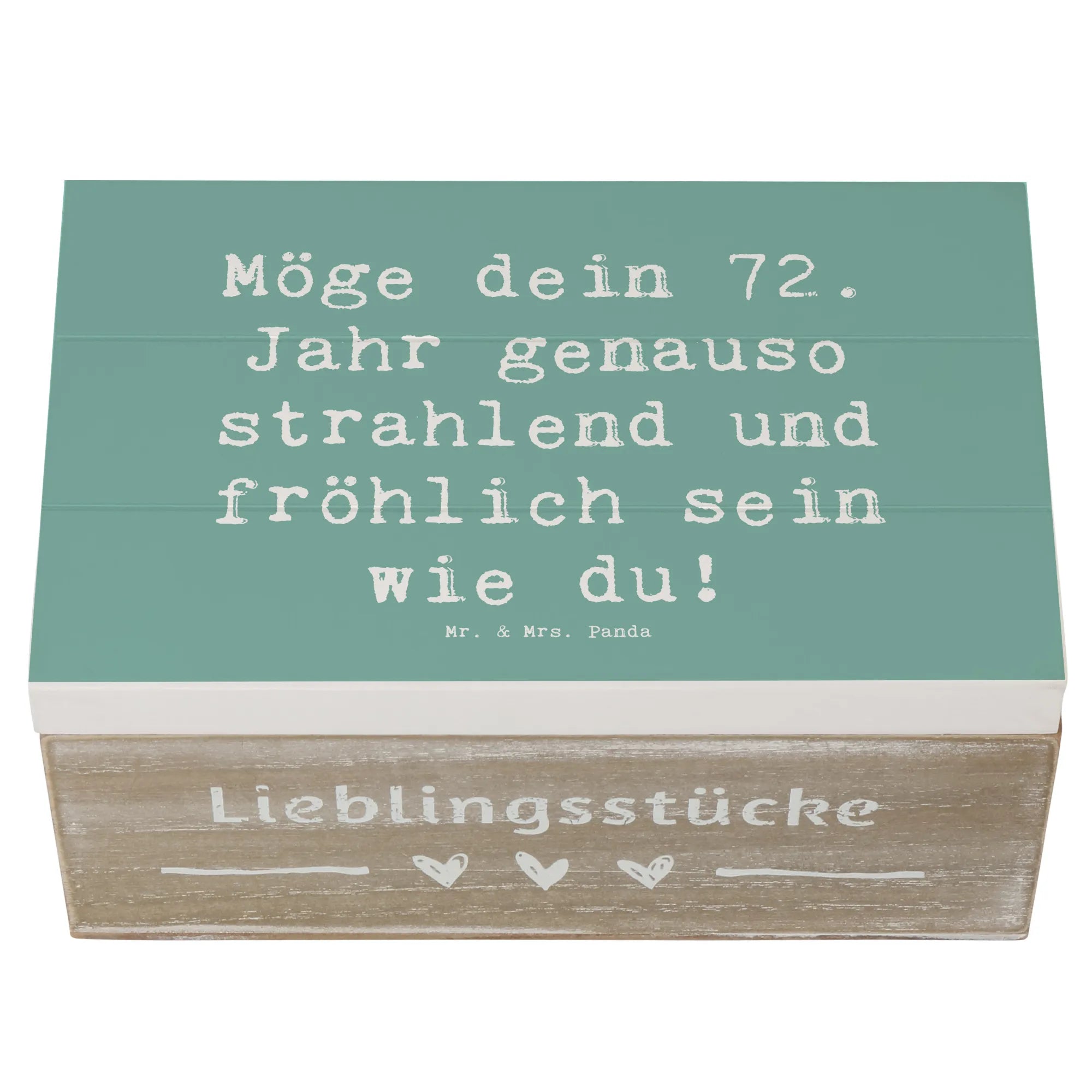 Herzlichen Glückwunsch zum 72. Geburtstag! In diesem stolzen Alter hat man so viele Schätze gesammelt – nicht nur materielle Dinge, sondern vor allem kostbare Augenblicke. Unsere Holzkiste von Mr. & Mrs. Panda ist der ideale Ort, um all diese Erinnerungen sicher zu bewahren. 🎁