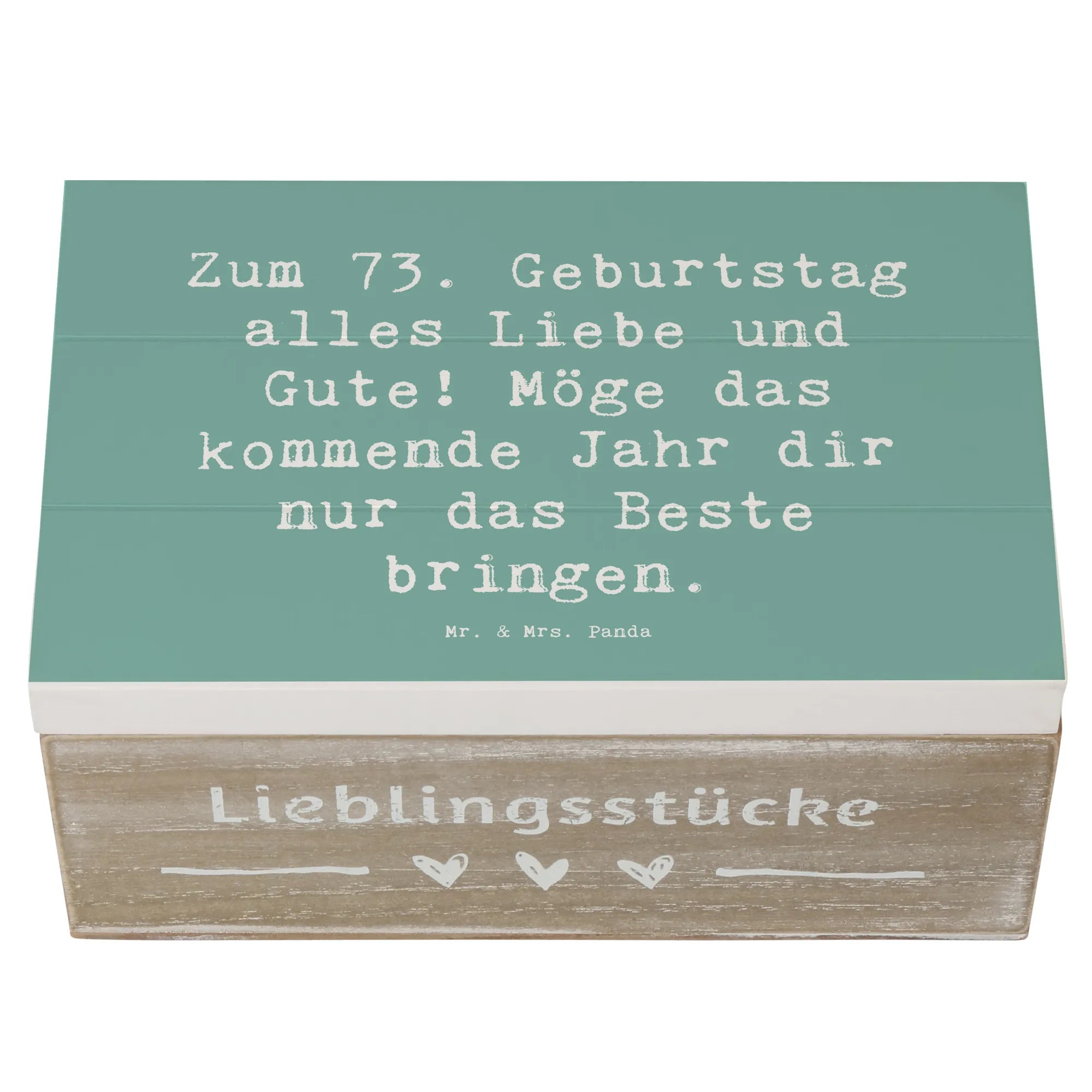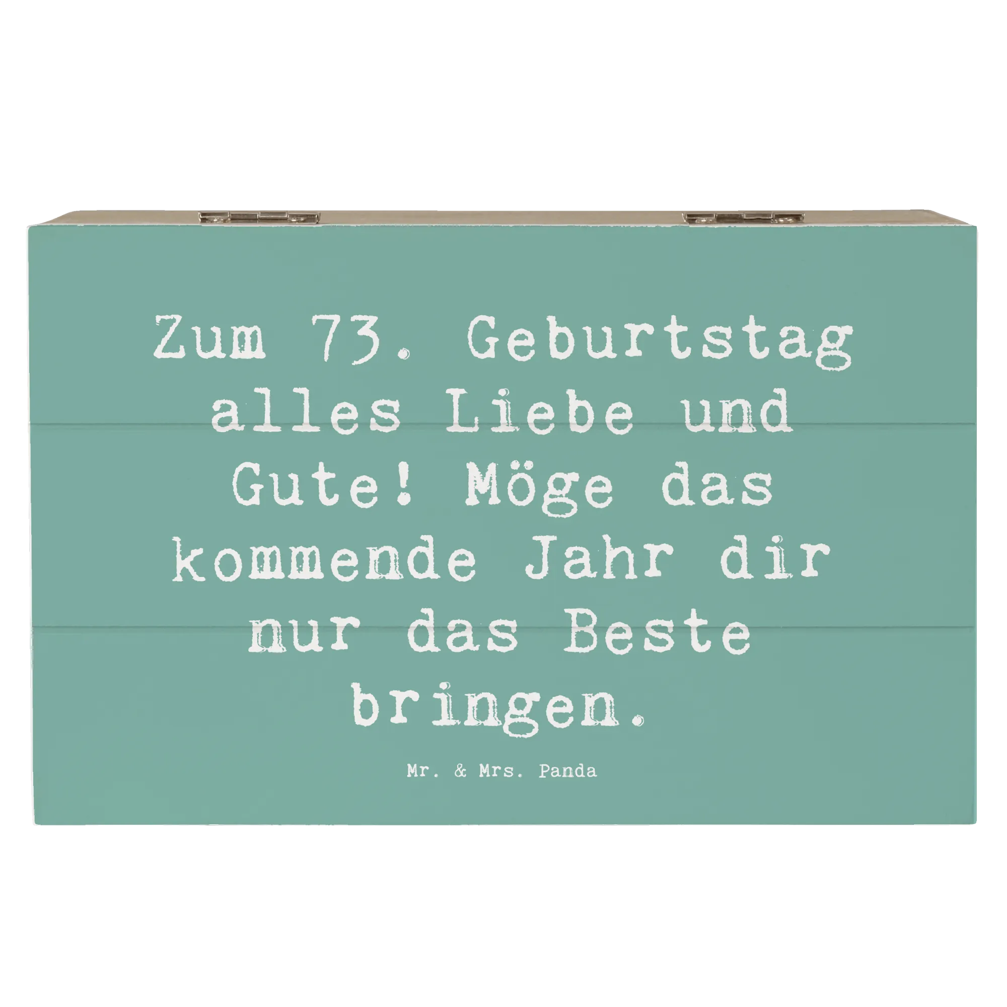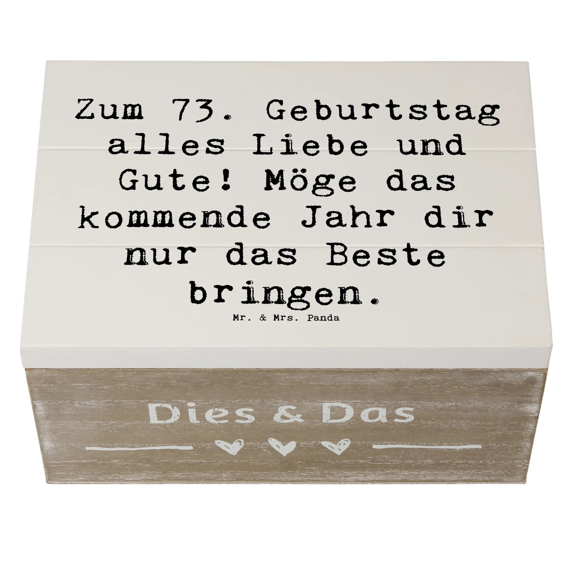 Diese Holzkiste ist einfach die beste Wahl für alle, die jemandem etwas ganz Besonderes schenken möchten. Mach den 73. Geburtstag unvergesslich mit dieser einzigartigen Erinnerungskiste von Mr. & Mrs. Panda. Deine Lieben werden es dir danken und das Geschenk mit Liebe hüten!