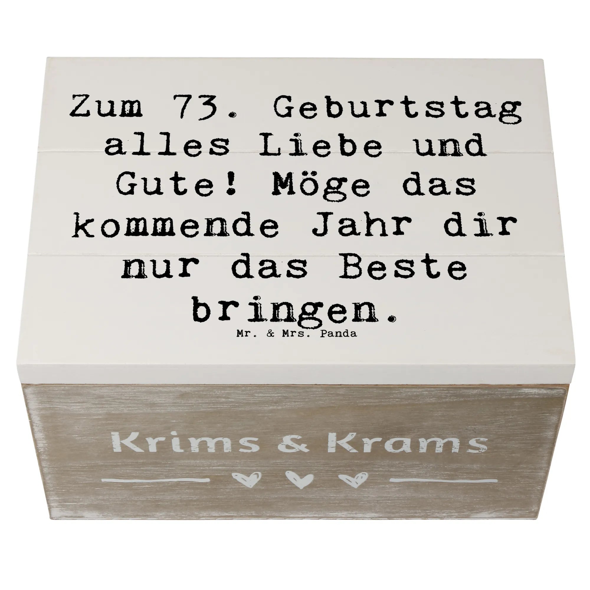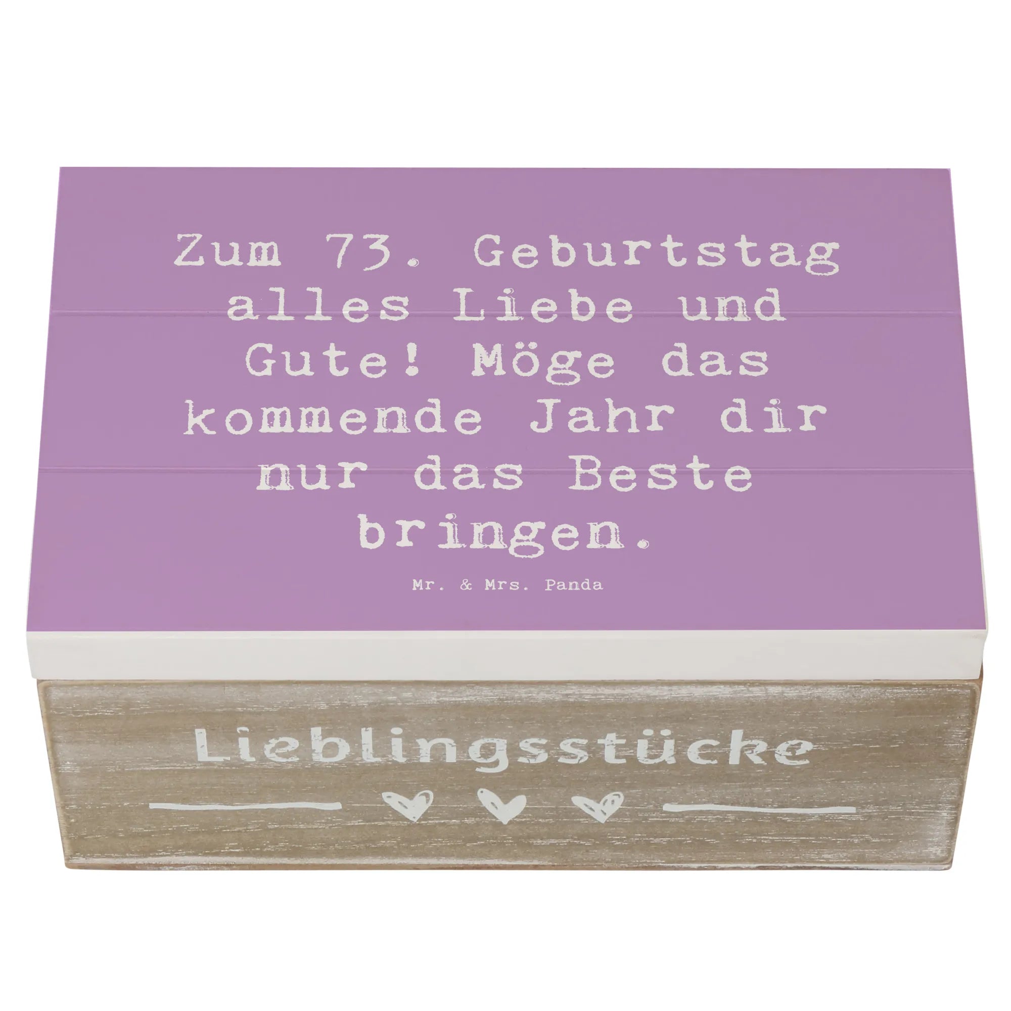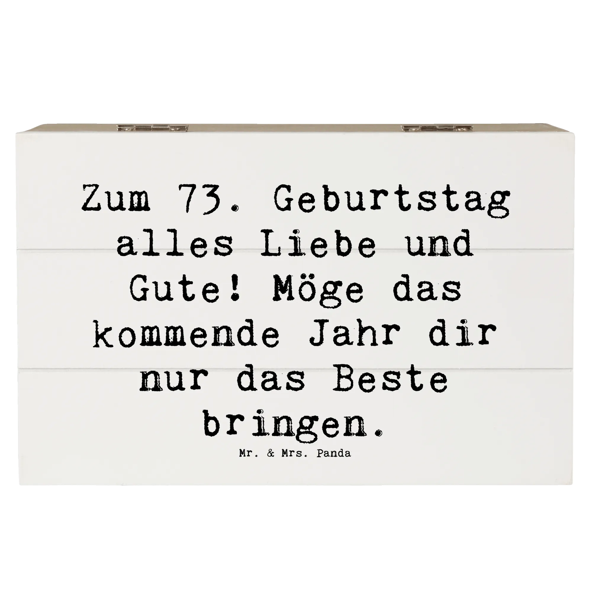 Holzkiste von Mr. & Mrs. Panda zum 73. Geburtstag wirst du zum Glücksbringer!