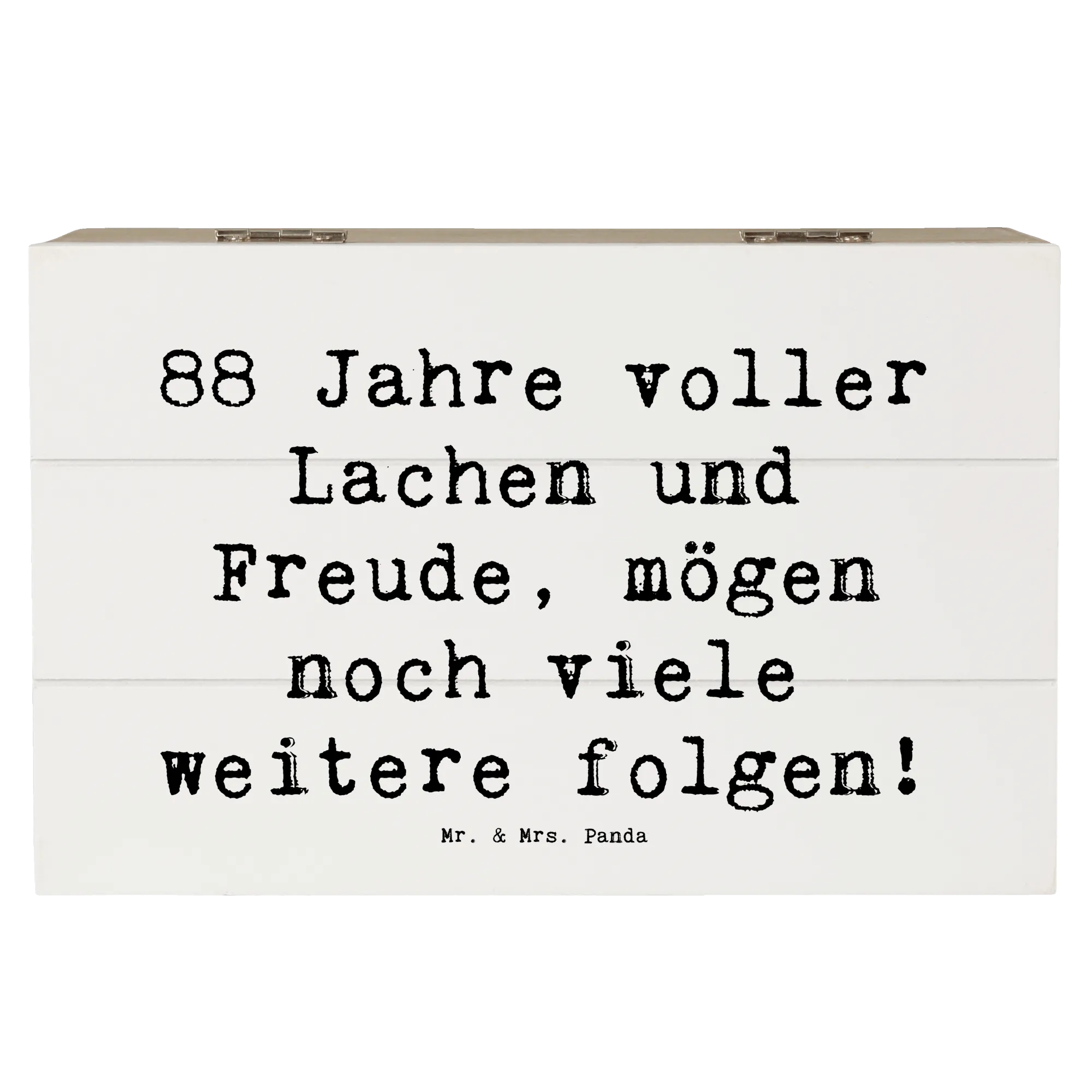 Die wunderschöne Holzkiste von Mr. & Mrs. Panda ist das perfekte Geschenk für den 88. Geburtstag! Bedruckt mit dem liebevollen Spruch "88 Jahre voller Lachen und Freude, mögen noch viele weitere folgen!" vereint sie Funktionalität und eine herzliche Botschaft. Diese Kiste ist nicht nur geschmackvoll designt, sondern auch ideal geeignet als Erinnerungskiste für all die besonderen Momente im Leben.