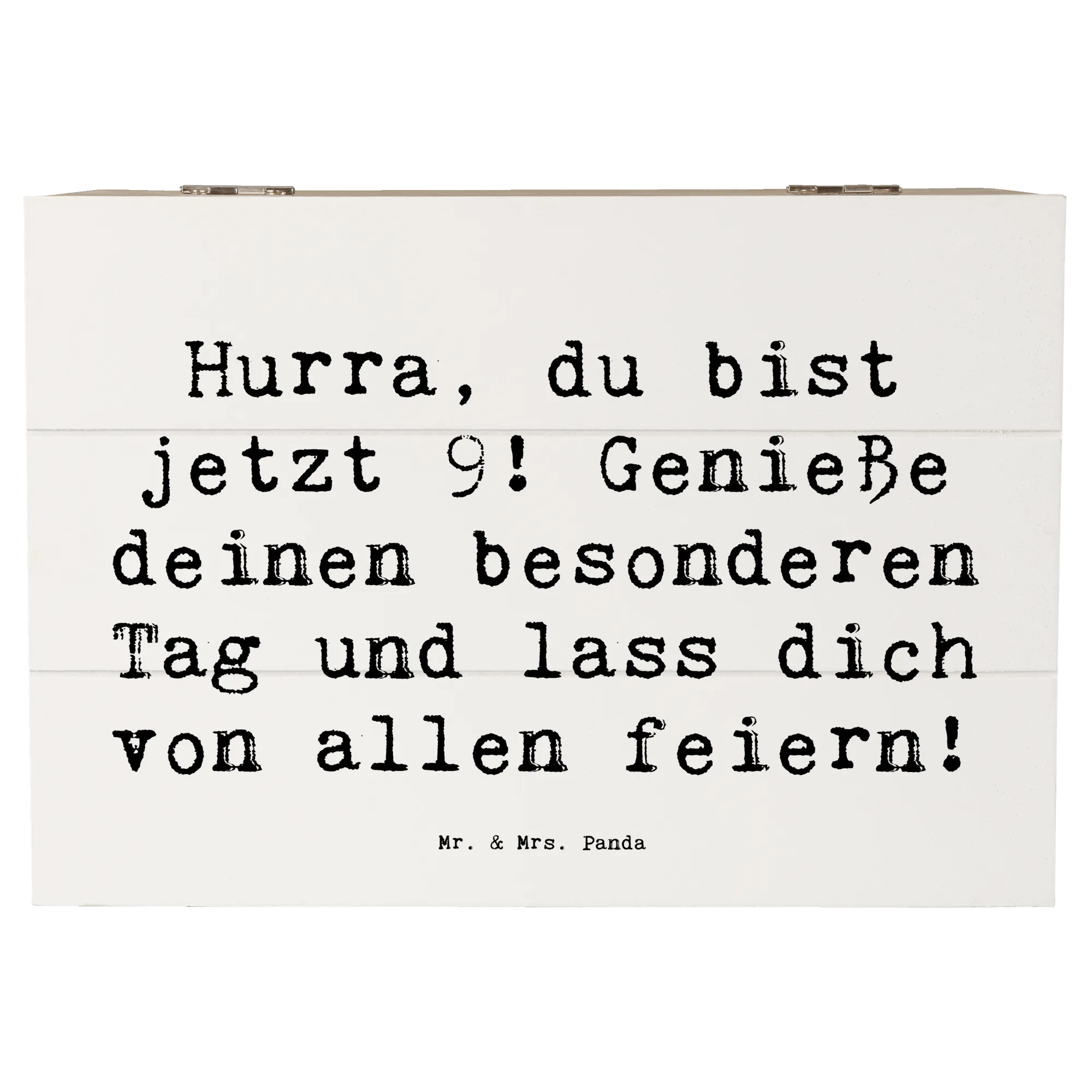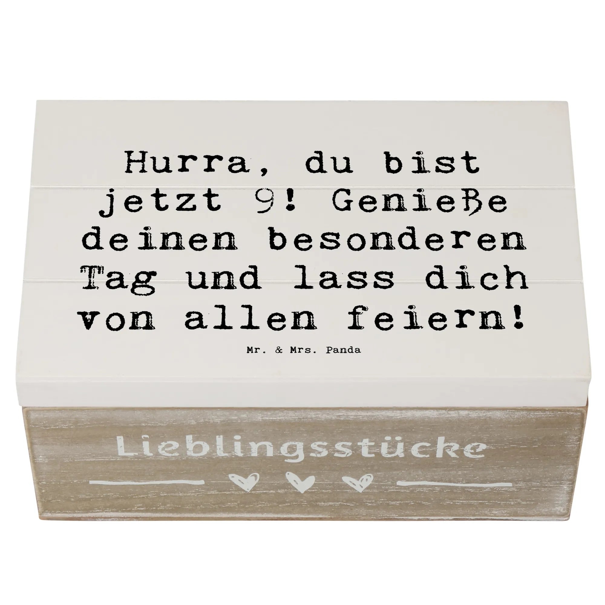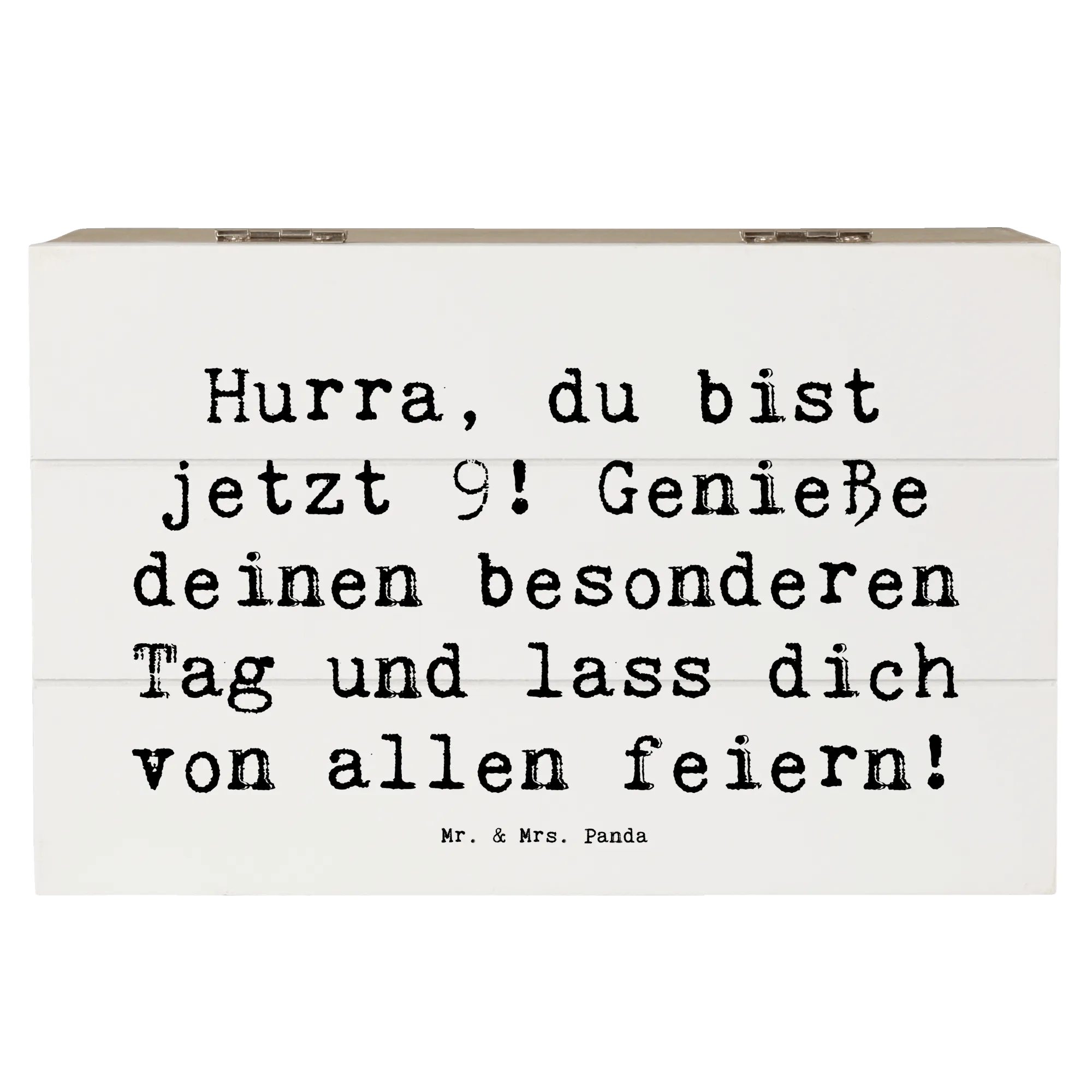 Die wunderschöne Holzkiste von Mr. & Mrs. Panda ist das perfekte Geschenk zum 9. Geburtstag! Mit dem fröhlichen Motiv 'Hurra, du bist jetzt 9! Genieße deinen besonderen Tag und lass dich von allen feiern!' bringt sie nicht nur Freude, sondern auch eine Menge Erinnerungen mit sich.