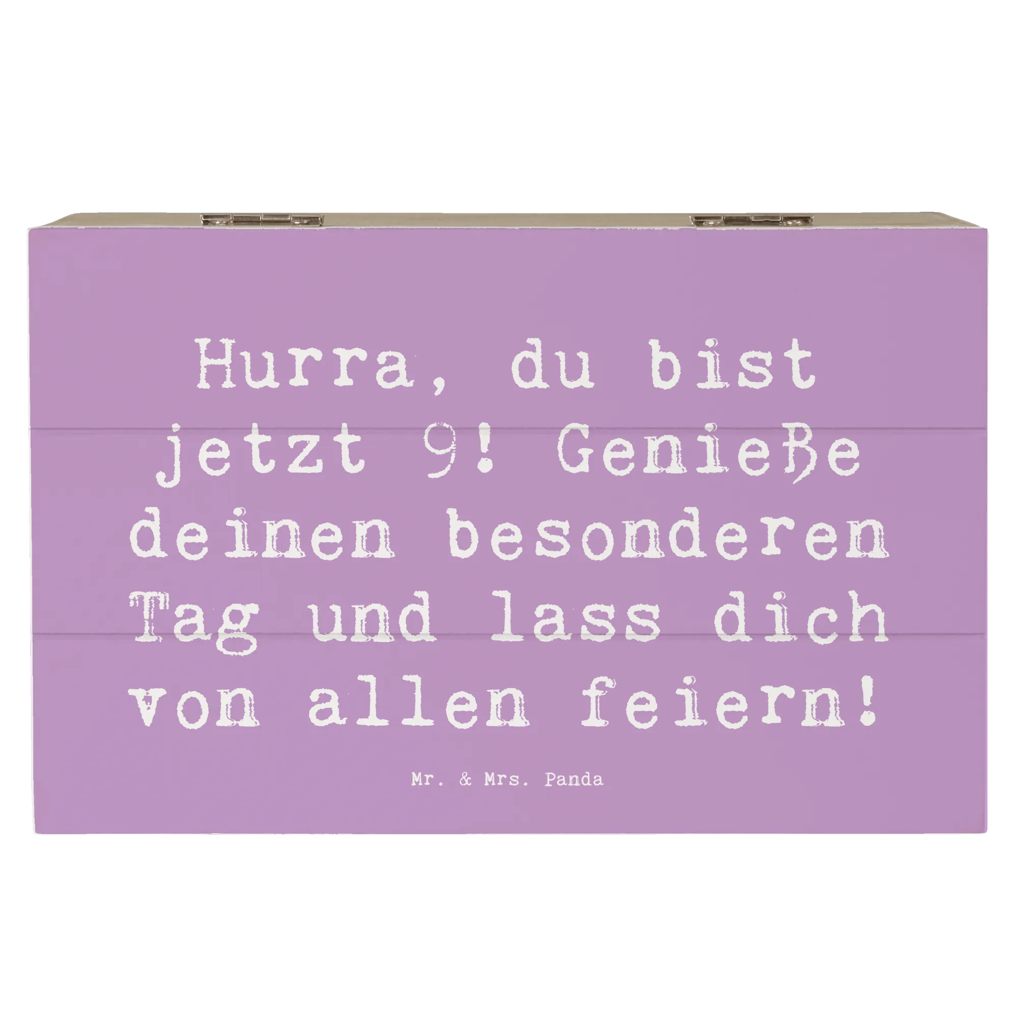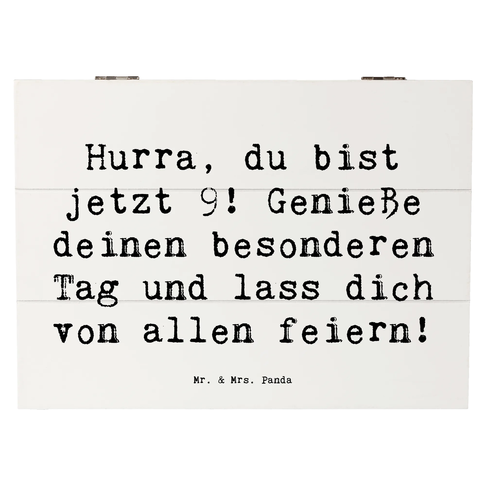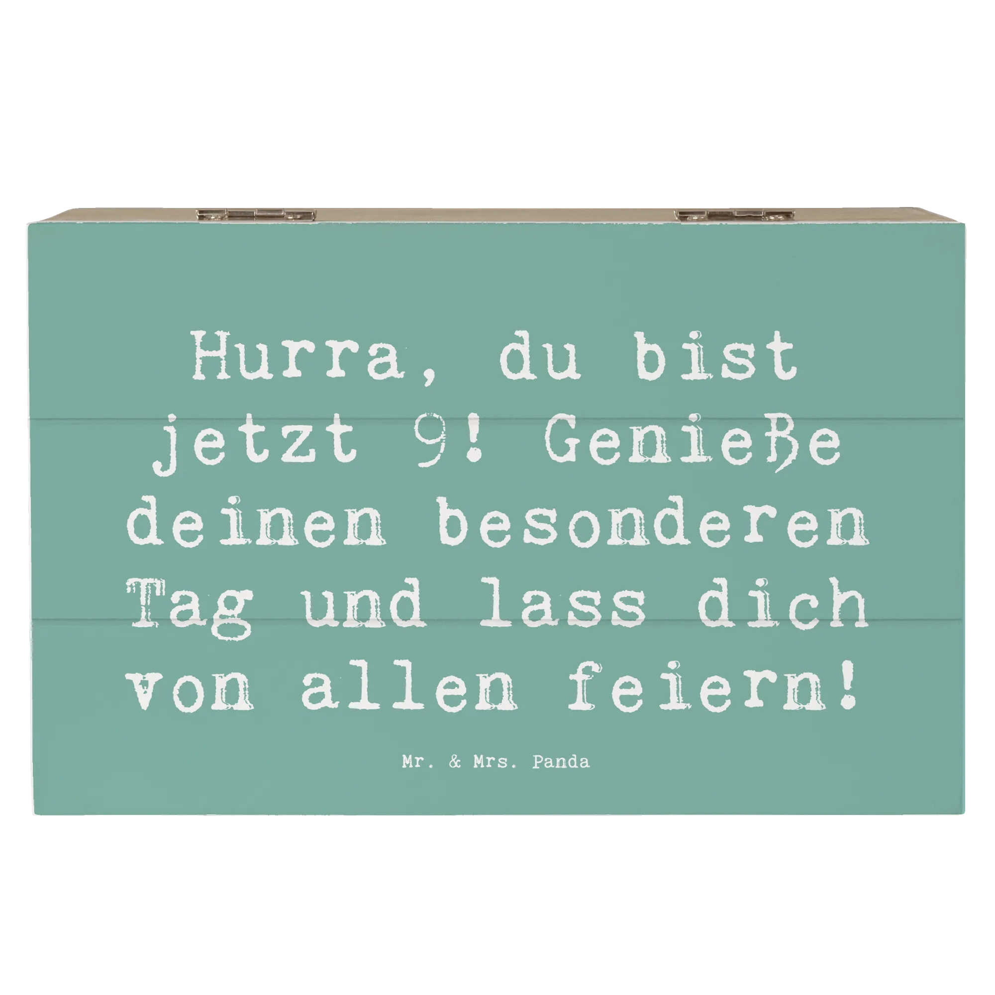 Die wunderschöne Holzkiste von Mr. & Mrs. Panda ist das perfekte Geschenk zum 9. Geburtstag! Mit dem fröhlichen Motiv 'Hurra, du bist jetzt 9! Genieße deinen besonderen Tag und lass dich von allen feiern!' bringt sie nicht nur Freude, sondern auch eine Menge Erinnerungen mit sich.