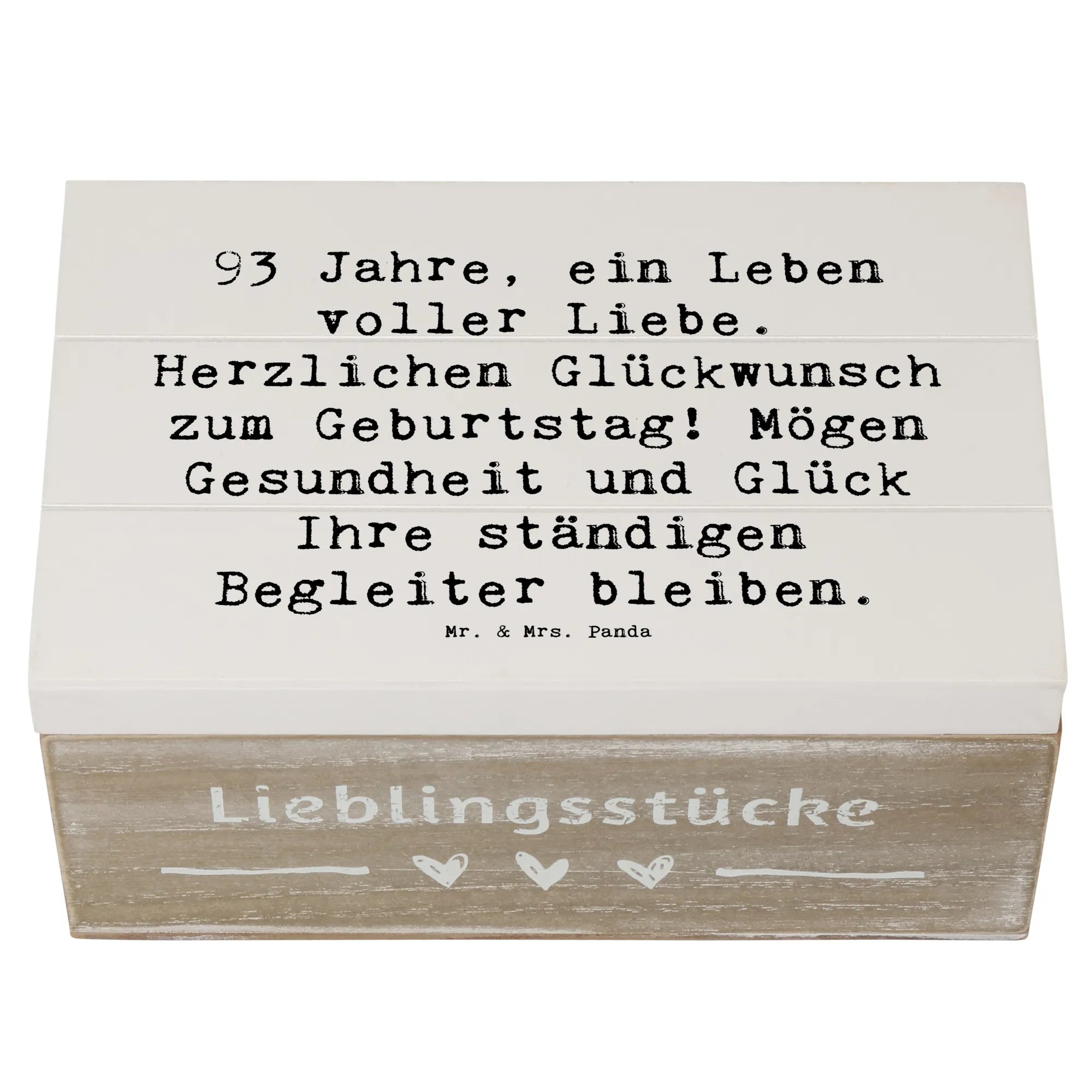 Die wunderschöne Holzkiste von Mr. & Mrs. Panda ist das perfekte Geschenk zum 93. Geburtstag. Mit dem liebevollen Slogan "93 Jahre, ein Leben voller Liebe. Herzlichen Glückwunsch zum Geburtstag! Mögen Gesundheit und Glück Ihre ständigen Begleiter bleiben." verzaubert sie jeden Jubilar.