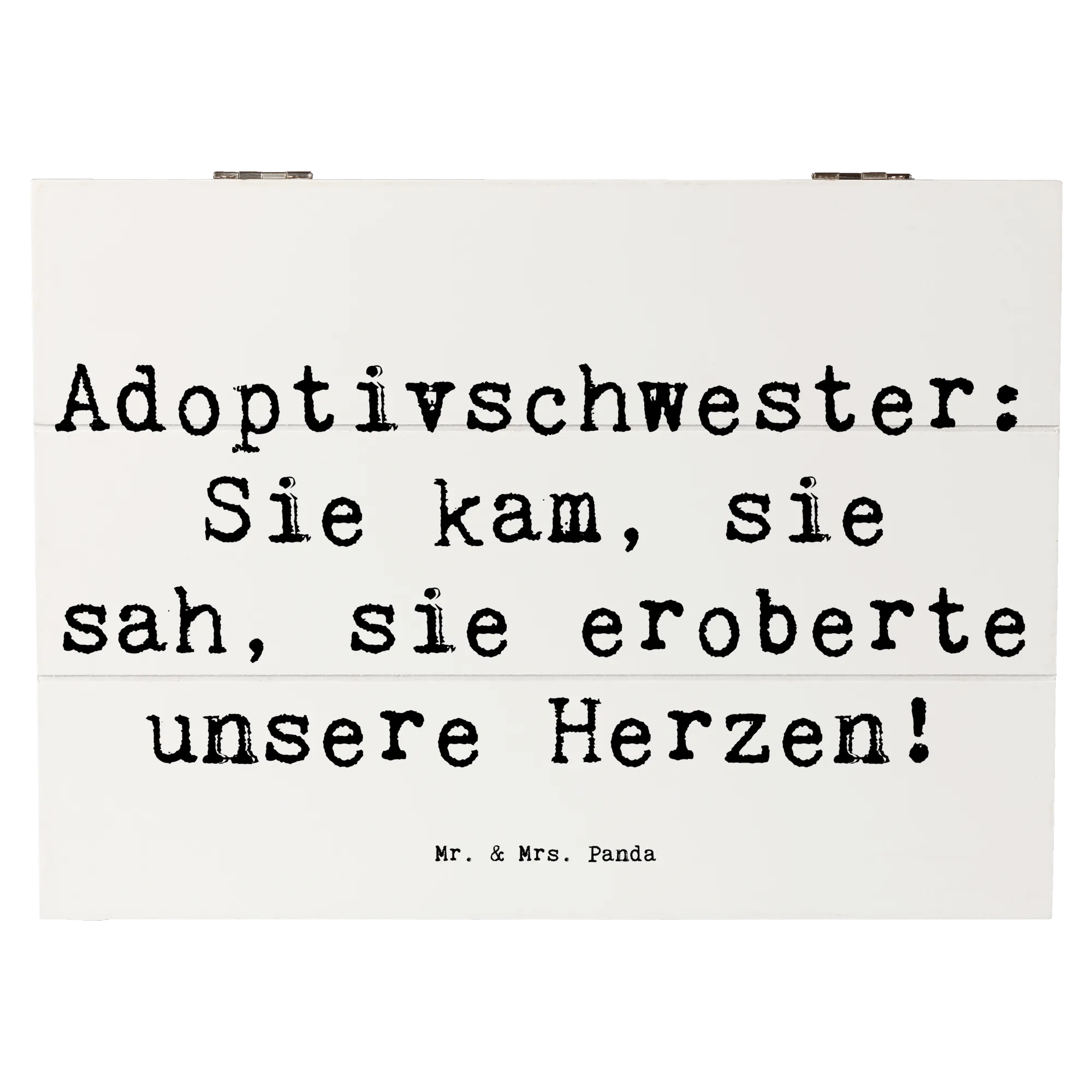 Die wunderschöne Holzkiste von Mr. & Mrs. Panda ist das perfekte Geschenk für Deine Adoptivschwester. Mit dem liebevollen Spruch "Adoptivschwester: Sie kam, sie sah, sie eroberte unsere Herzen!" feierst Du die besondere Verbindung, die über genetische Bindungen hinausgeht.
