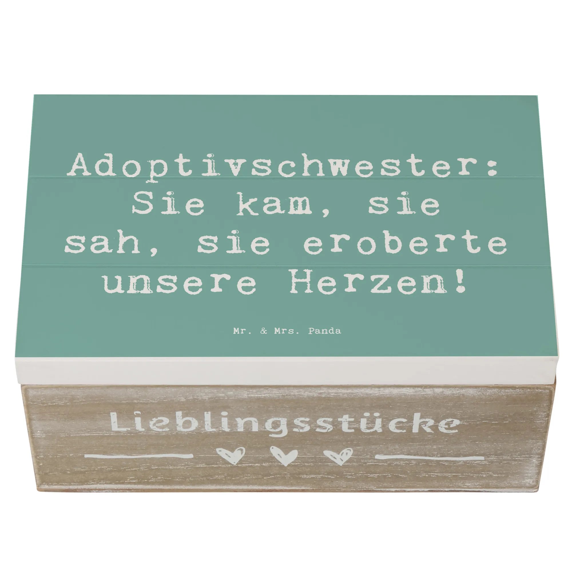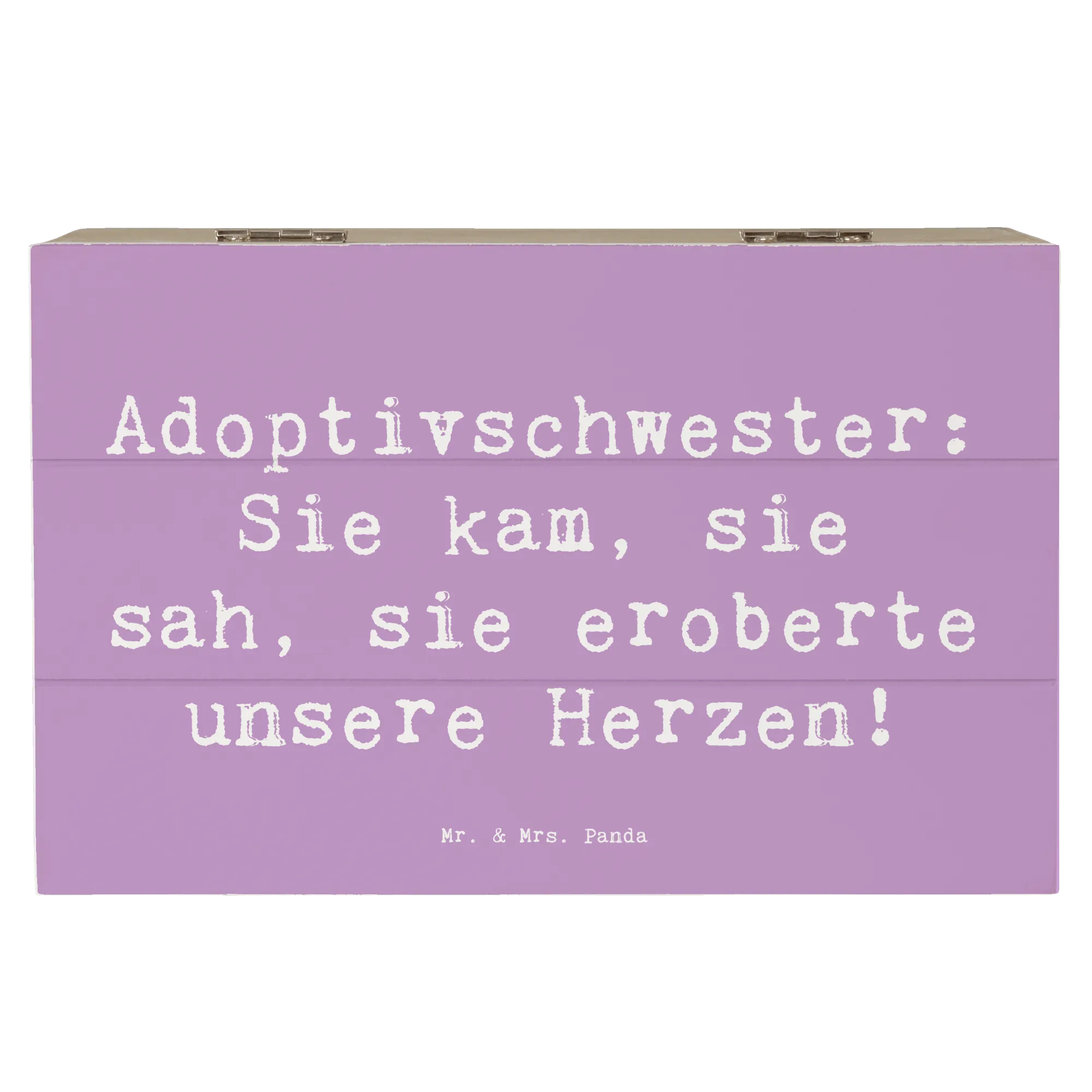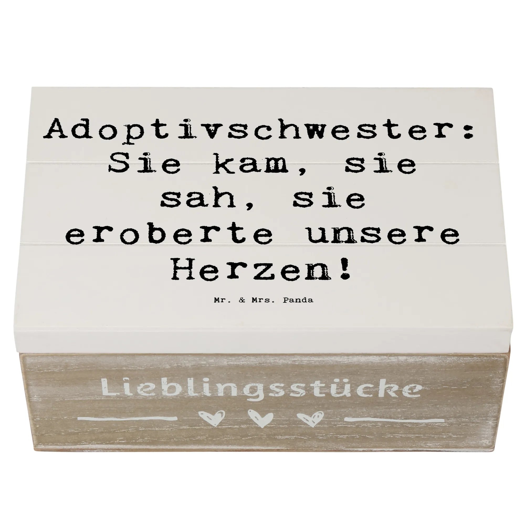 Die wunderschöne Holzkiste von Mr. & Mrs. Panda mit einem liebevollen Motiv für Adoptivschwestern ist das perfekte Geschenk für jeden Anlass.