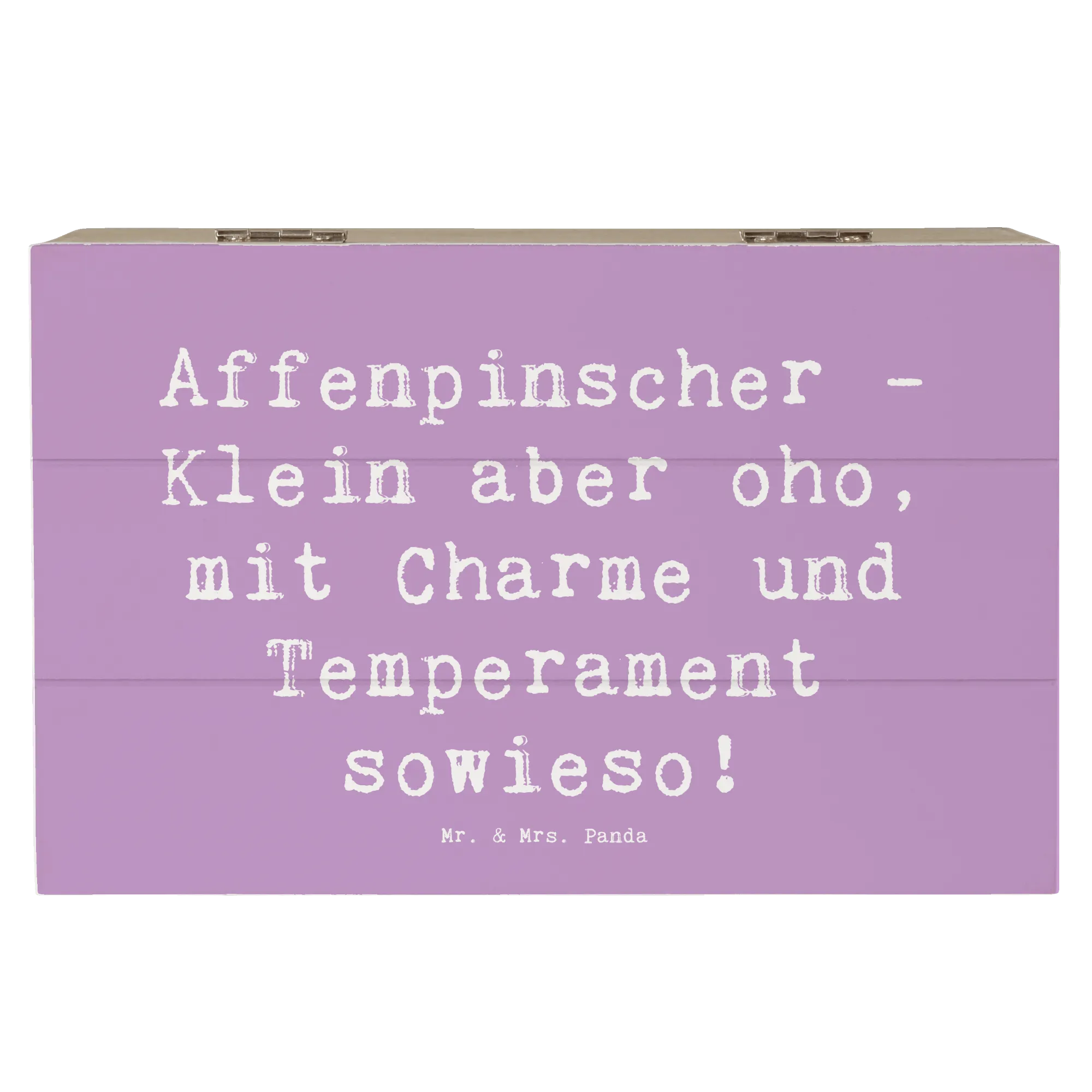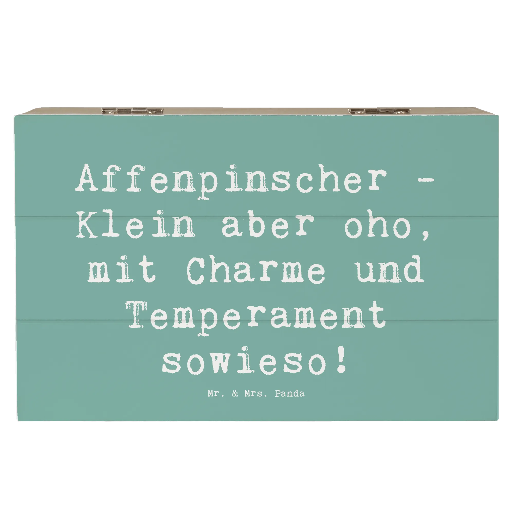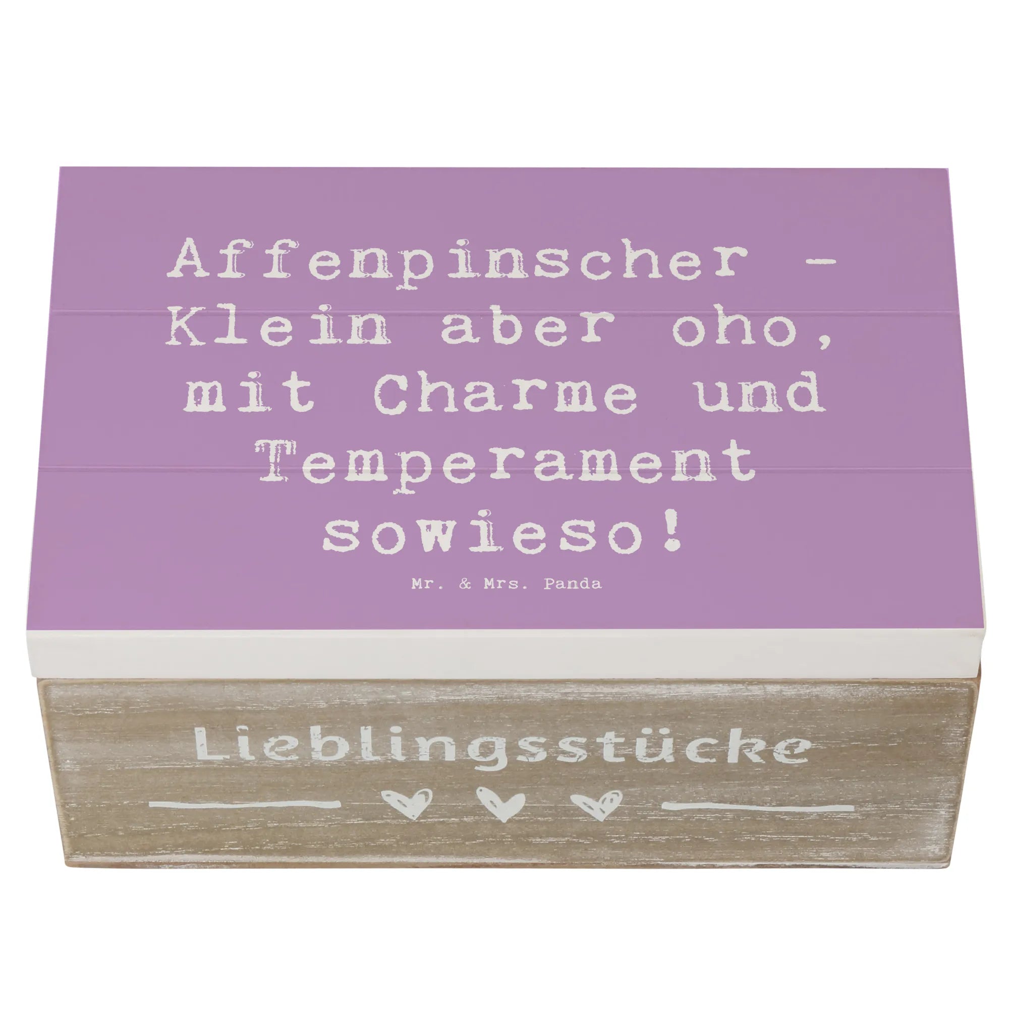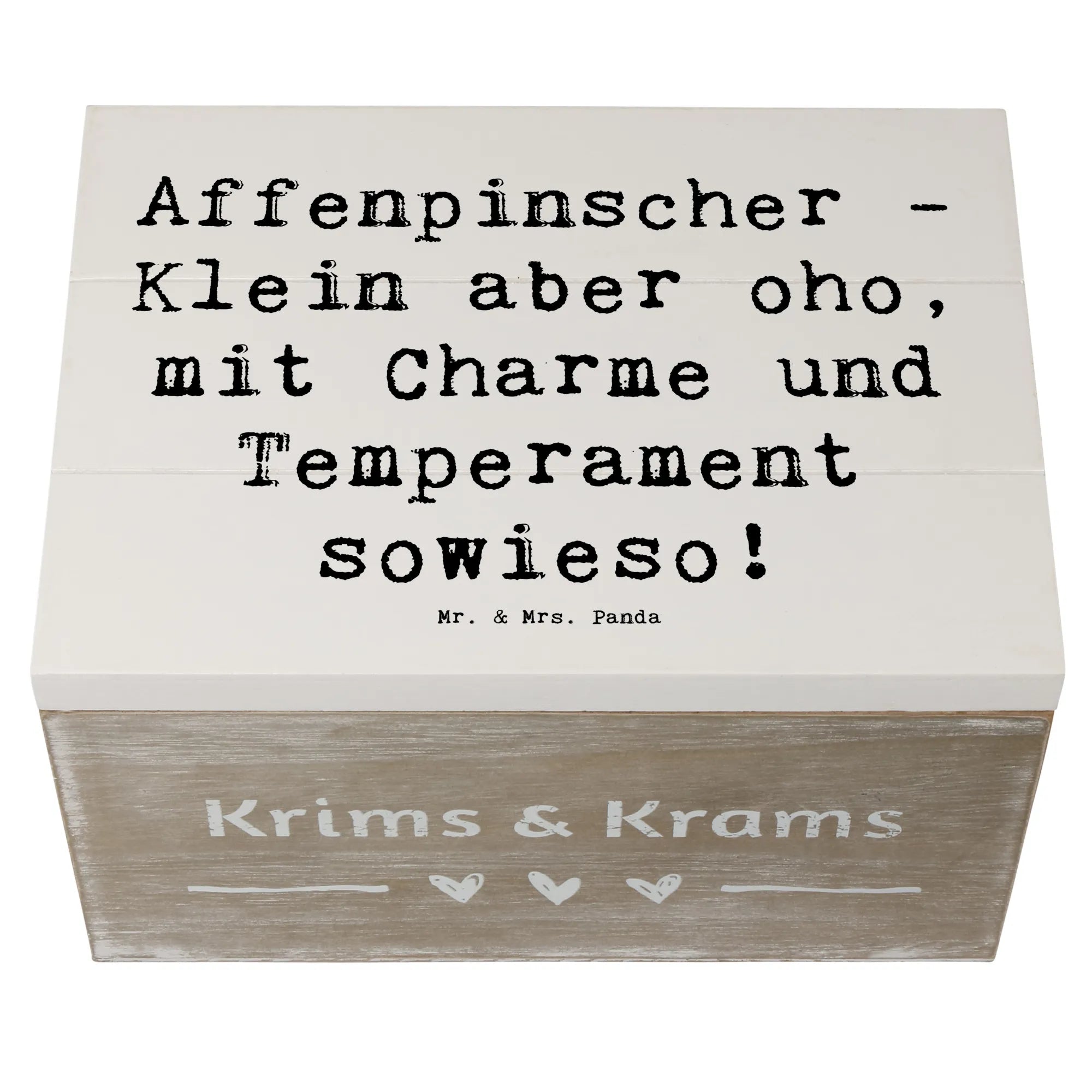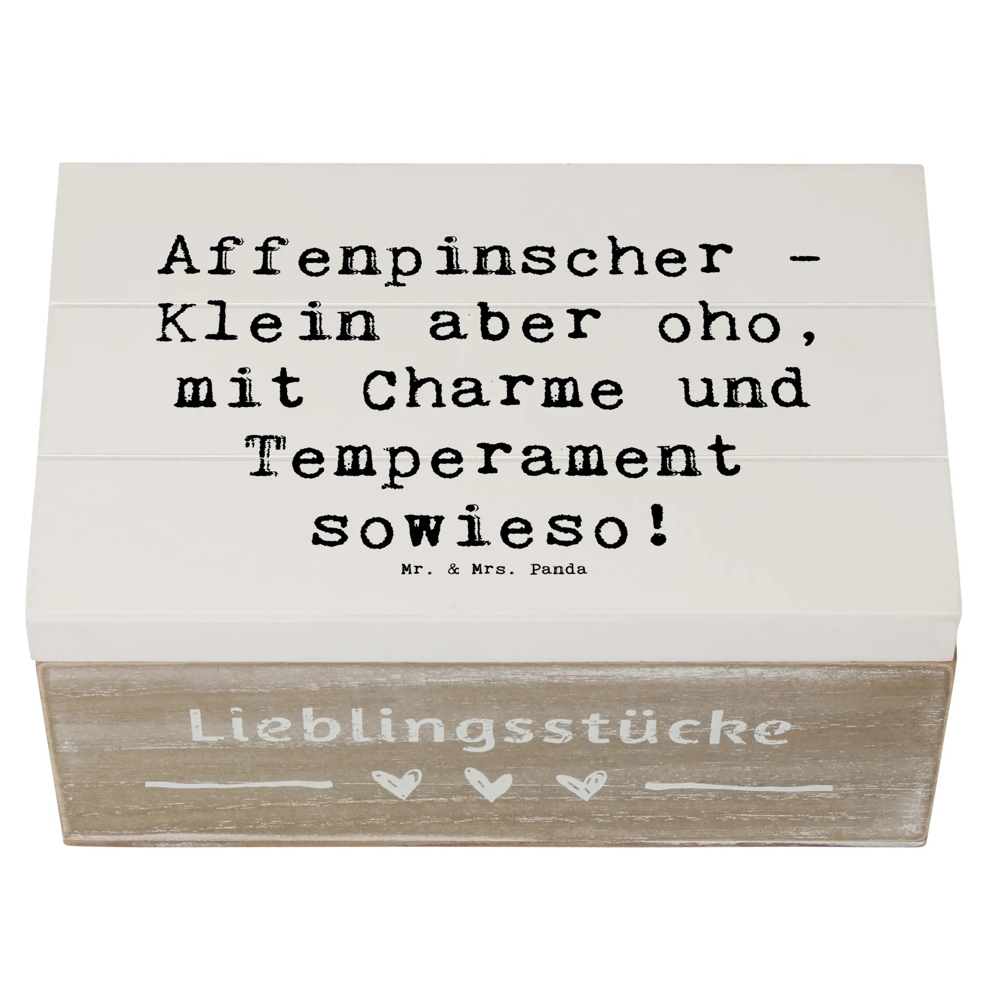 Diese wunderbare Holzkiste von Mr. & Mrs. Panda ist ein wahrhaft perfektes Geschenk für alle Hundeliebhaber, besonders für die Fans des charmanten Affenpinschers! Die robuste Erinnerungskiste mit dem Spruch "Affenpinscher - Klein aber oho, mit Charme und Temperament sowieso!" begeistert jeden, der die Hunderasse schätzt.
