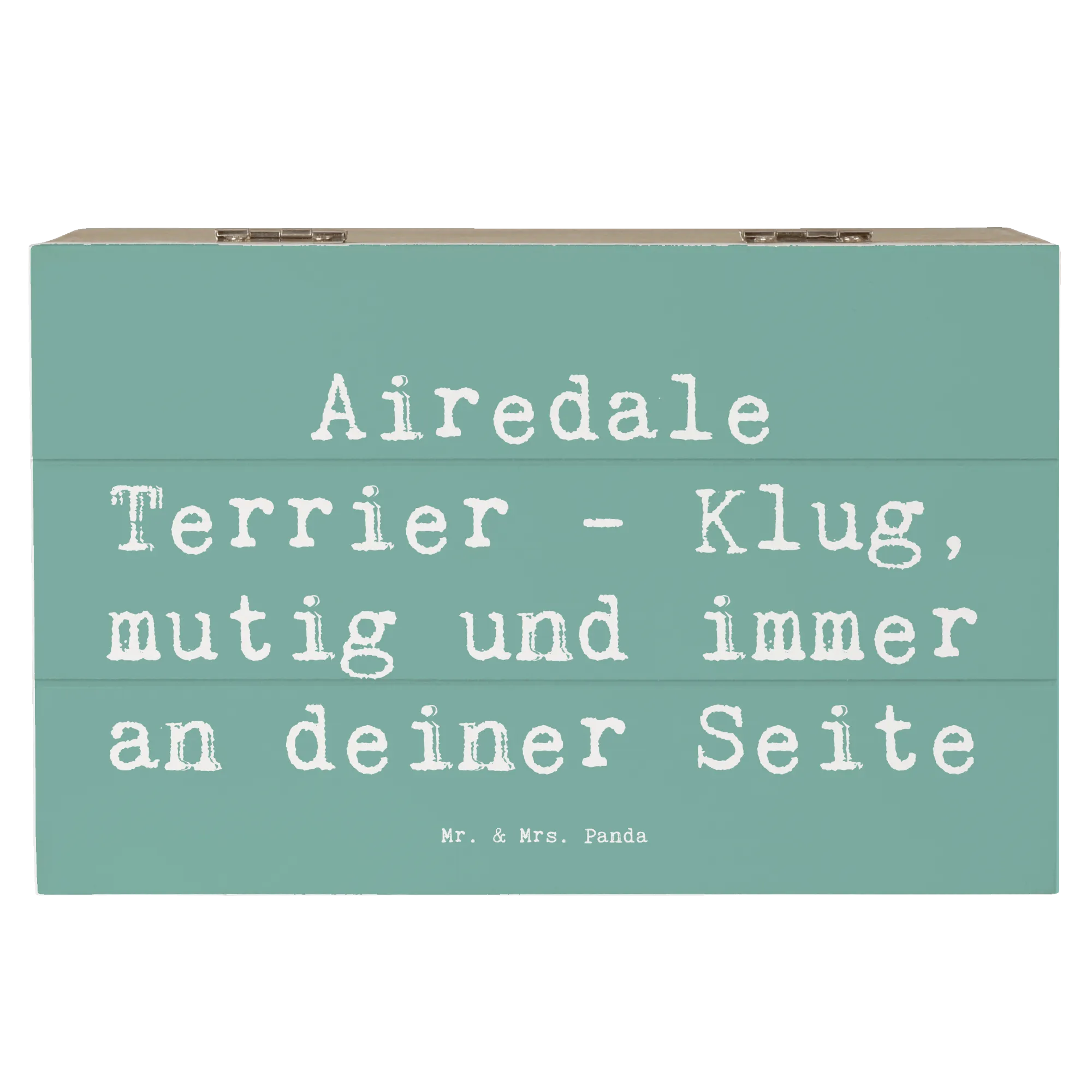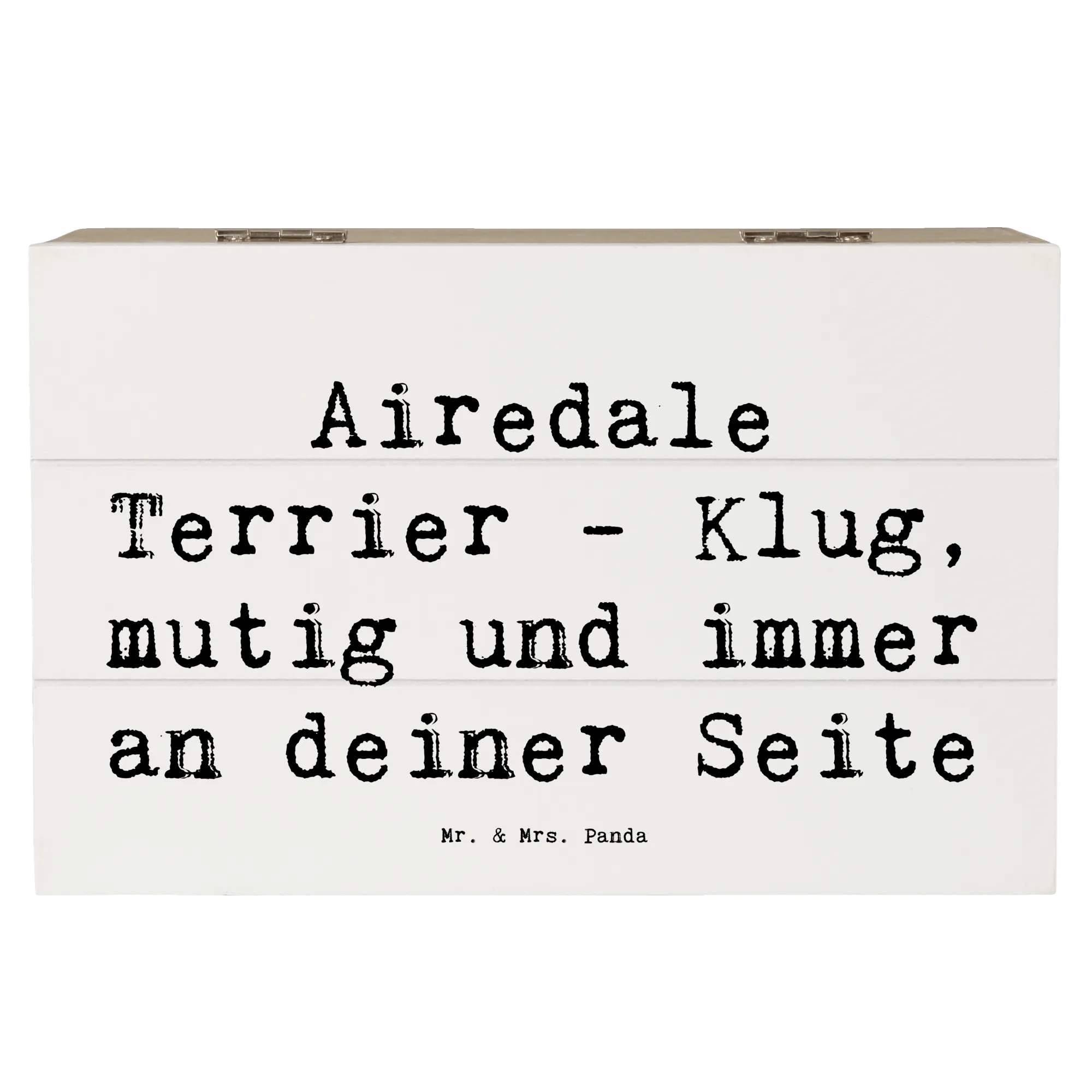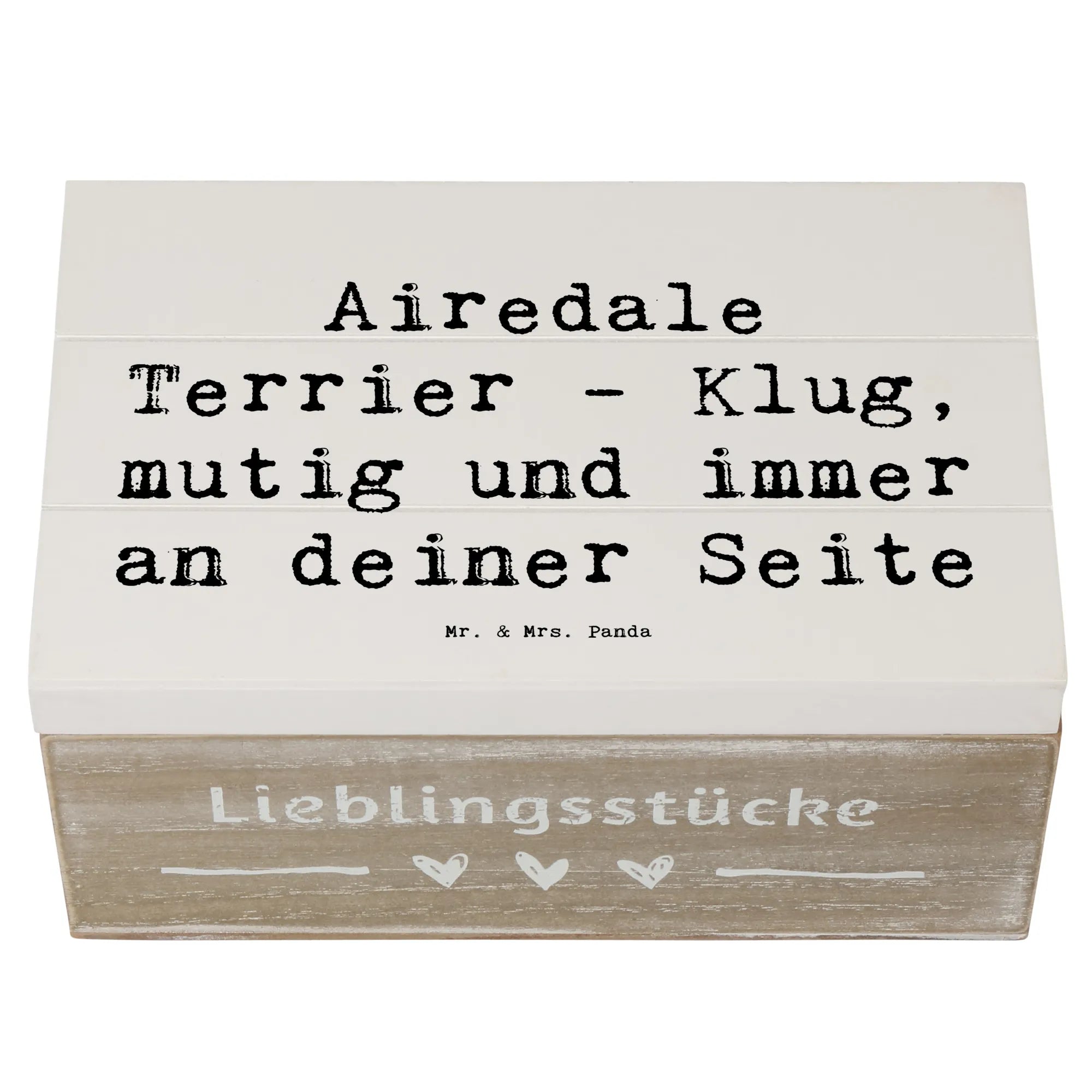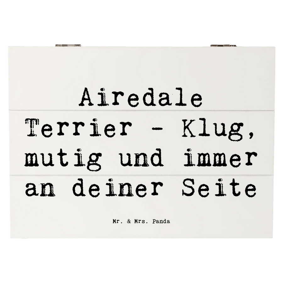 Die wunderschöne Holzkiste mit dem Motiv des Airedale Terriers von Mr. & Mrs. Panda ist der perfekte Begleiter für alle Hundefans! Diese sorgfältig gestaltete Erinnerungskiste aus robuster Holzfaser bietet ausreichend Platz für all deine wertvollen Erinnerungen und Schätze.