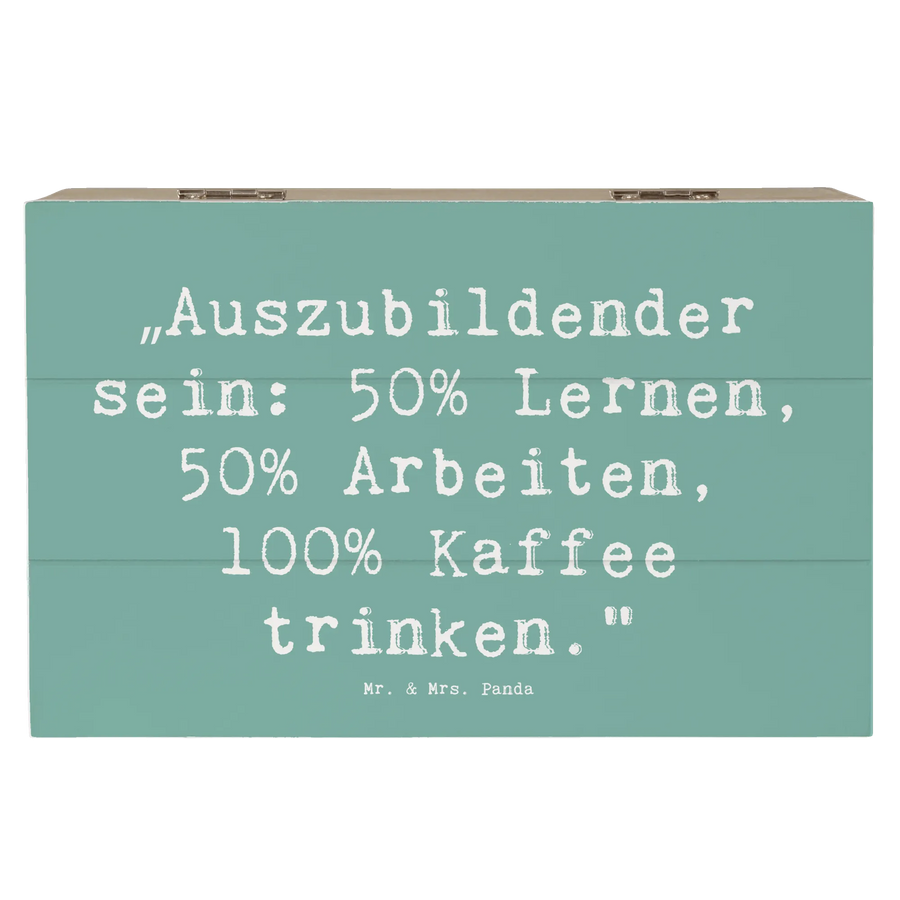 Die wunderschöne Holzkiste von Mr. & Mrs. Panda ist der perfekte Begleiter für jeden Auszubildenden! Diese dekorative Kiste ist nicht nur stilvoll, sondern auch unheimlich praktisch. Mit dem spritzigen Spruch „Auszubildender sein: 50% Lernen, 50% Arbeiten, 100% Kaffee trinken.“ bringt sie jeden Auszubildenden zum Schmunzeln. Wenn Du nach einem besonderen Geschenk suchst, das all die kleinen Schätze und Erinnerungen aufbewahren kann, dann ist diese XXL Erinnerungsbox die ideale Wahl.