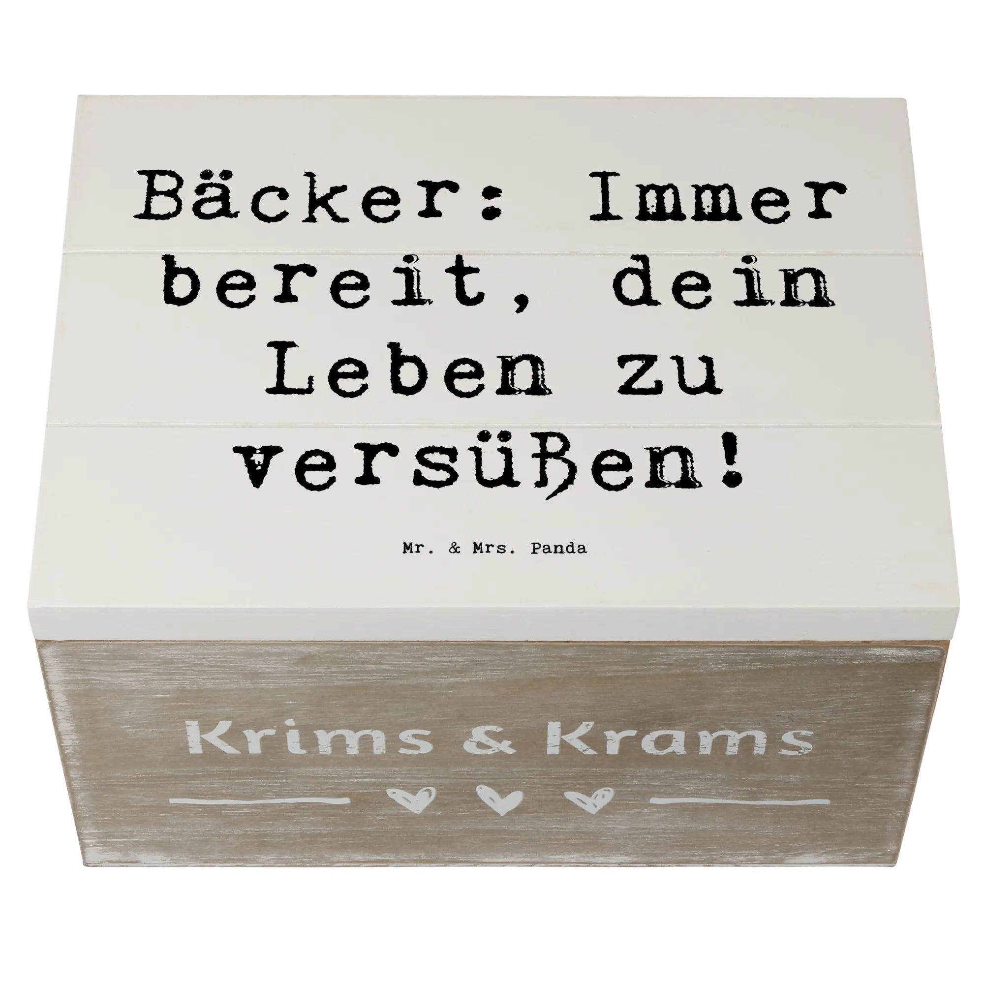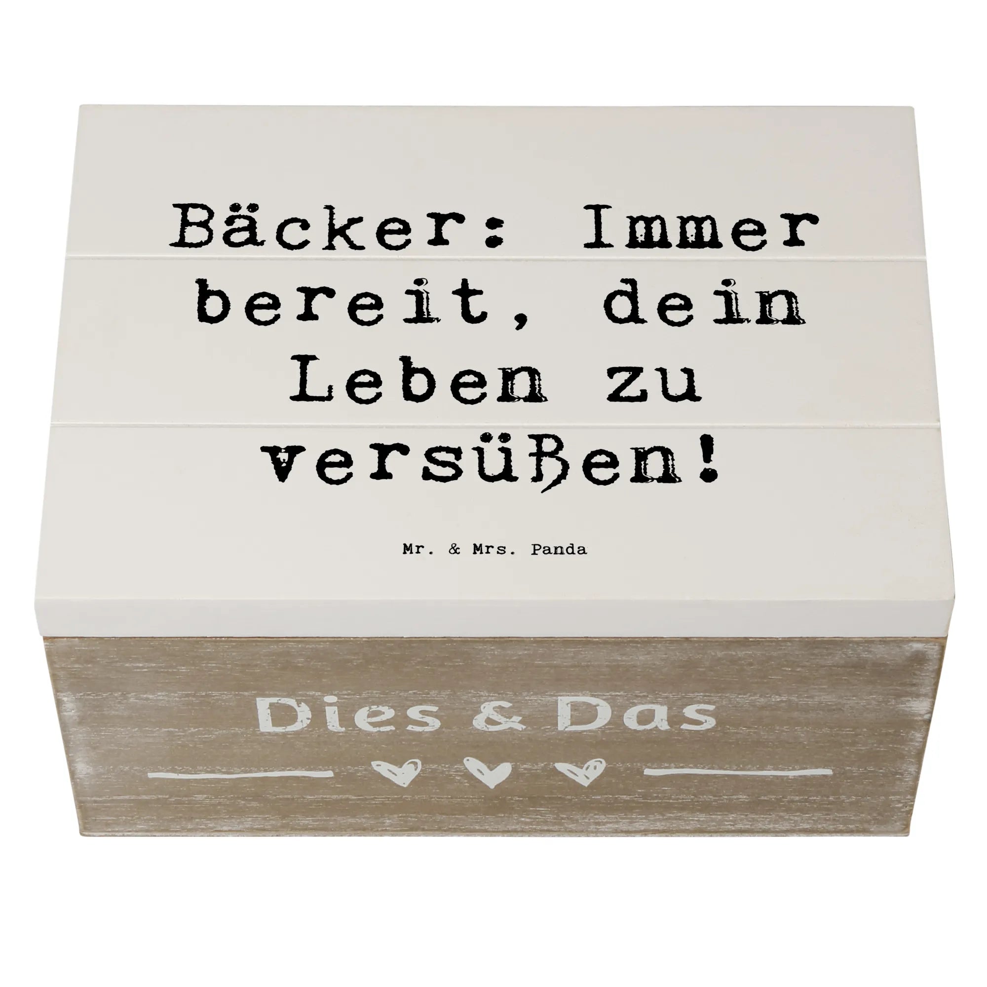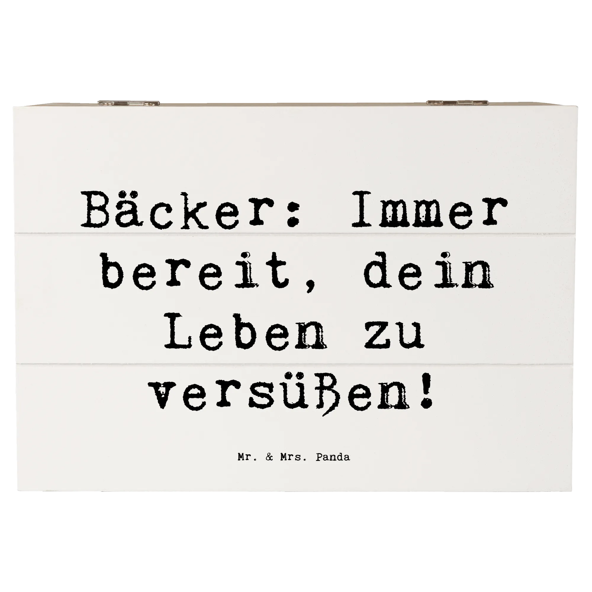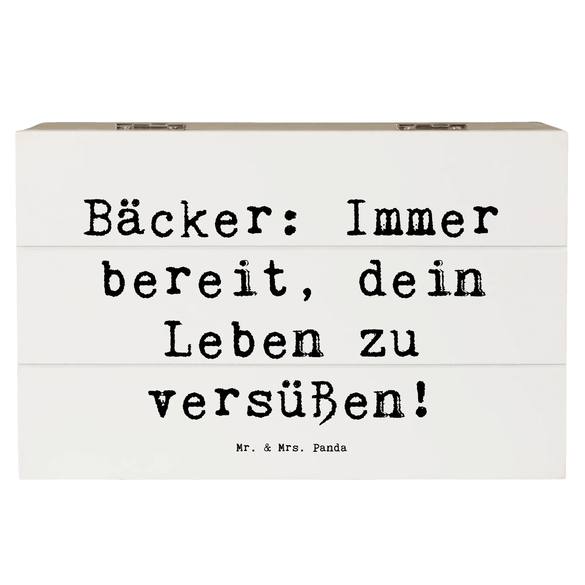 Holzkiste Spruch Bäcker: Immer bereit, dein Leben zu versüßen! - 22 x 15 cm - Weiß