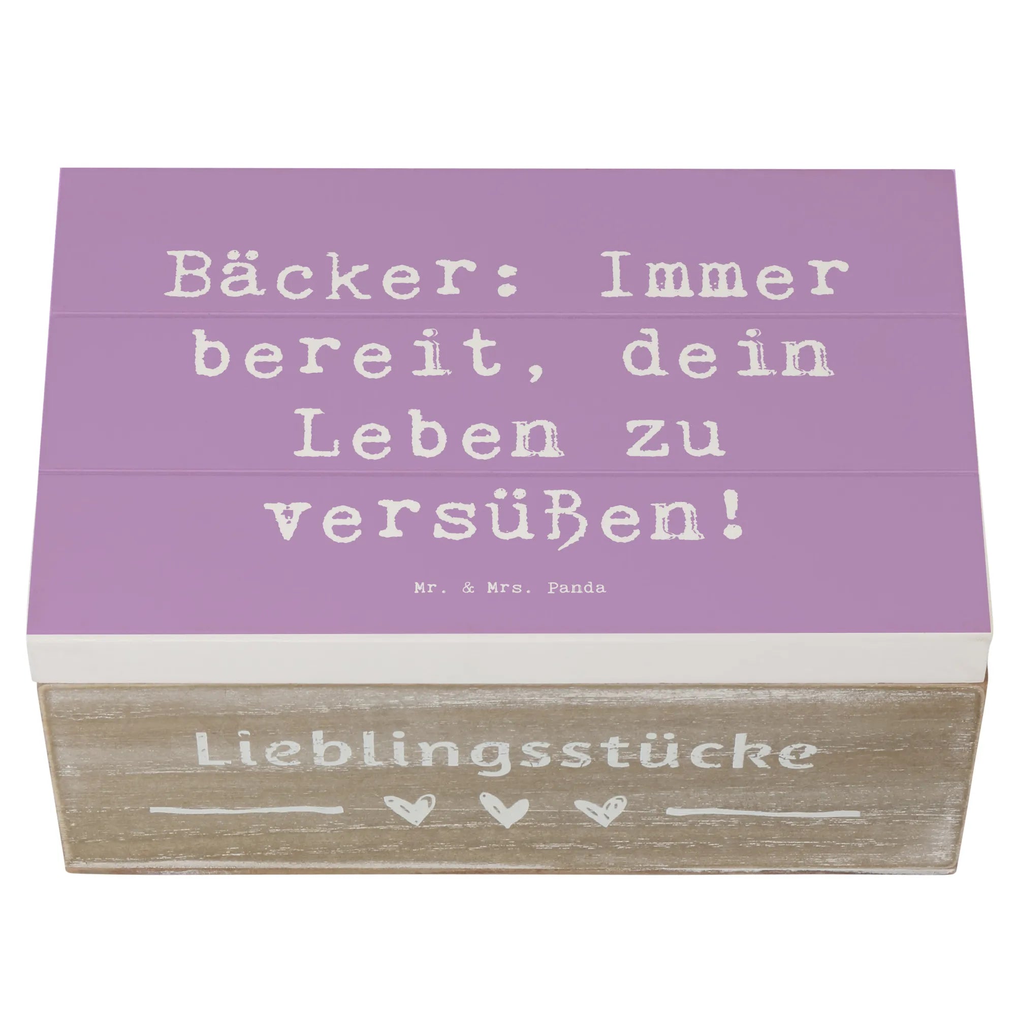 Unsere liebevoll gestaltete Holzkiste aus der Berufe-Kollektion von Mr. & Mrs. Panda ist mehr als nur eine Kiste: Sie ist eine dekorative Truhe, eine praktische Aufbewahrungsbox und eine liebevolle Erinnerungskiste zugleich. Mit dem charmanten Spruch „Bäcker: Immer bereit, dein Leben zu versüßen!“ ist diese Schatulle das ideale Geschenk für Bäcker, Hobbybäcker oder einfach für Menschen, die das Backen lieben.