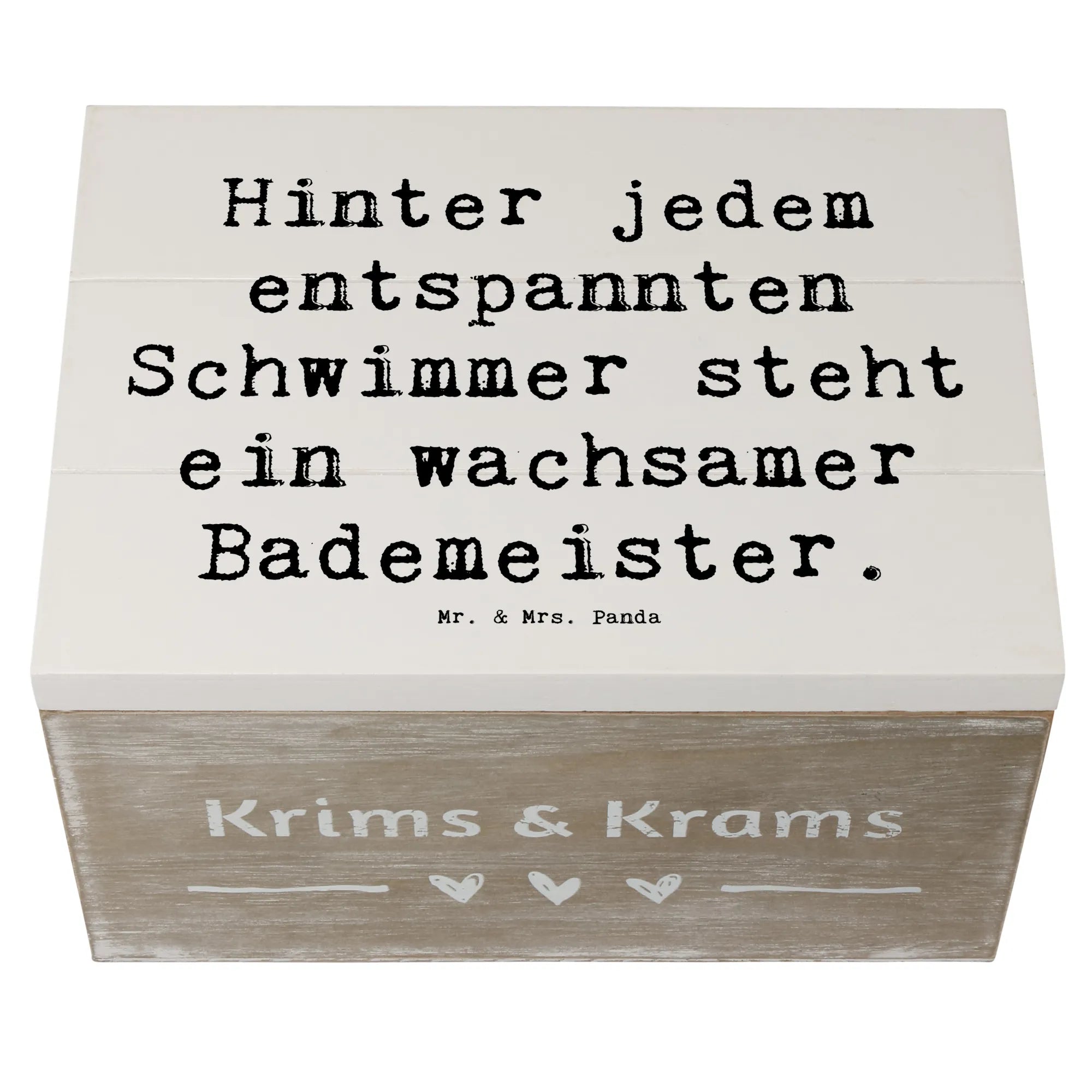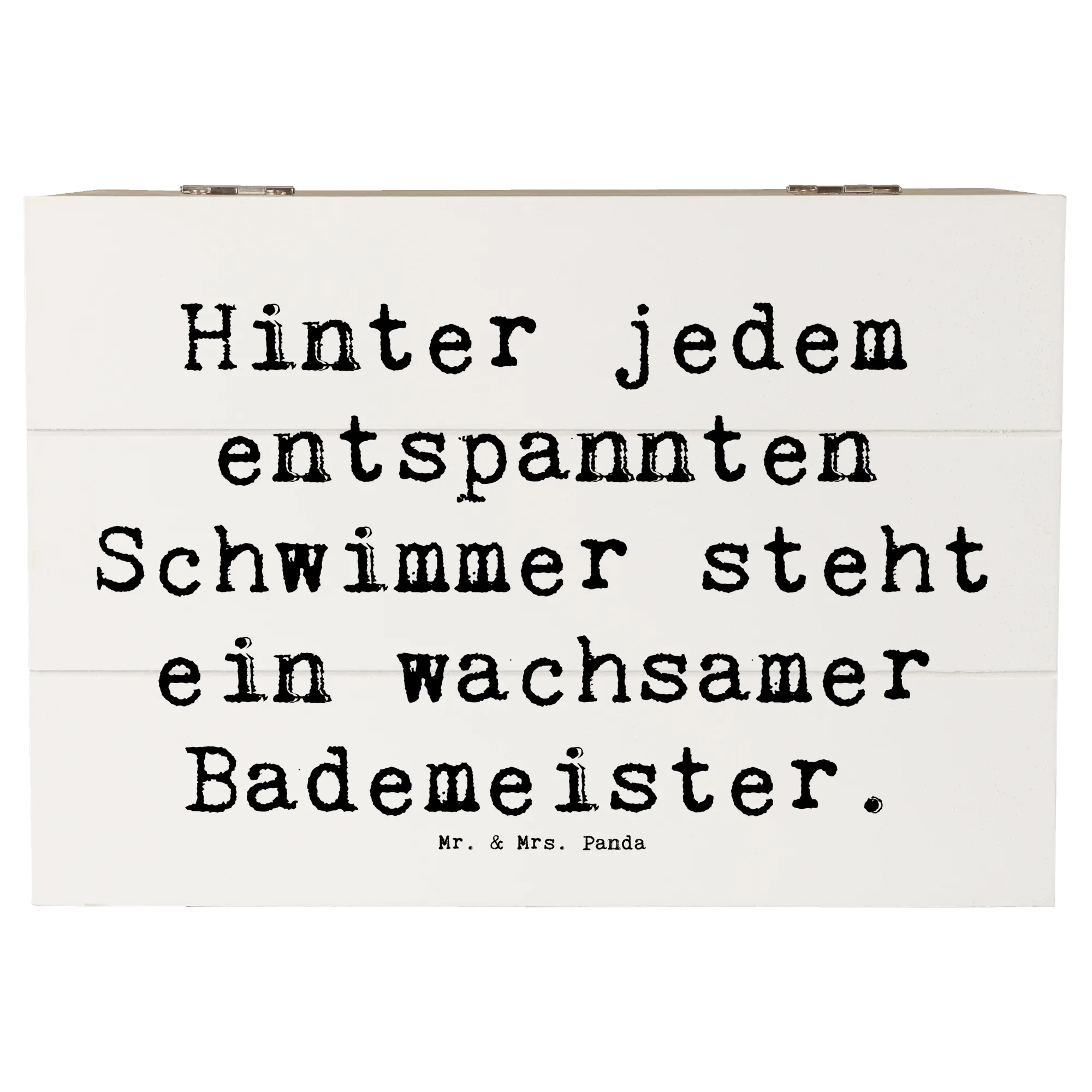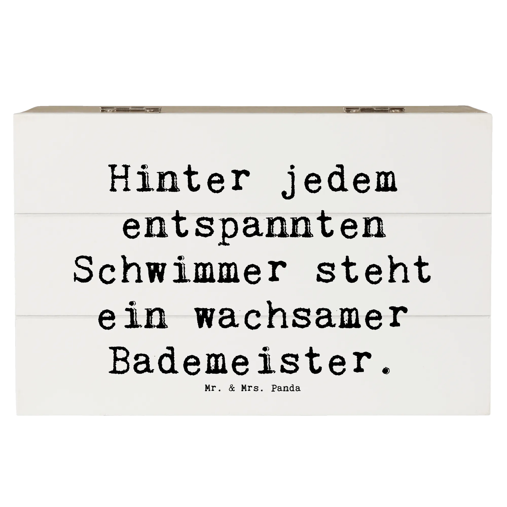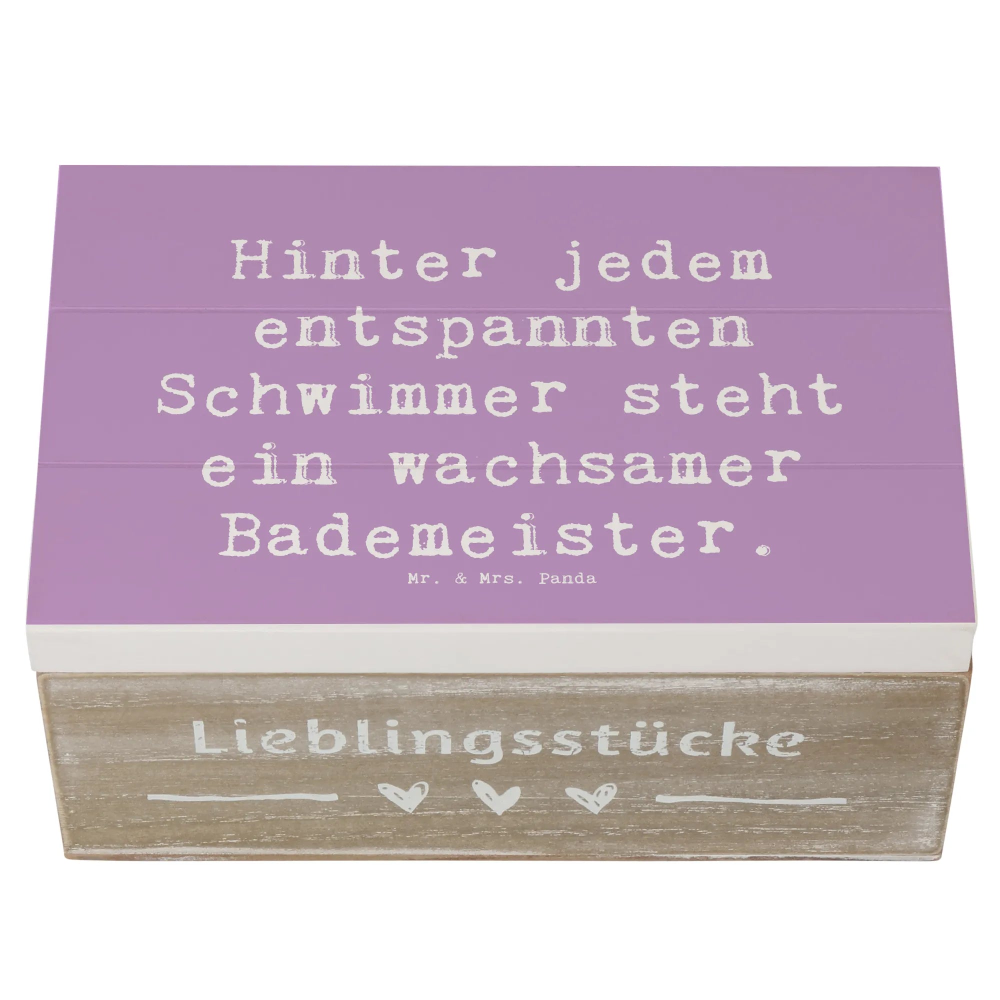 Entdecke unsere bezaubernde Holzkiste mit dem einzigartigen Motiv des Bademeisters aus der Berufe-Kollektion von Mr. & Mrs. Panda!
