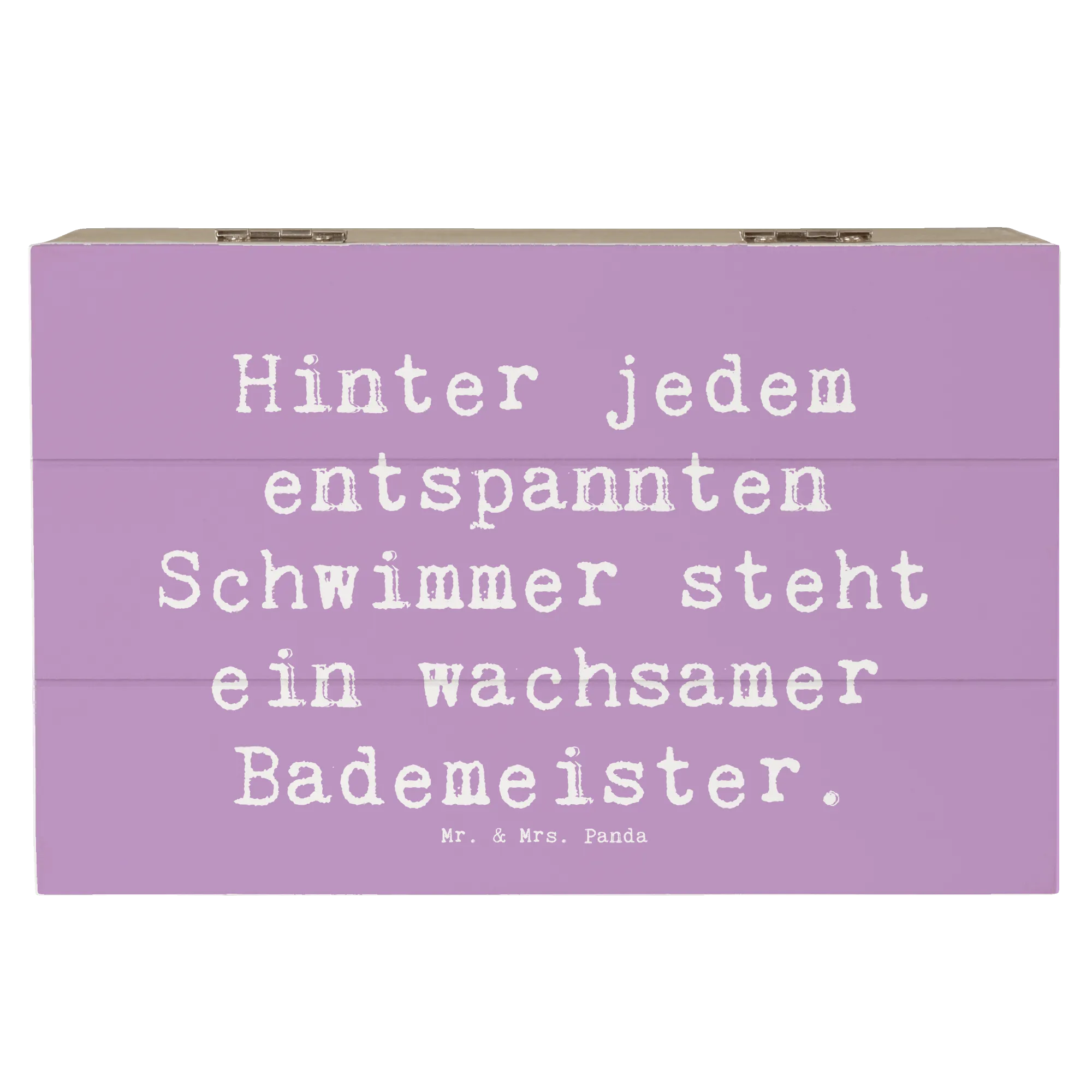 Die wunderschöne Holzkiste Bademeister von Mr. & Mrs. Panda ist der perfekte Begleiter für alle Schwimmer und Liebhaber des Wassersports! Sie ist nicht nur eine praktische Aufbewahrungsbox für all deine Erinnerungen, sondern auch ein liebevolles Geschenk für deine Freunde, die sich im Wasser wohlfühlen. Mit dem lustigen Spruch "Hinter jedem entspannten Schwimmer steht ein wachsamer Bademeister" bringt diese Kiste ein Lächeln in jedes Gesicht und erinnert dich an die schönen Momente am Wasser. Egal, ob du sie zur Kommunion, für einen Geburtstag oder einfach nur als kleine Aufmerksamkeit verschenken möchtest – diese XXL Kiste ist der absolute Hit!