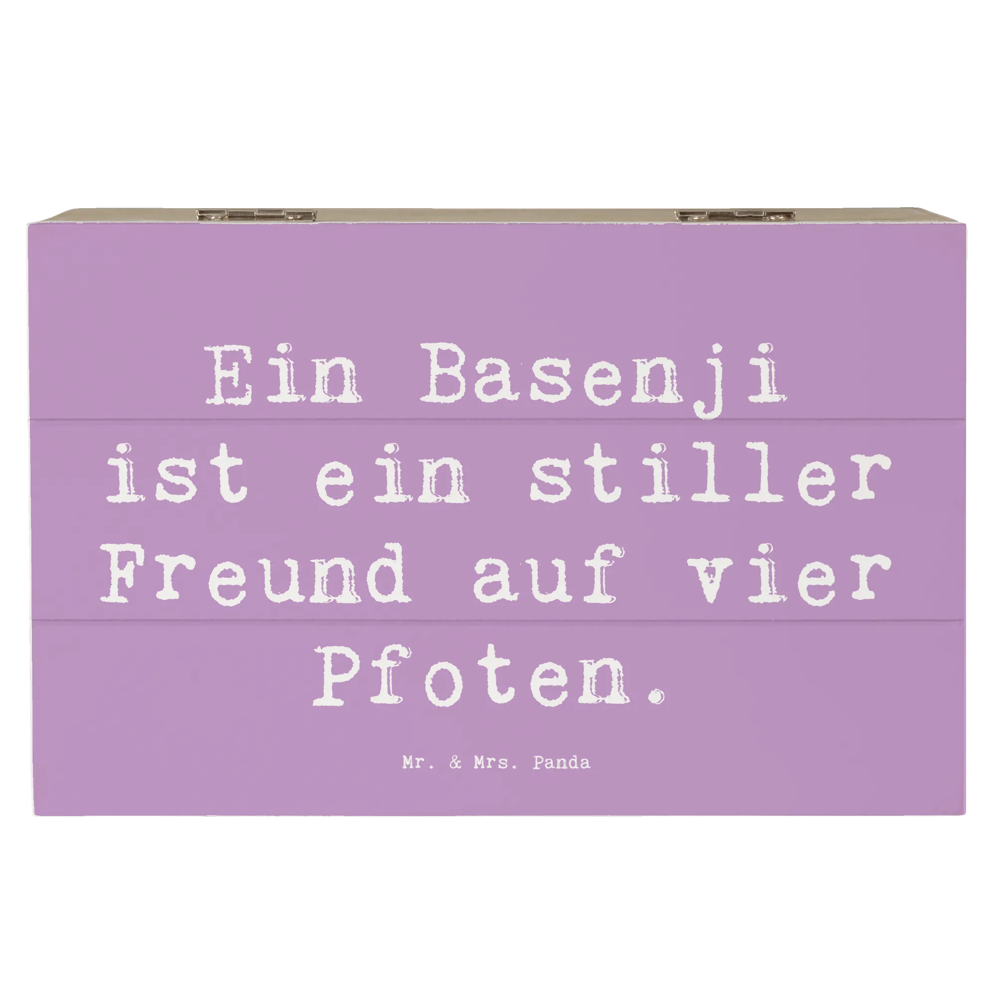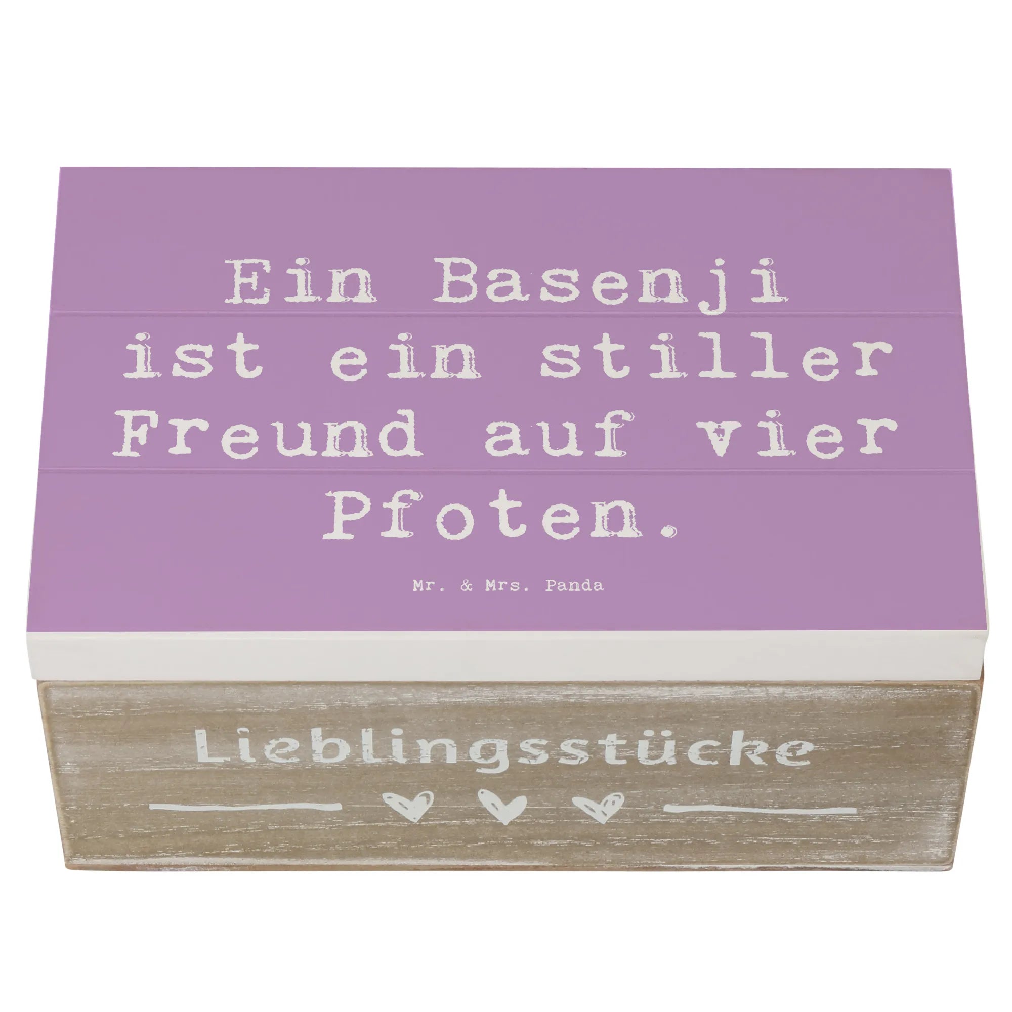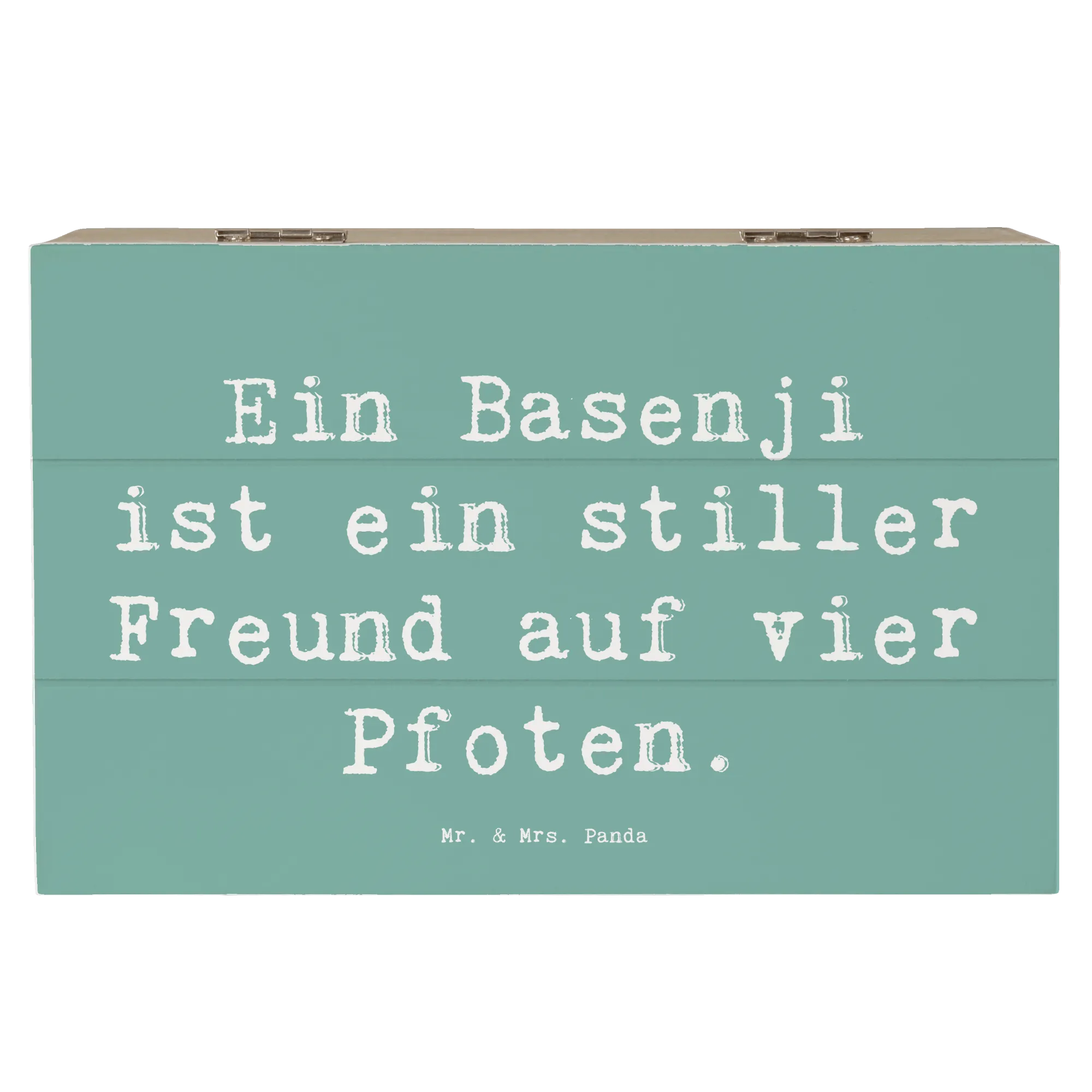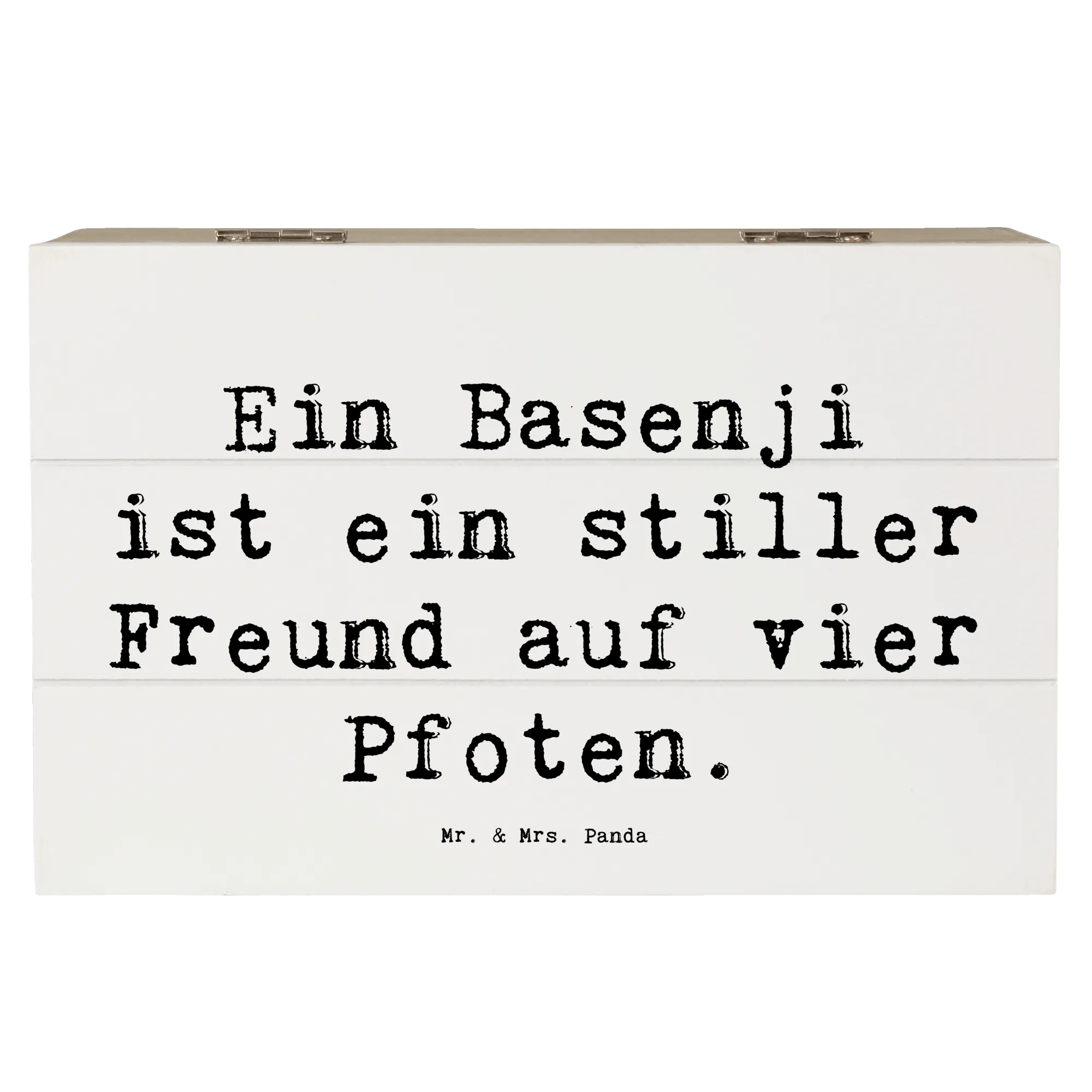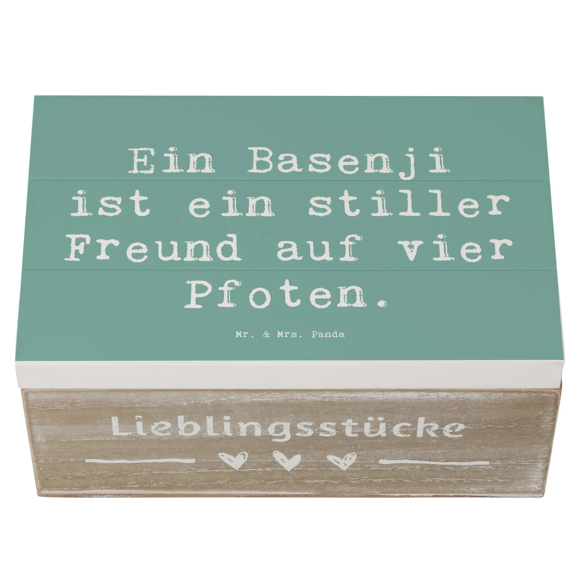 Der niedliche Spruch 'Ein Basenji ist ein stiller Freund auf vier Pfoten.' rundet das Design perfekt ab und macht die Kiste zu einem ganz besonderen Highlight für jeden Hundefan. Ein ideales Geschenk zu jedem Anlass, sei es Geburtstag, Weihnachten oder einfach als nette Überraschung zwischendurch.