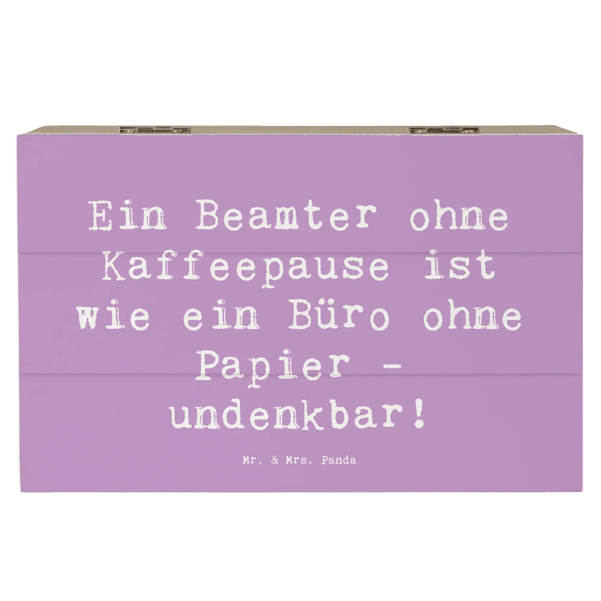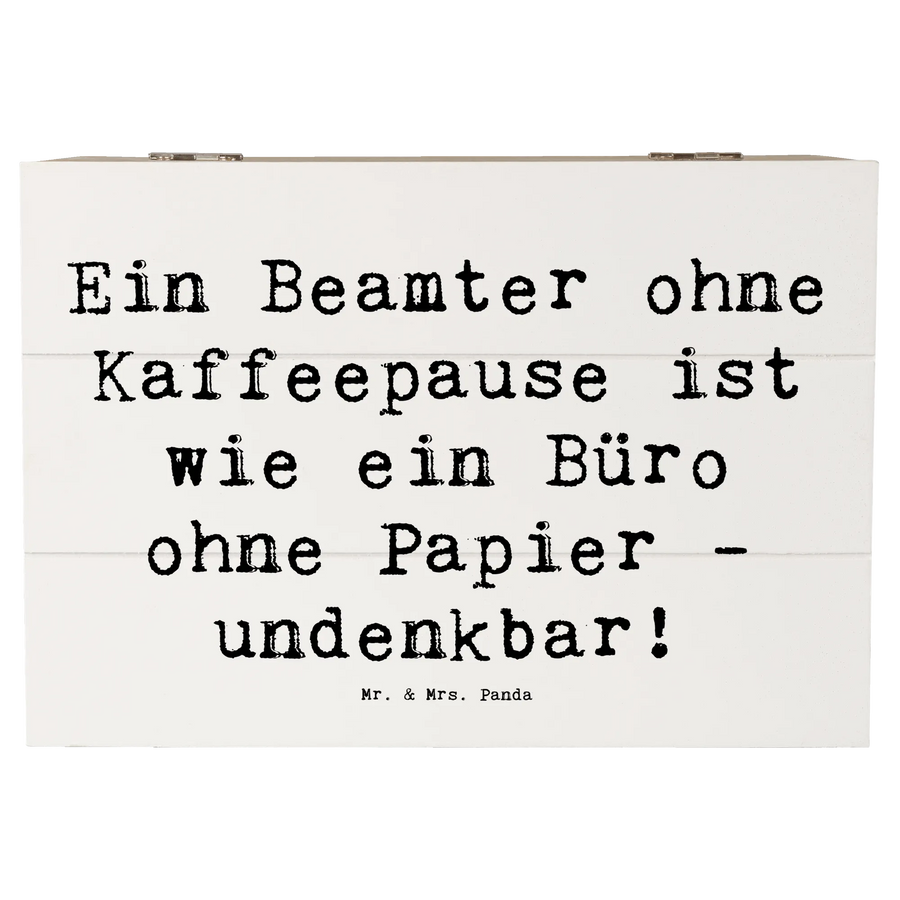 Die Holzkiste Beamter von Mr. & Mrs. Panda ist das perfekte Geschenk für jeden, der im Büro arbeitet oder einfach die kleinen Freuden des Lebens schätzt. Diese wunderschöne Holzkiste ist nicht nur ein dekoratives Element, sondern auch ein wahrer Alleskönner in der Aufbewahrung. Mit ihrem charmanten Spruch: "Ein Beamter ohne Kaffeepause ist wie ein Büro ohne Papier - undenkbar!" bringt sie zum Schmunzeln und verbreitet eine freundliche Atmosphäre bei jedem Anblick.