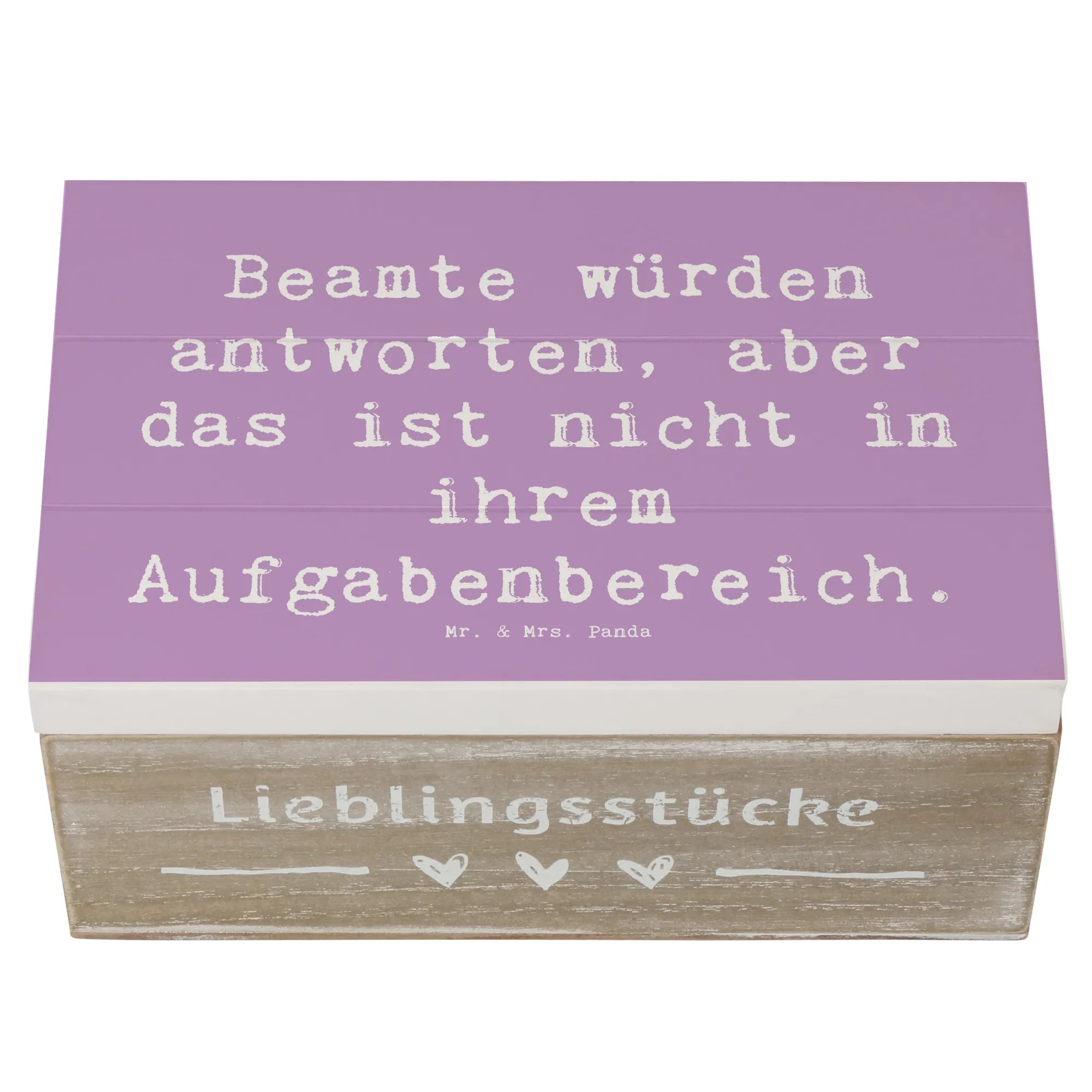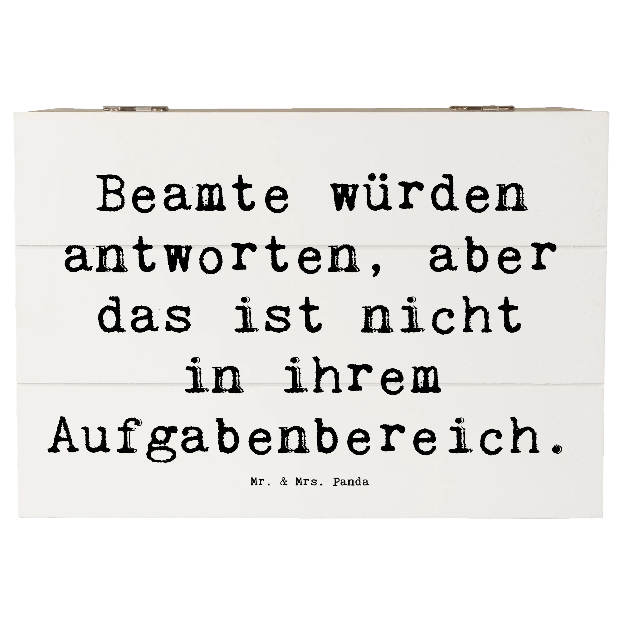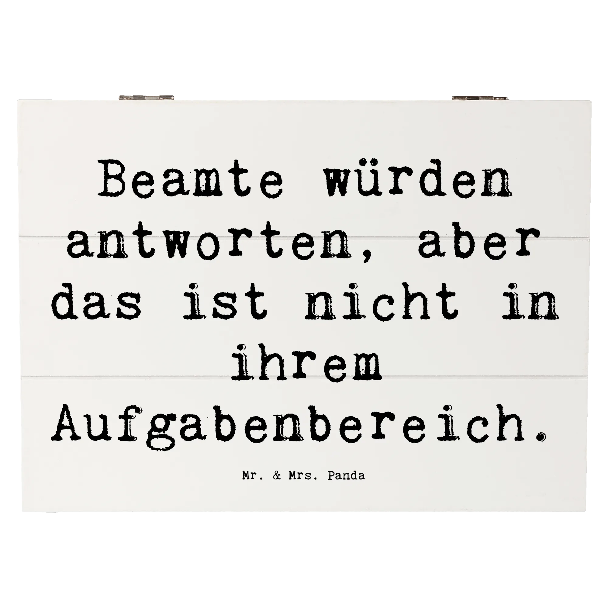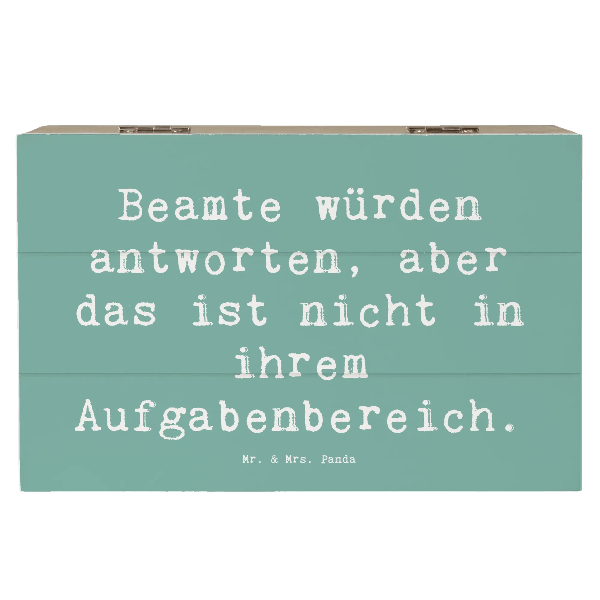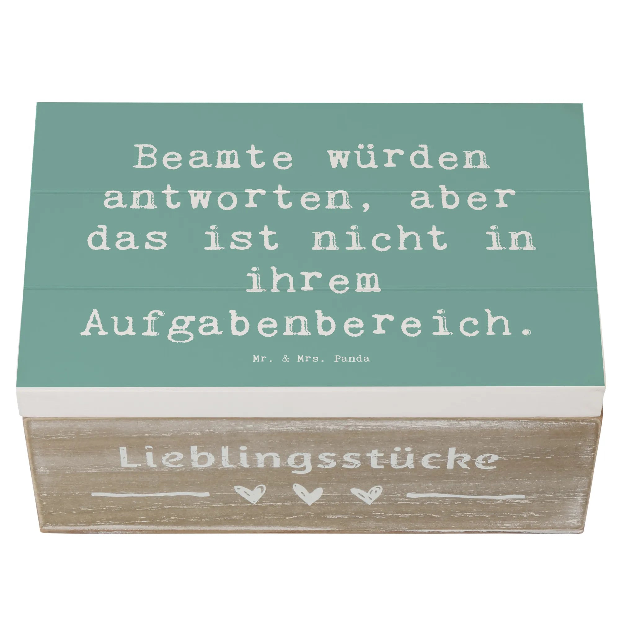Die bezaubernde Holzkiste von Mr. & Mrs. Panda ist das perfekte Geschenk für alle Beamtinnen! Mit einem liebevoll gestalteten Motiv und dem witzigen Spruch 'Beamte würden antworten, aber das ist nicht in ihrem Aufgabenbereich.' wird jede Beamtin begeistert sein.