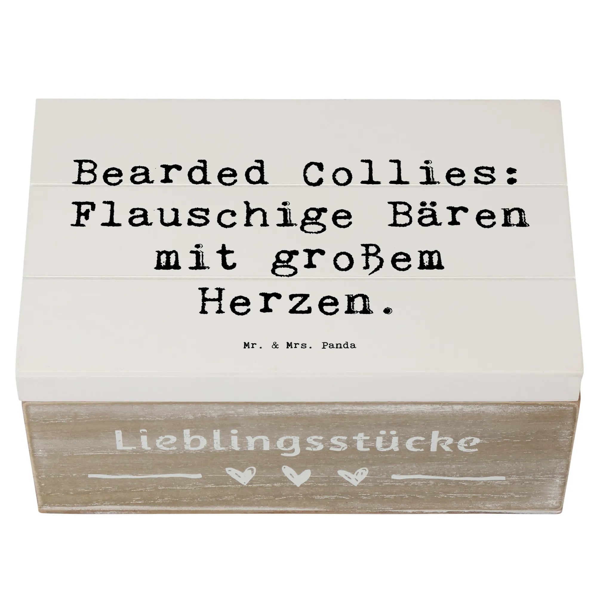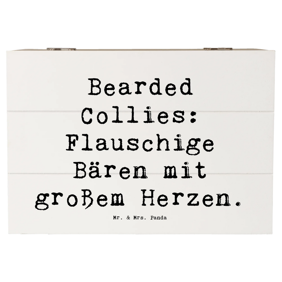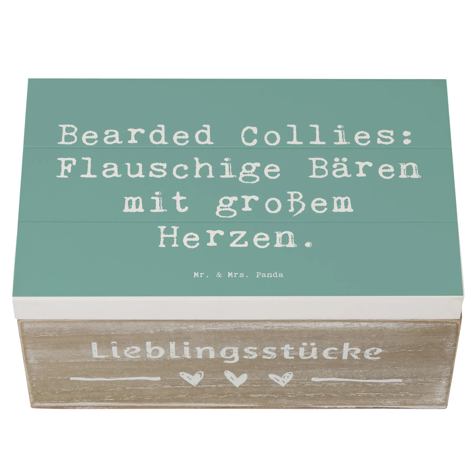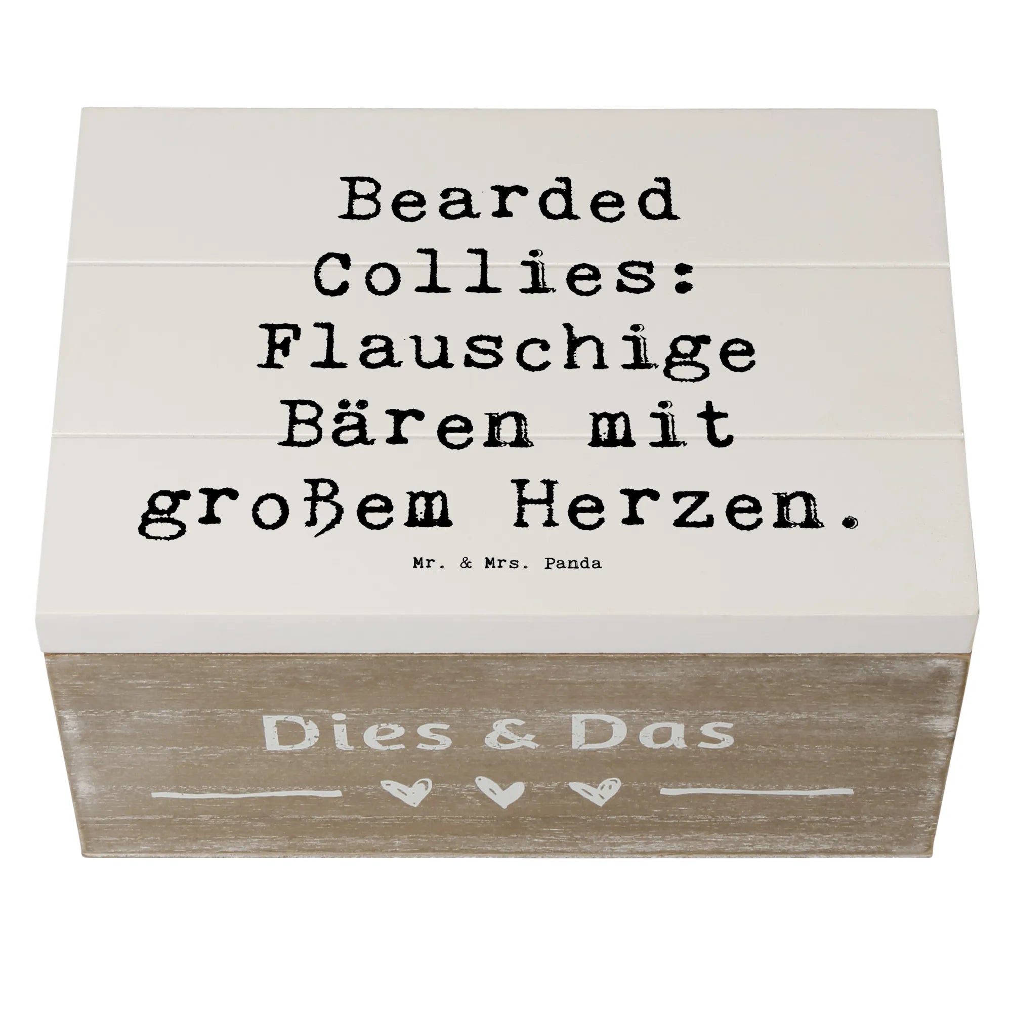 Die Holzkiste von Mr. & Mrs. Panda ist mehr als nur eine gewöhnliche Kiste – sie ist ein Ort, an dem Erinnerungen aufbewahrt werden! Mit einem bezaubernden Motiv des Bearded Collie und einem liebevollen Spruch "Bearded Collies: Flauschige Bären mit großem Herzen." ist diese Sammlung ein Traum für jeden Hundeliebhaber.