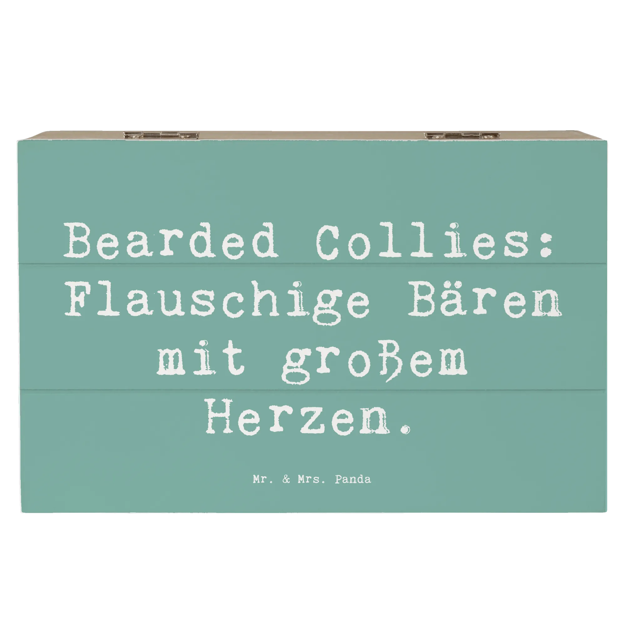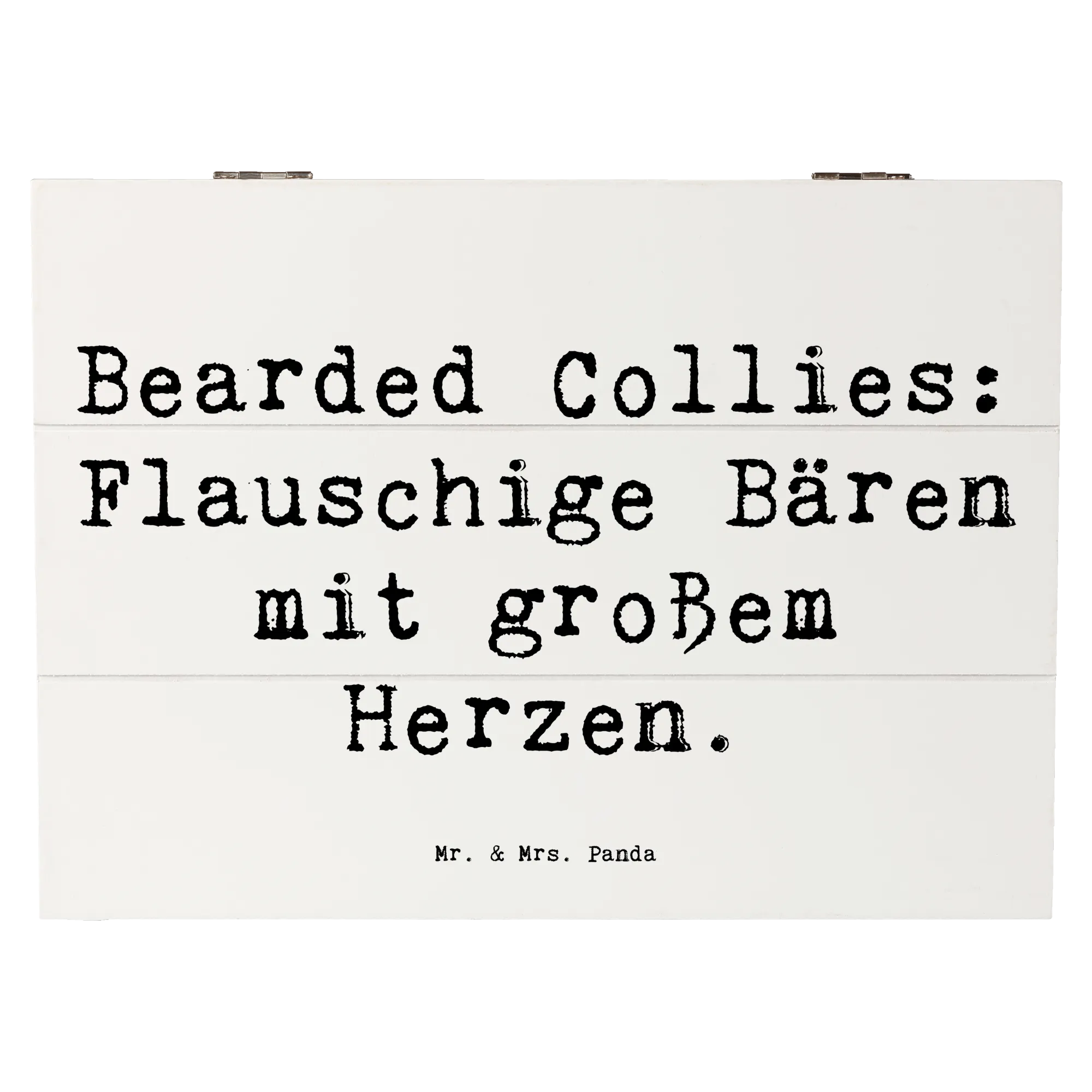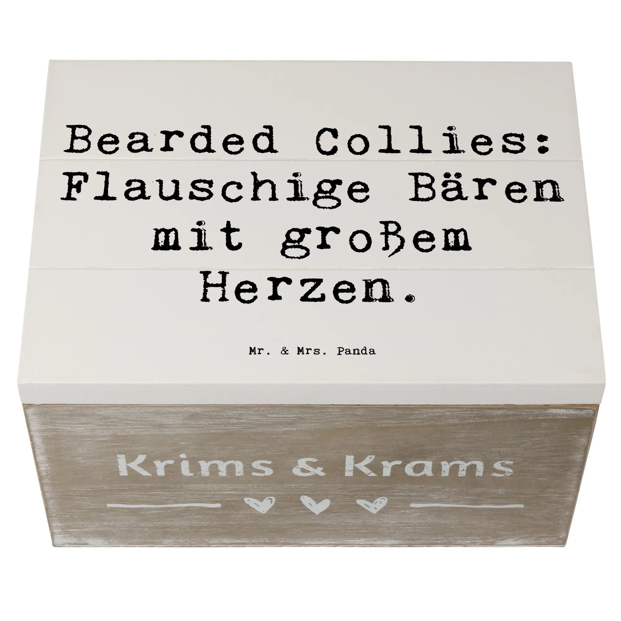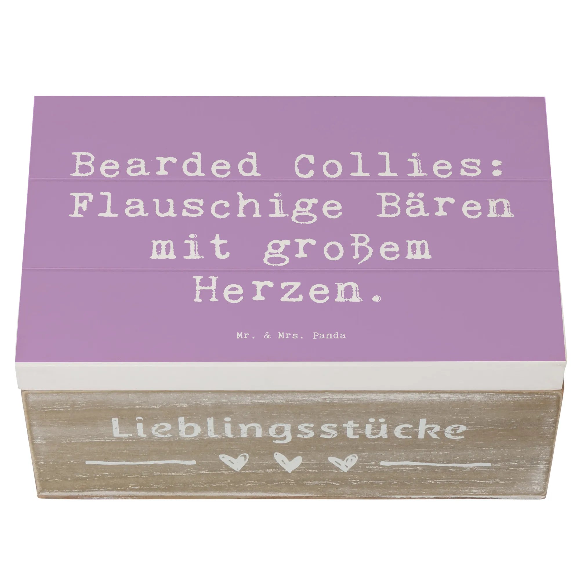 Die Holzkiste von Mr. & Mrs. Panda ist mehr als nur eine gewöhnliche Kiste – sie ist ein Ort, an dem Erinnerungen aufbewahrt werden! Mit einem bezaubernden Motiv des Bearded Collie und einem liebevollen Spruch "Bearded Collies: Flauschige Bären mit großem Herzen." ist diese Sammlung ein Traum für jeden Hundeliebhaber.
