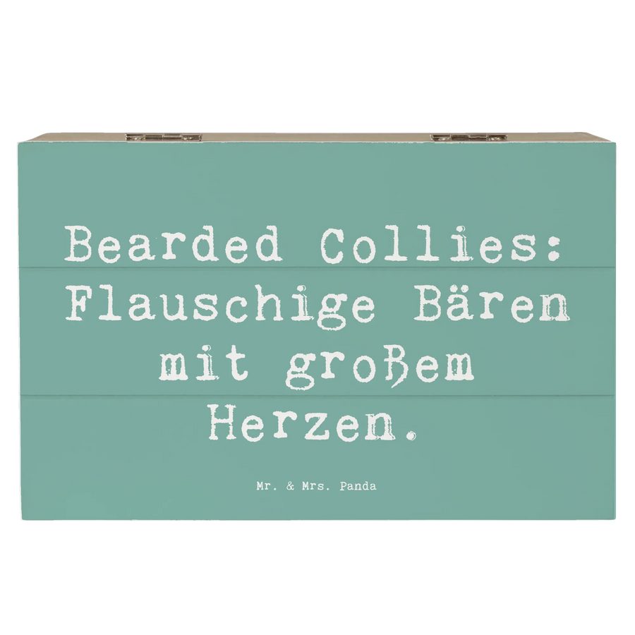 Die Holzkiste von Mr. & Mrs. Panda ist mehr als nur eine gewöhnliche Kiste – sie ist ein Ort, an dem Erinnerungen aufbewahrt werden! Mit einem bezaubernden Motiv des Bearded Collie und einem liebevollen Spruch "Bearded Collies: Flauschige Bären mit großem Herzen." ist diese Sammlung ein Traum für jeden Hundeliebhaber.