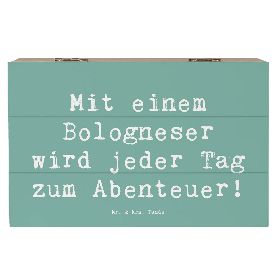 Holzkiste Spruch Bologneser Abenteuer - 19 x 12 cm - Meeresbrise