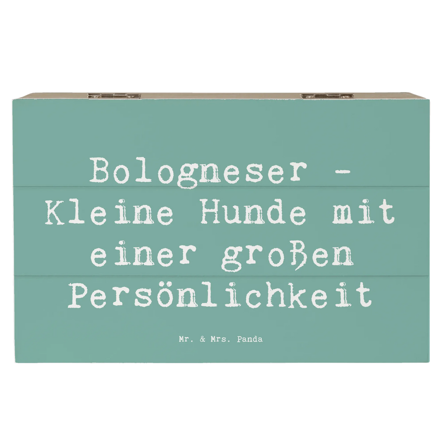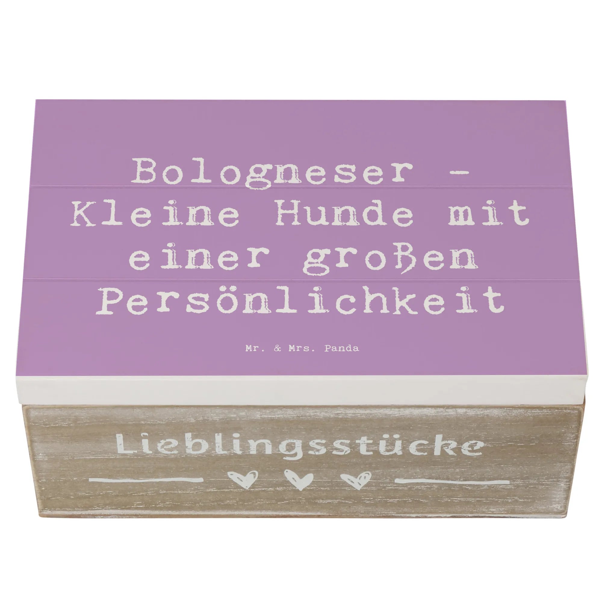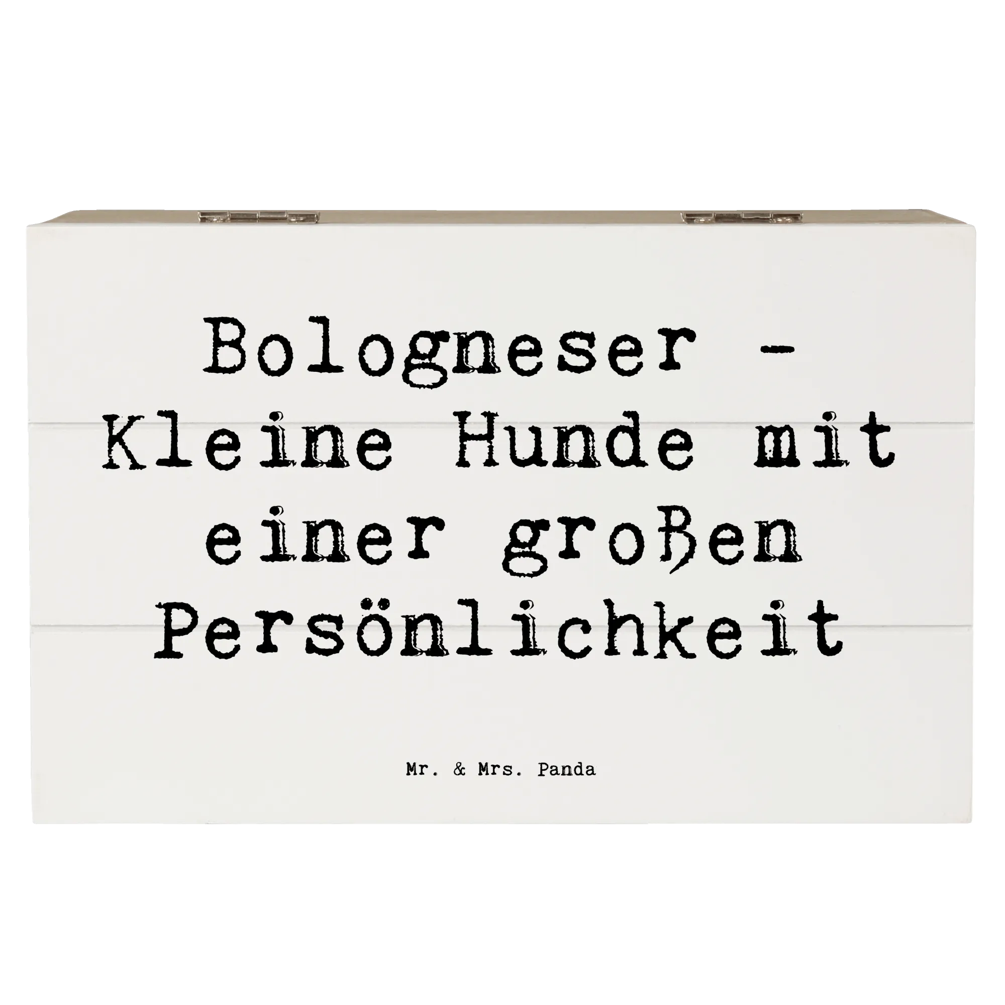 Die wunderschöne Holzkiste von Mr. & Mrs. Panda mit dem zauberhaften Motiv "Bologneser - Kleine Hunde mit einer großen Persönlichkeit" ist das perfekte Geschenk für alle Hundefans und bietet eine liebevolle Möglichkeit, Erinnerungen zu bewahren.
