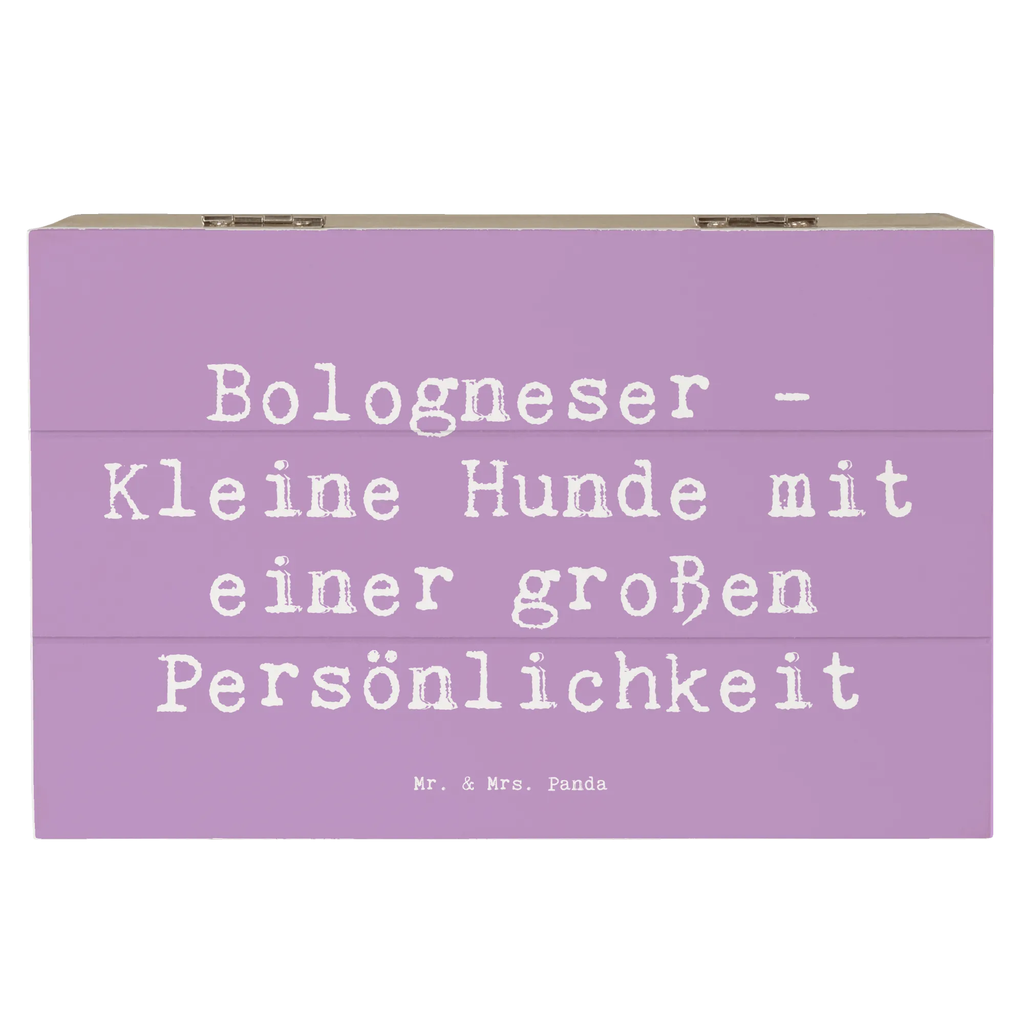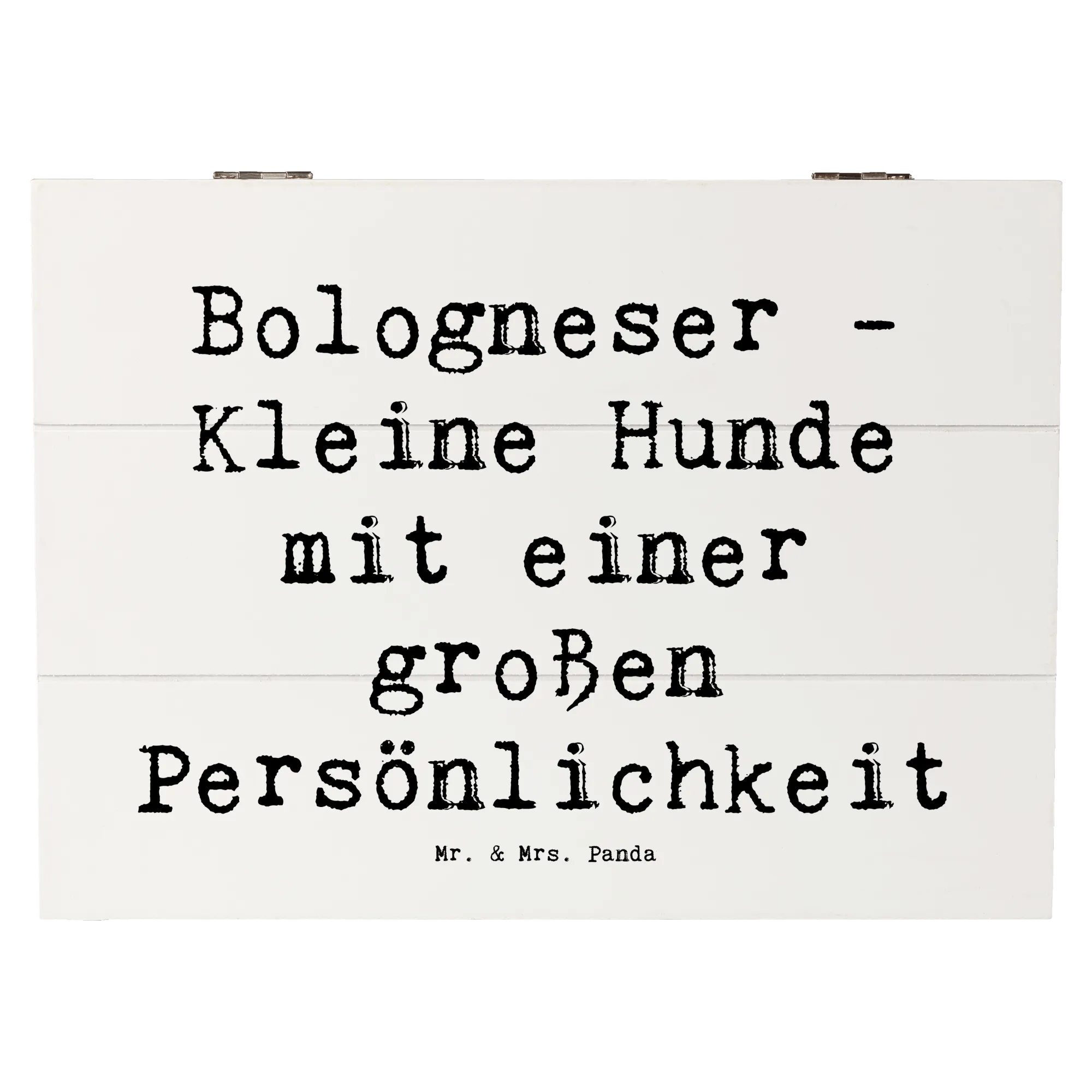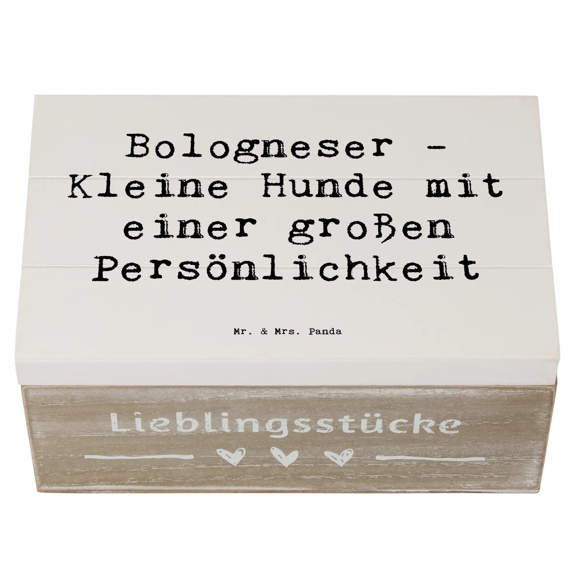 Die wunderschöne Holzkiste von Mr. & Mrs. Panda mit dem zauberhaften Motiv "Bologneser - Kleine Hunde mit einer großen Persönlichkeit" ist das perfekte Geschenk für alle Hundefans und bietet eine liebevolle Möglichkeit, Erinnerungen zu bewahren.