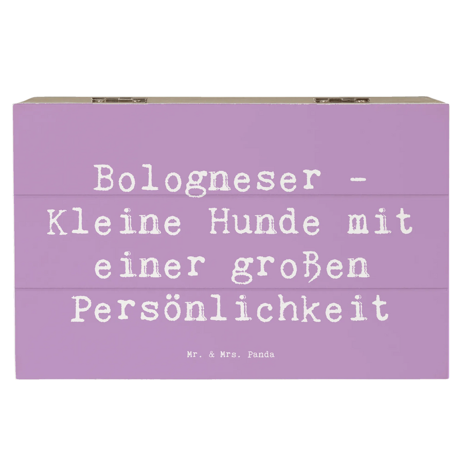 Die wunderschöne Holzkiste von Mr. & Mrs. Panda mit dem zauberhaften Motiv "Bologneser - Kleine Hunde mit einer großen Persönlichkeit" ist das perfekte Geschenk für alle Hundefans und bietet eine liebevolle Möglichkeit, Erinnerungen zu bewahren.