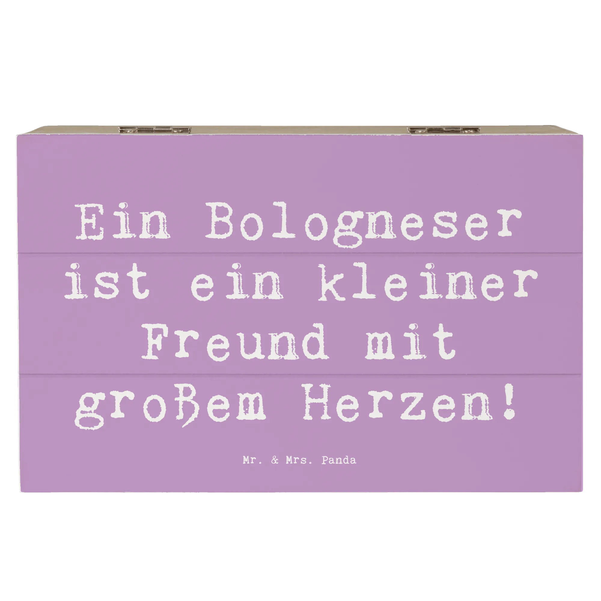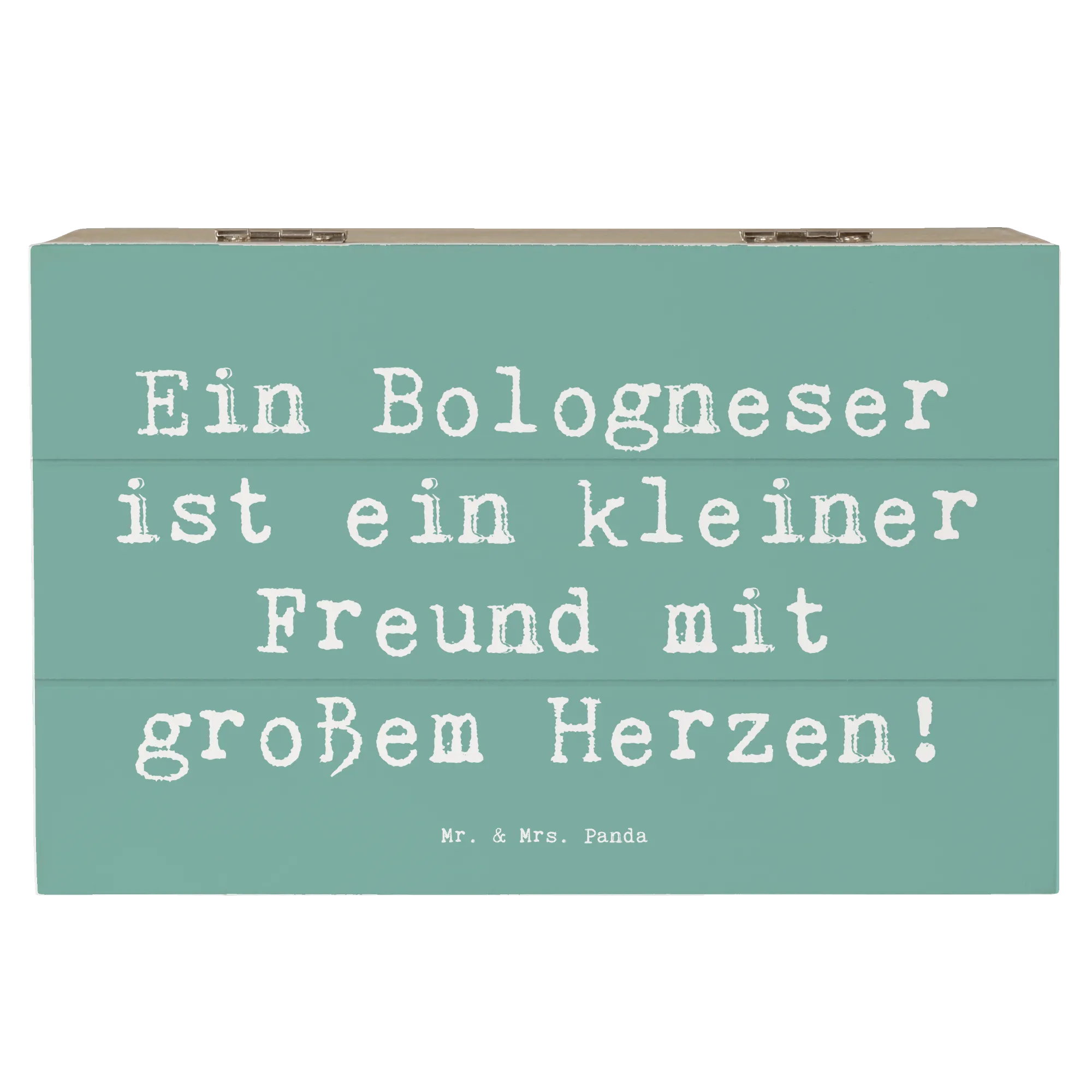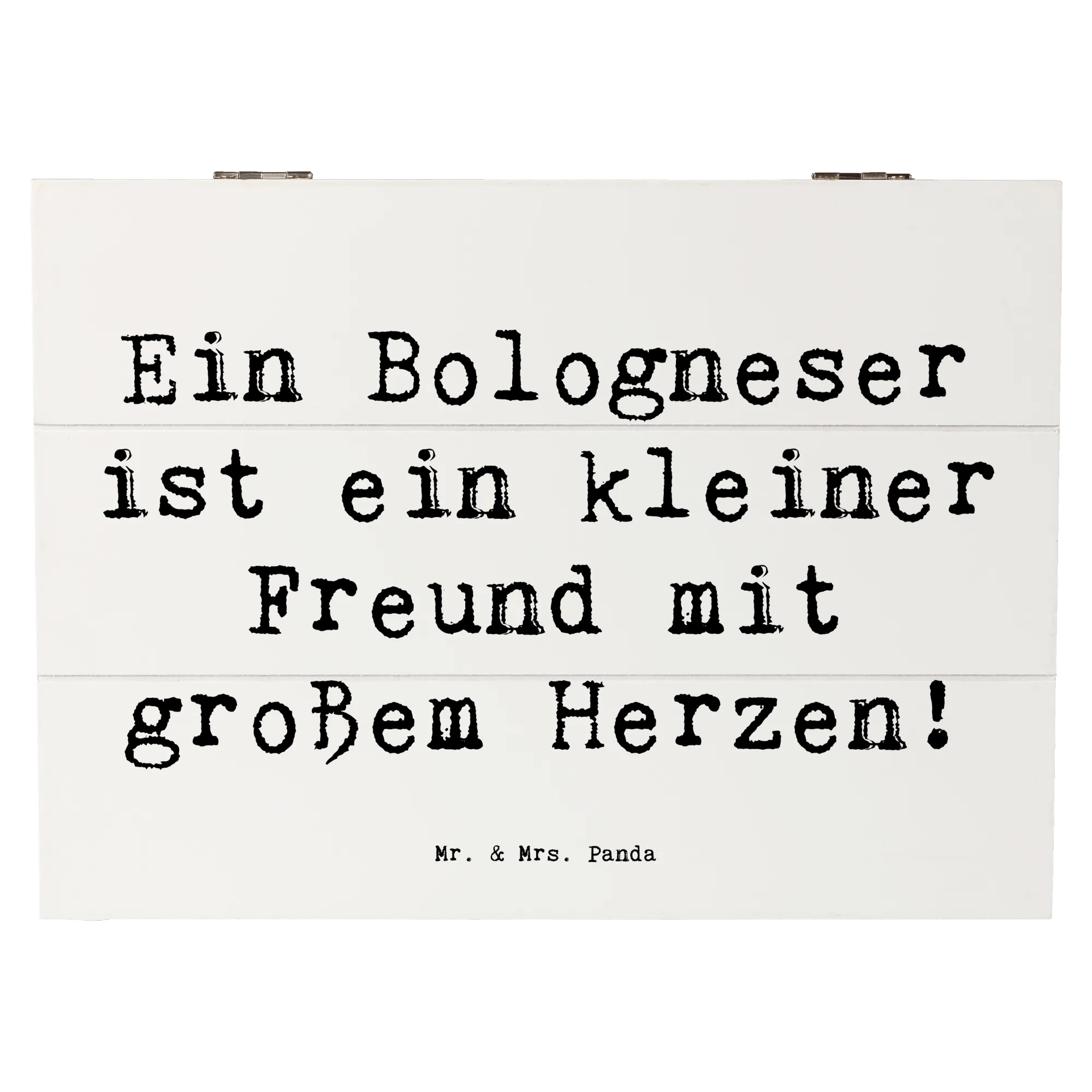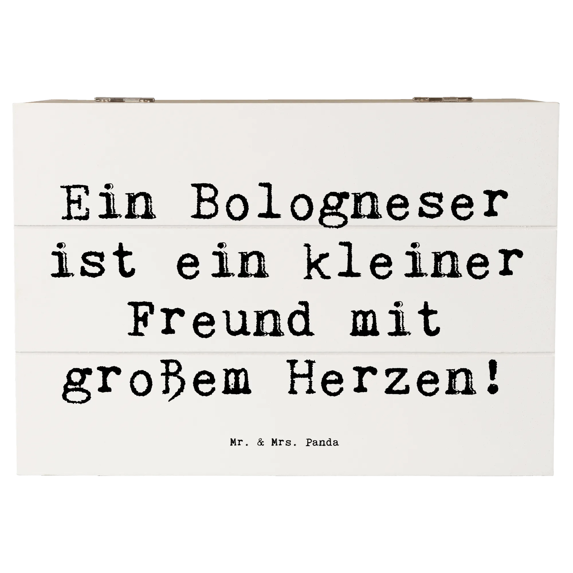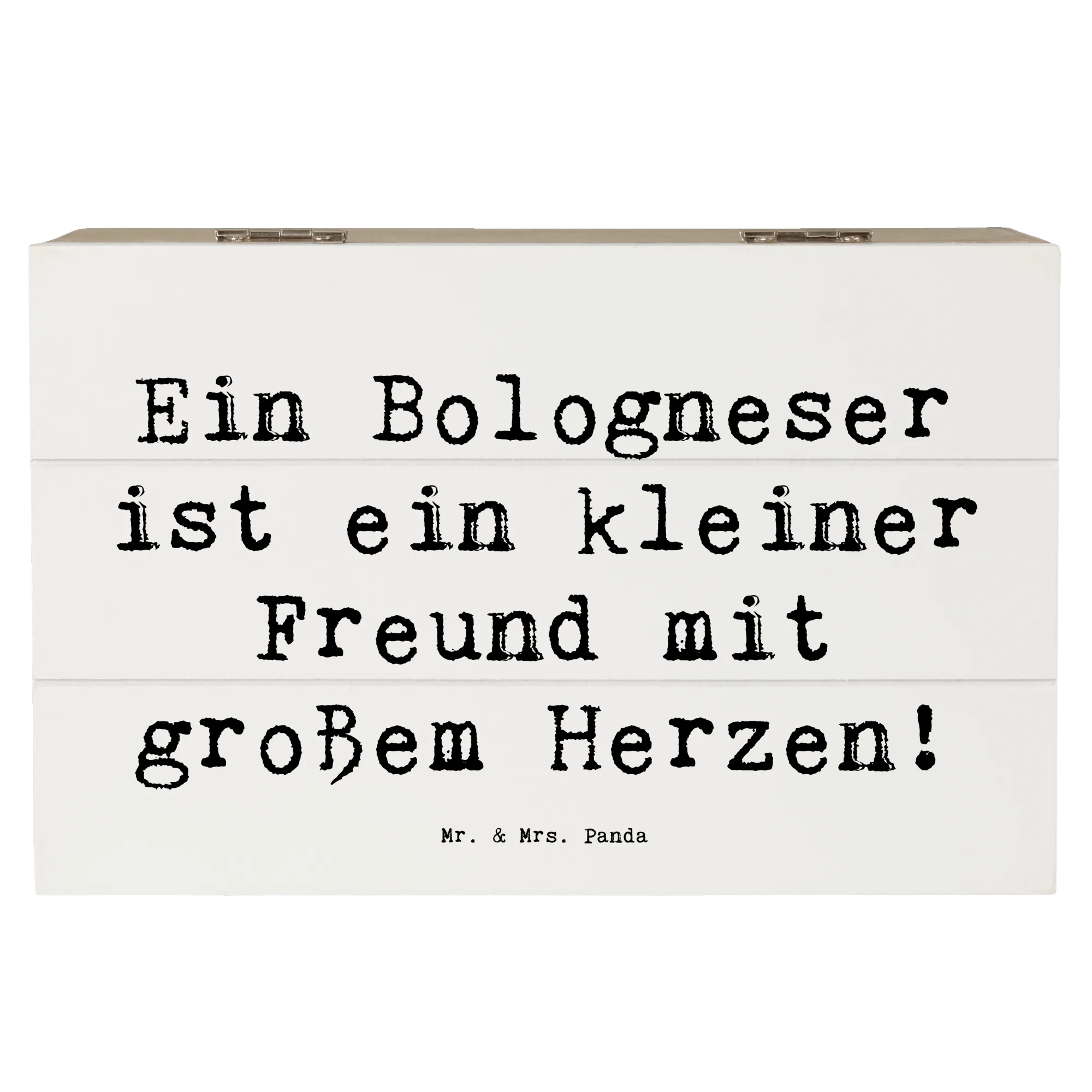 Verschenke eine Portion Liebe und Freude mit der Holzkiste von Mr. & Mrs. Panda, die durch den Spruch 'Ein Bologneser ist ein kleiner Freund mit großem Herzen!' zu einem absoluten Hingucker wird. Egal ob zum Geburtstag, zu Weihnachten oder einfach als Zeichen der Freundschaft – diese Kiste zaubert jedem ein Lächeln ins Gesicht!