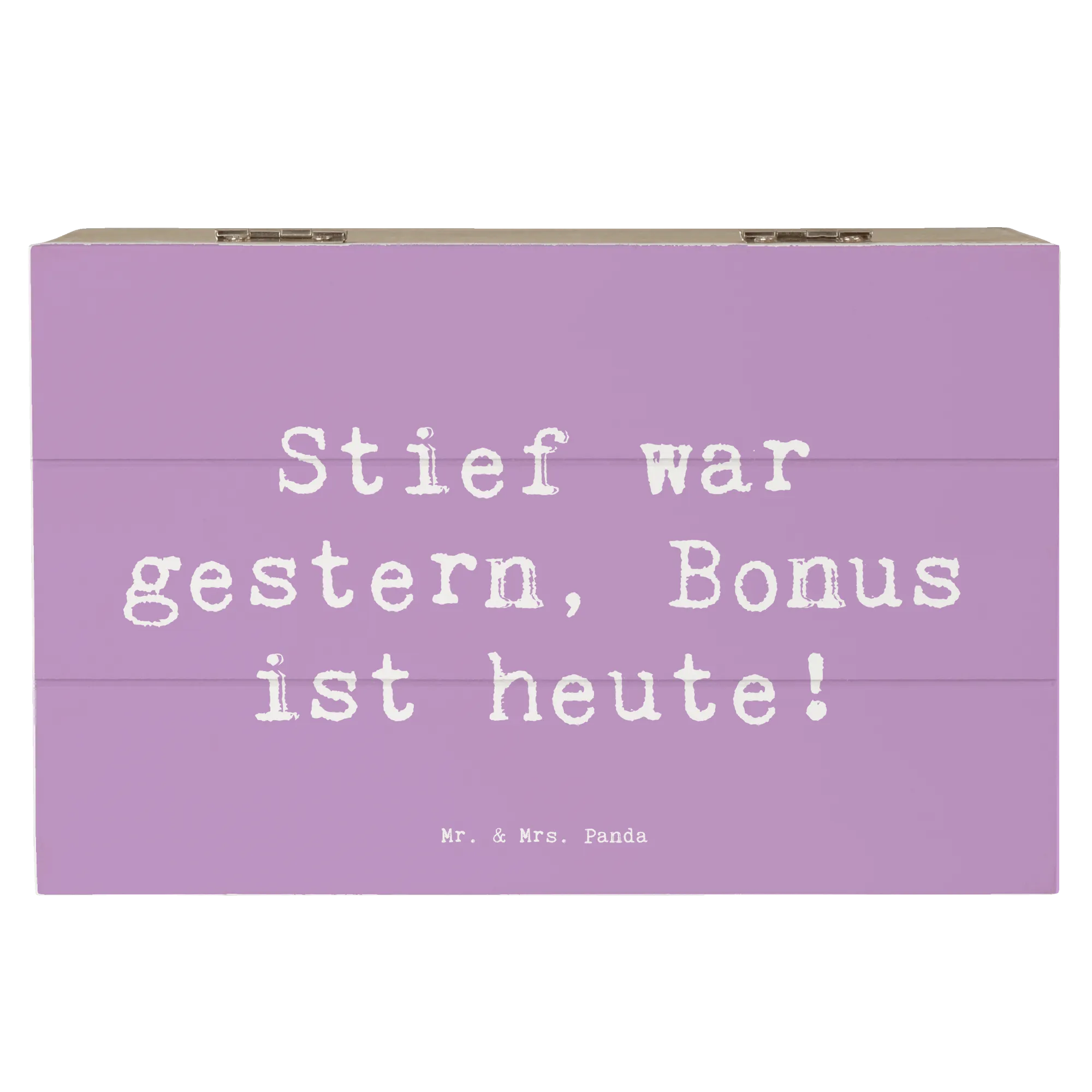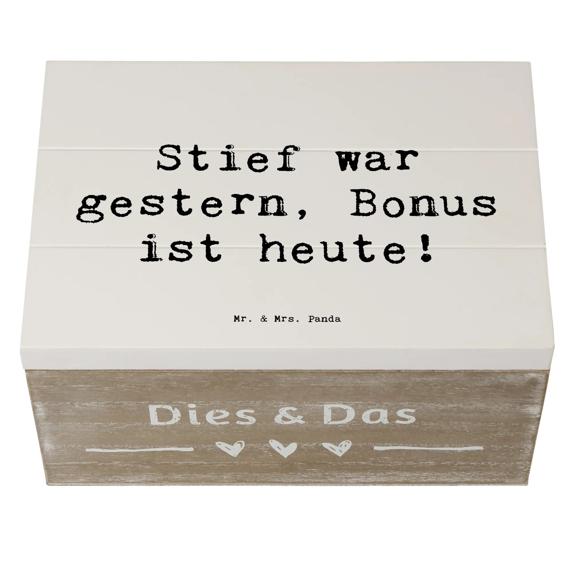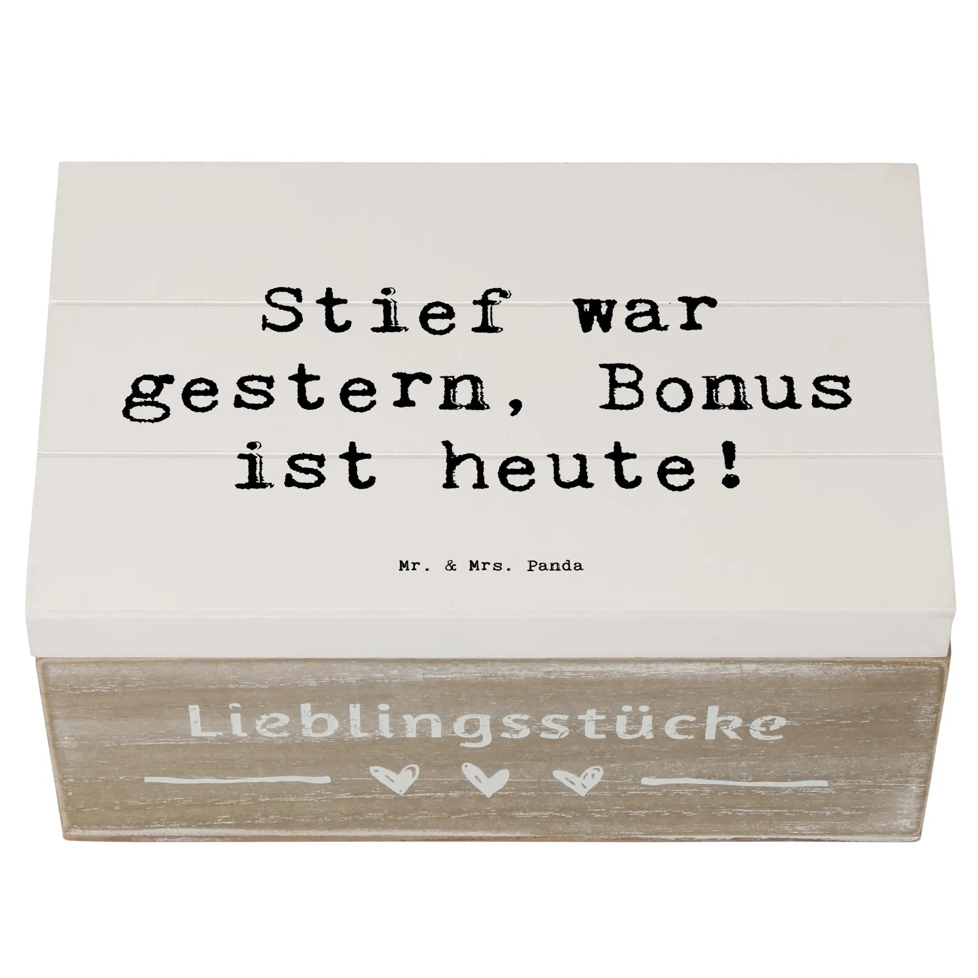 Die sentimentalen Worte "Stief war gestern, Bonus ist heute!" machen die Kiste zu einem wertvollen Geschenk, das Fakt und Gefühl unter einen Hut bringt.