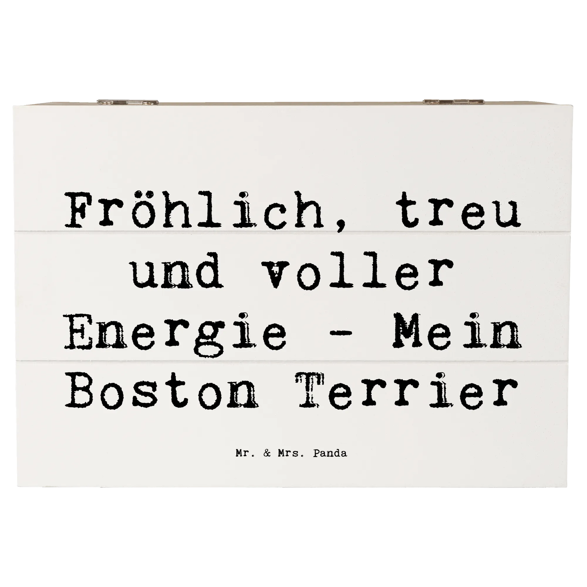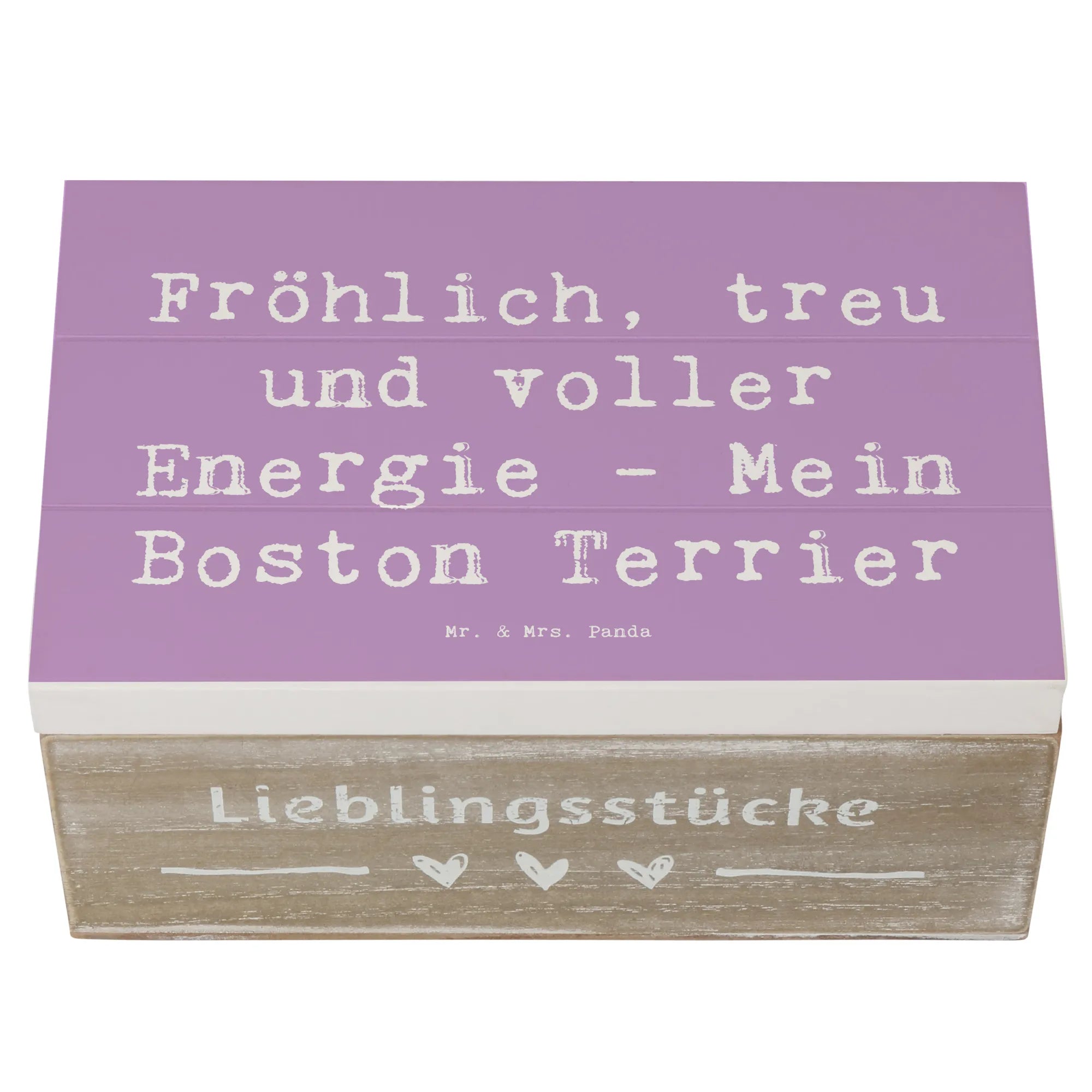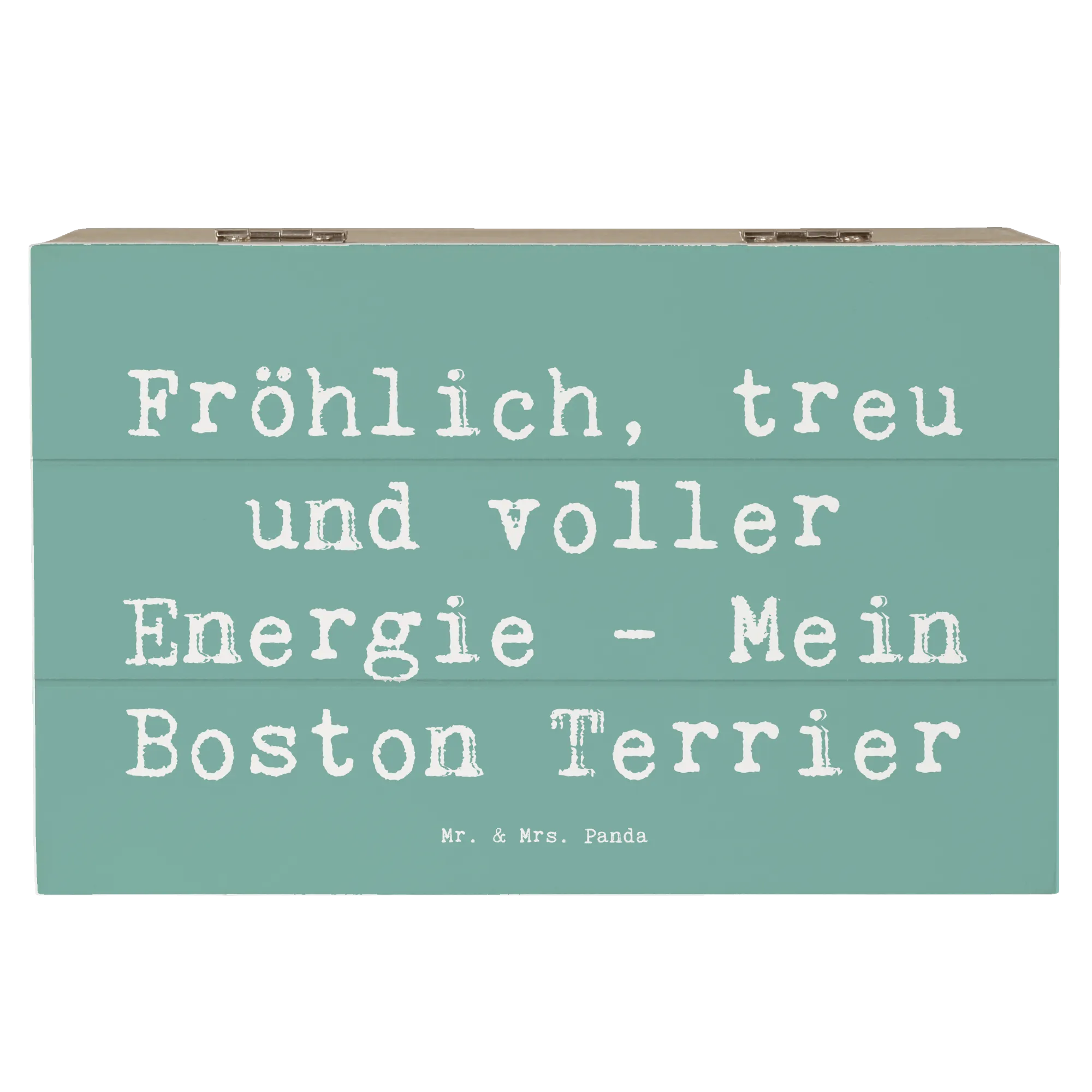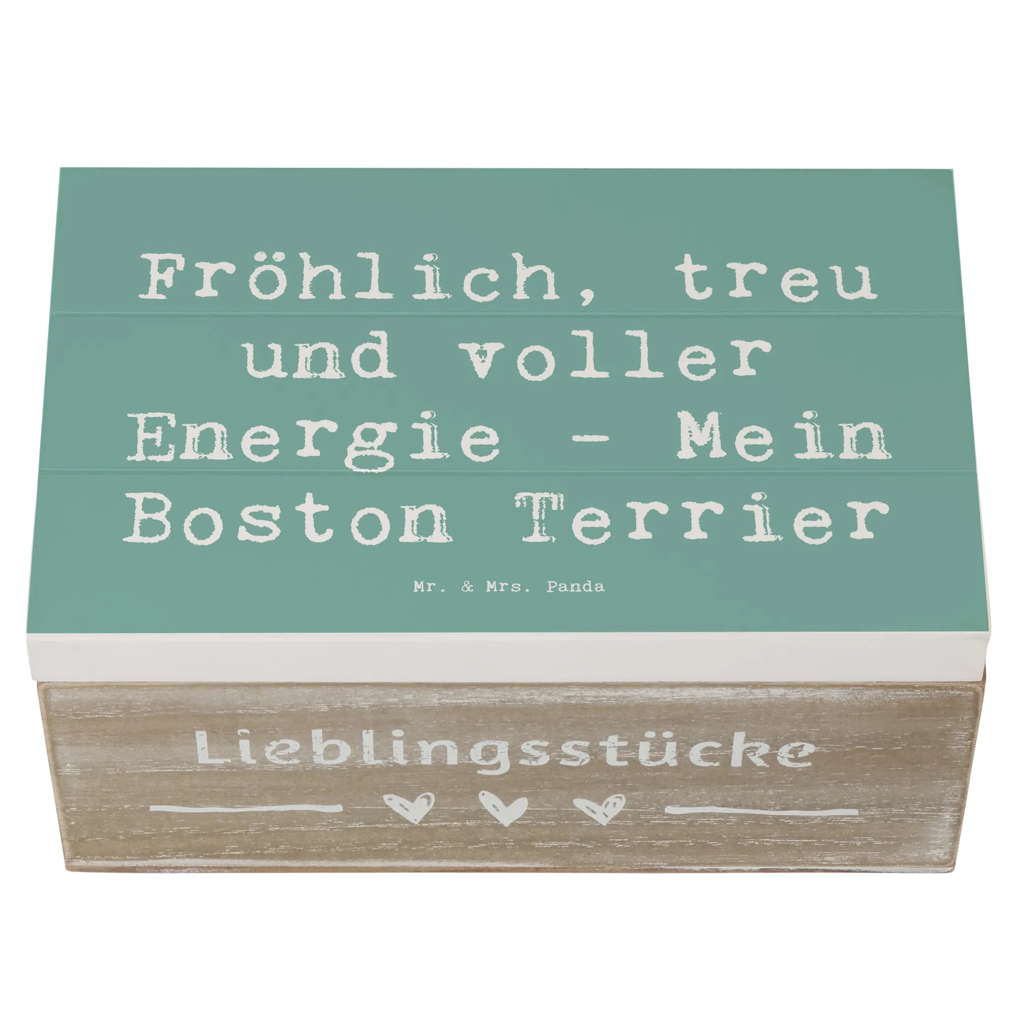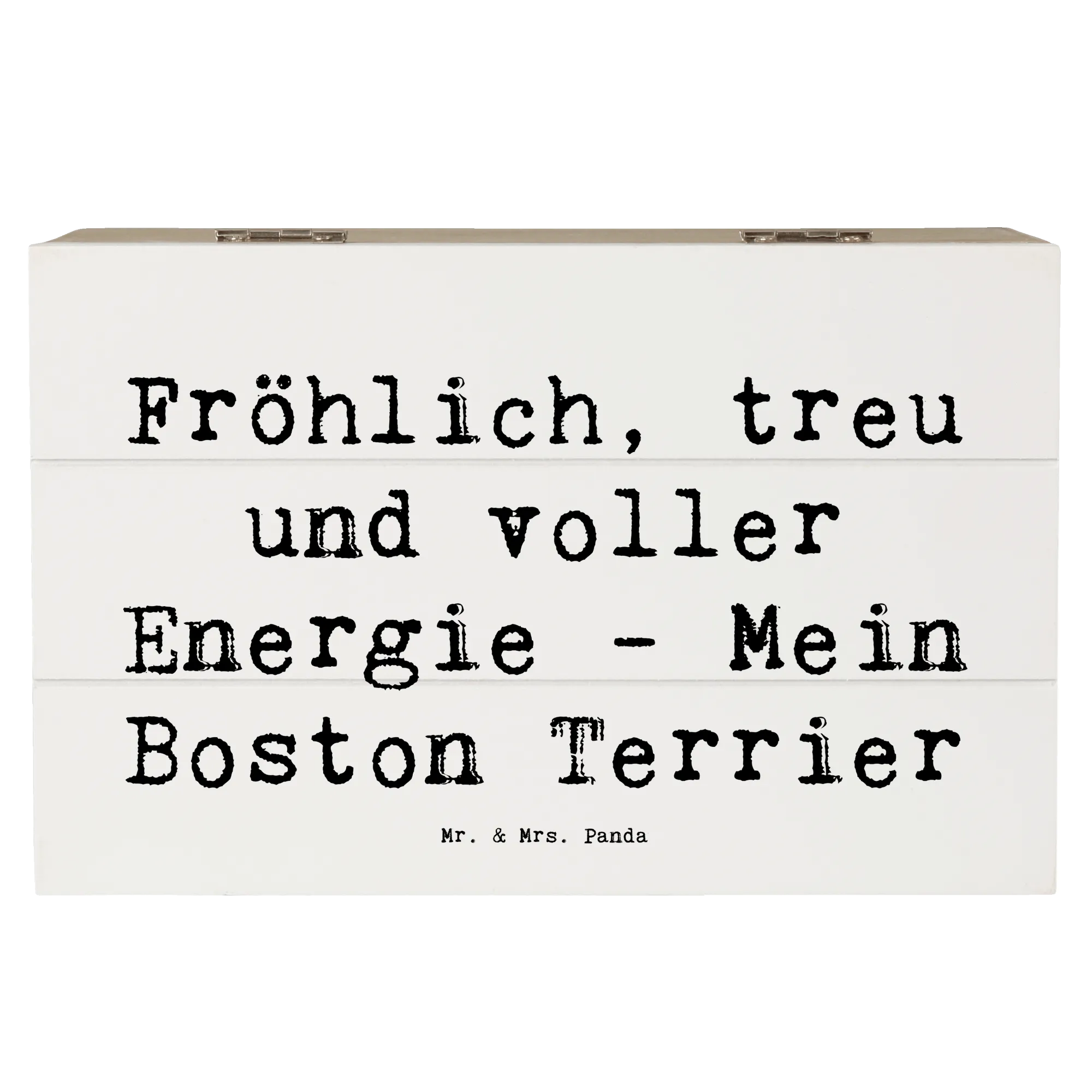 Entdecke die charmante Holzkiste von Mr. & Mrs. Panda, die nicht nur praktisch, sondern auch ein echter Hingucker ist! Mit dem niedlichen Motiv "Fröhlich, treu und voller Energie - Mein Boston Terrier" zeigst du deine Liebe zu dieser beliebten Hunderasse.