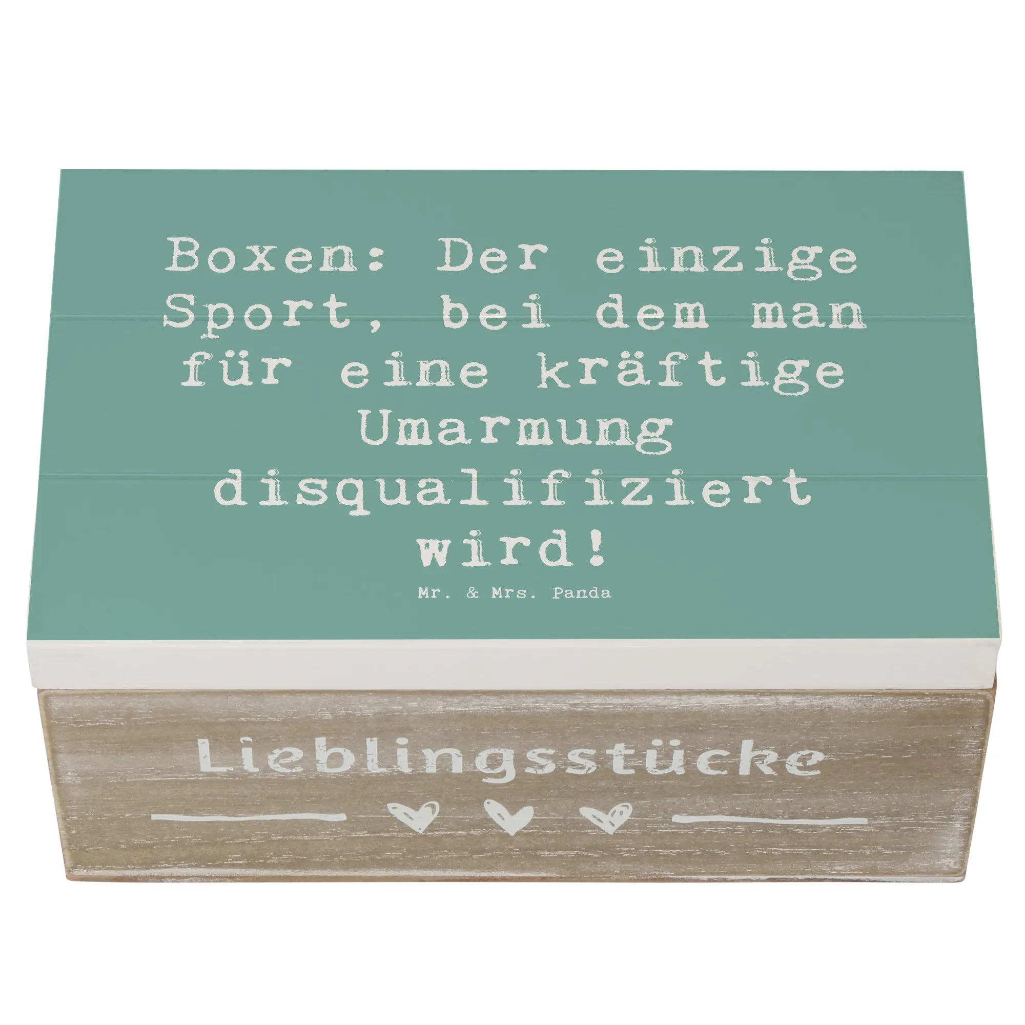 Holzkiste Spruch Boxen: Der einzige Sport, bei dem man für eine kräftige Umarmung disqualifiziert wird! - 19 x 12 cm - Meeresbrise