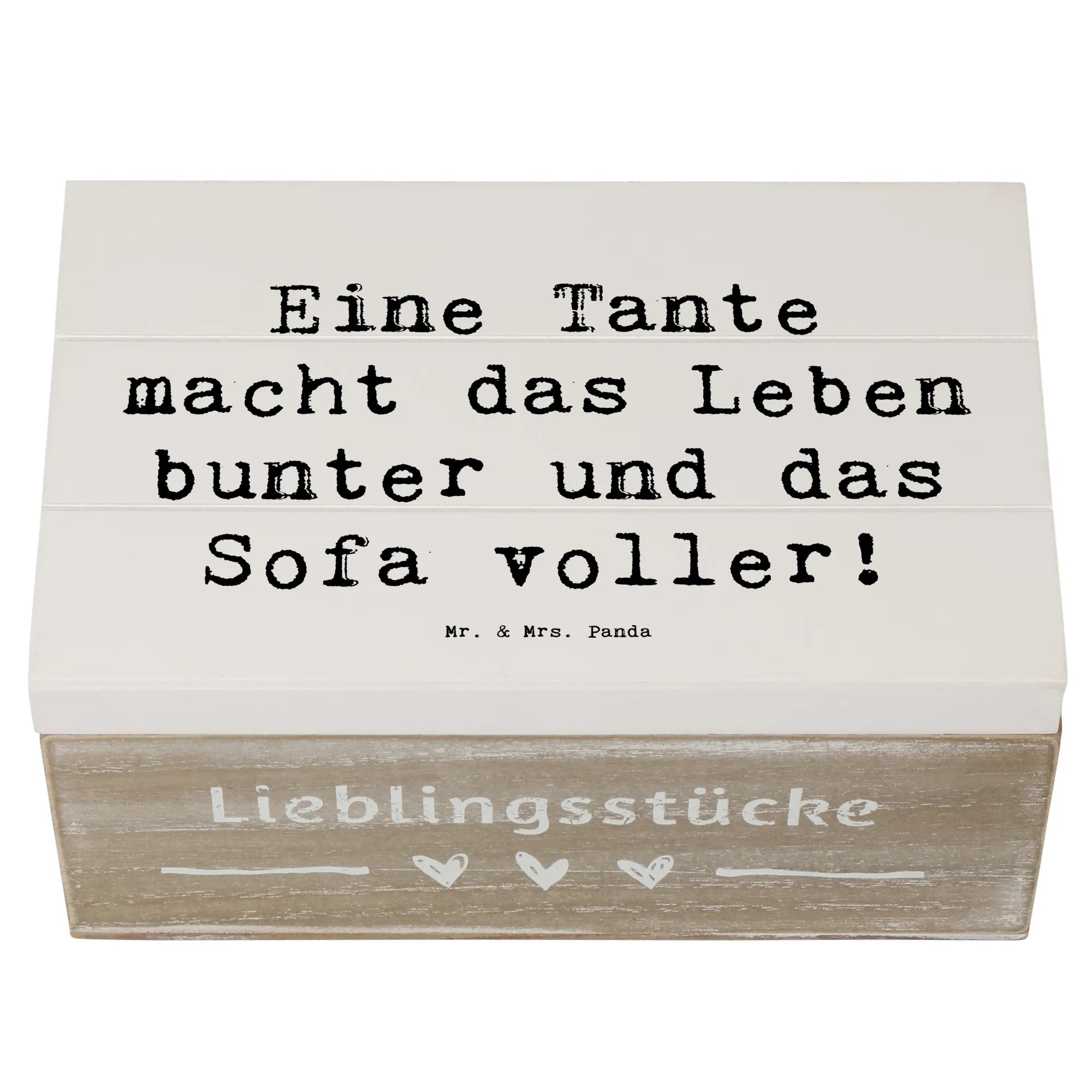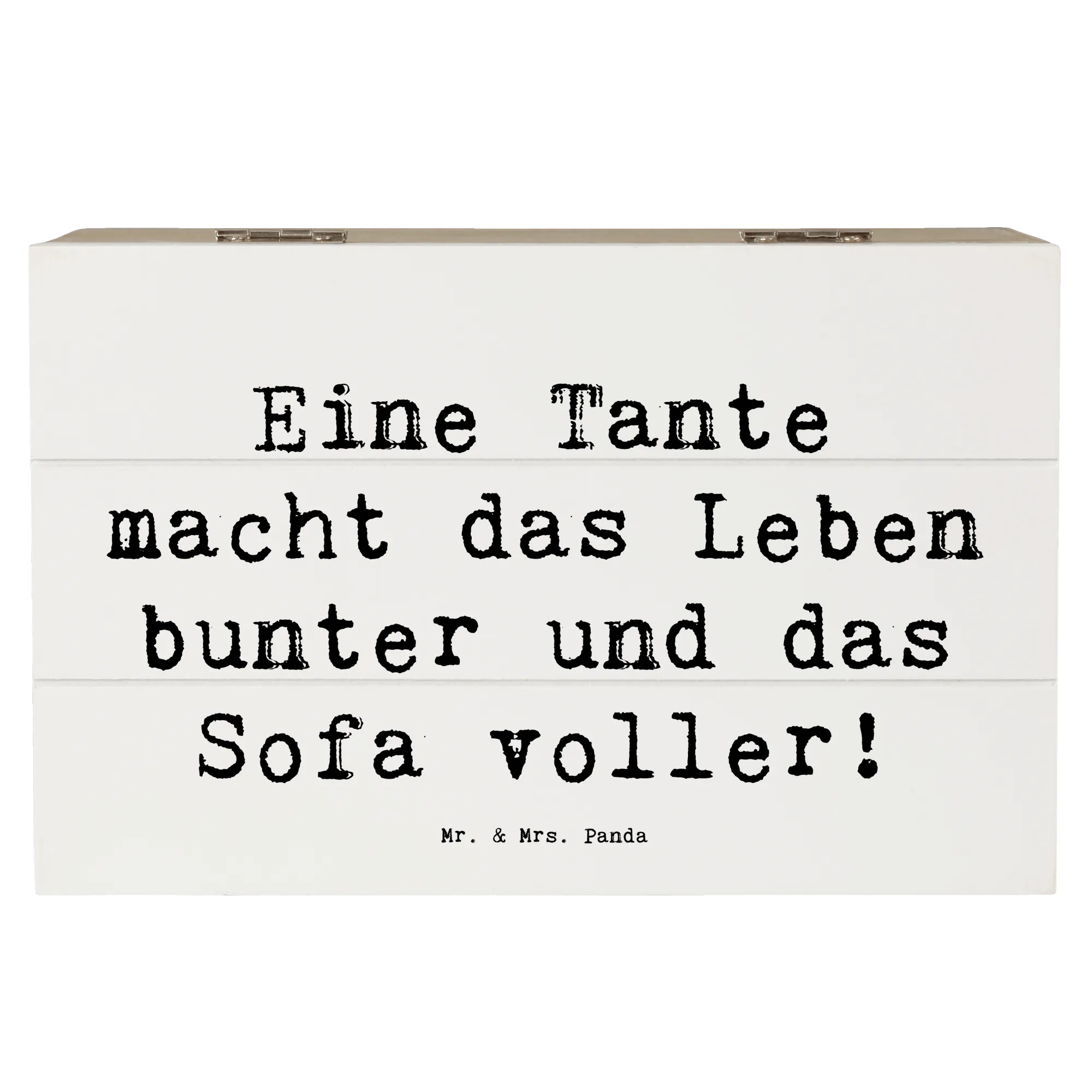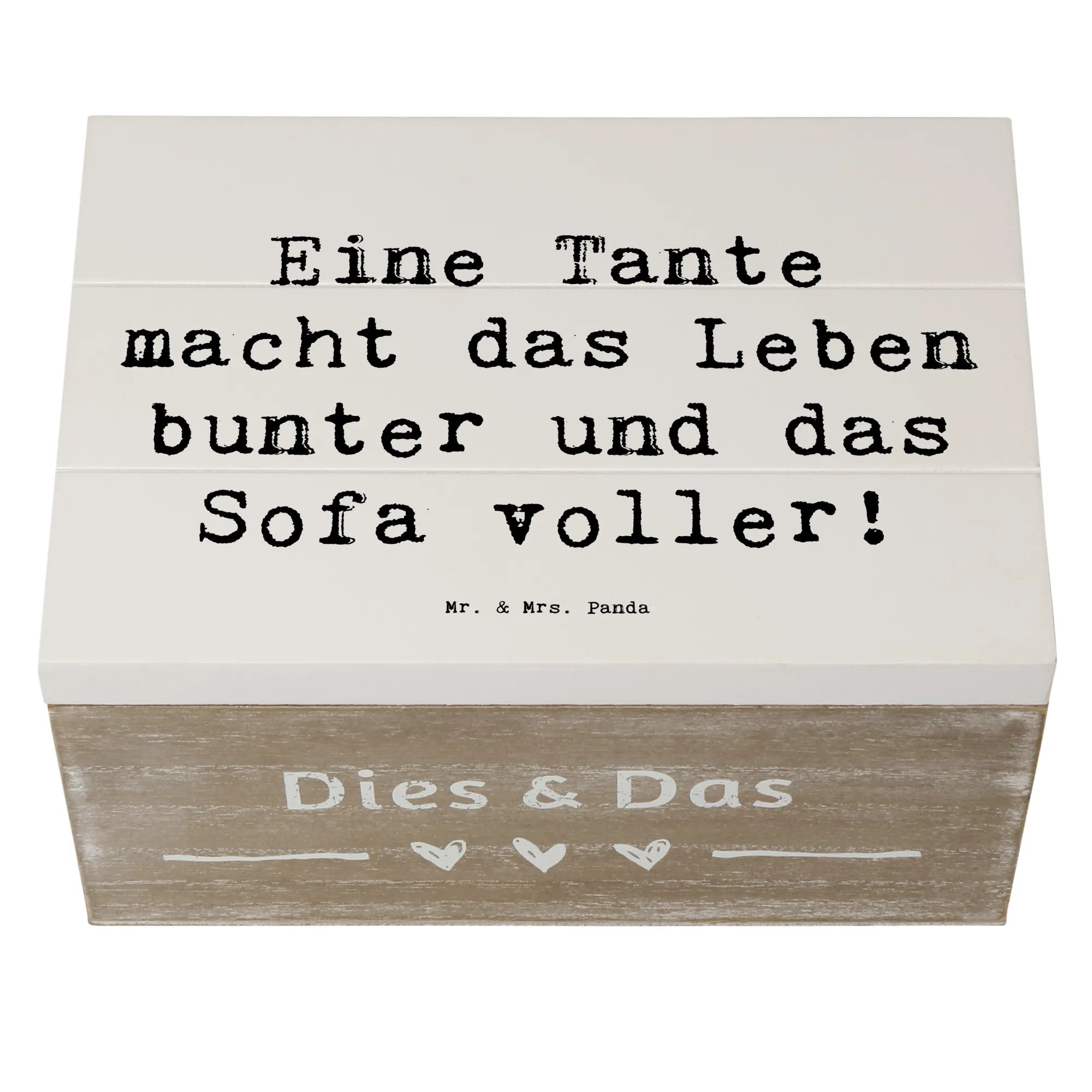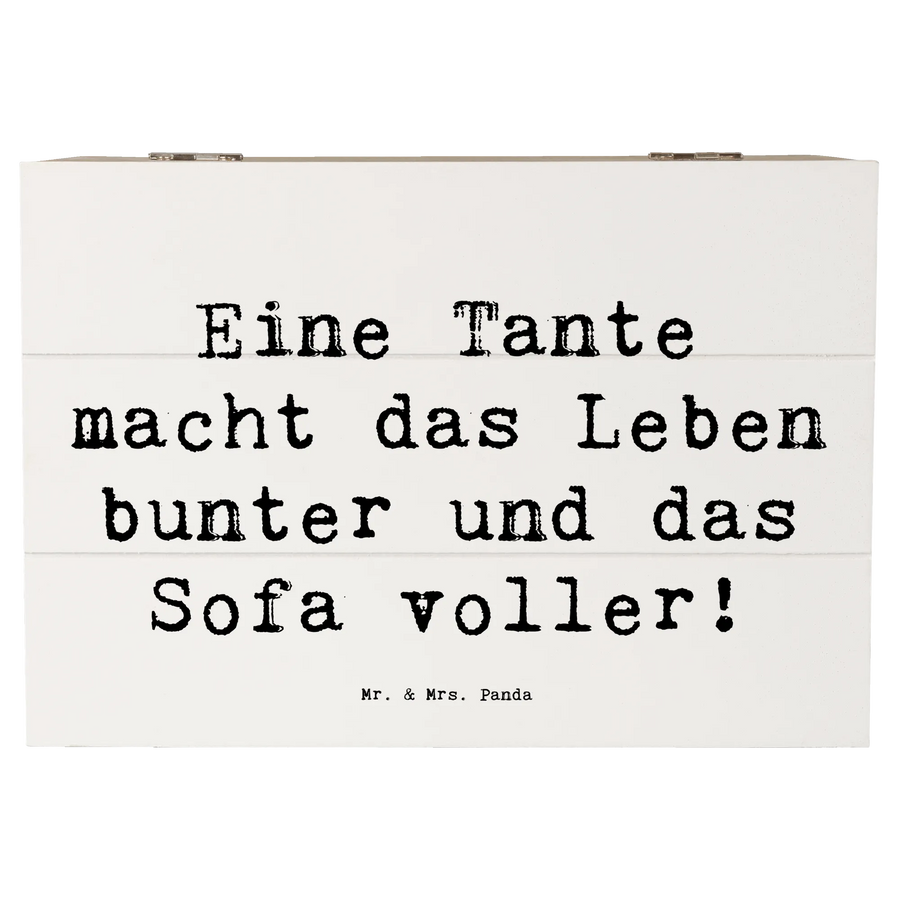 Die wunderschöne Holzkiste von Mr. & Mrs. Panda ist das perfekte Geschenk für Deine Tante. Mit einem liebevollen Spruch, der sagt: "Eine Tante macht das Leben bunter und das Sofa voller!", ist diese Kiste nicht nur praktisch, sondern auch eine wundervolle Erinnerung.