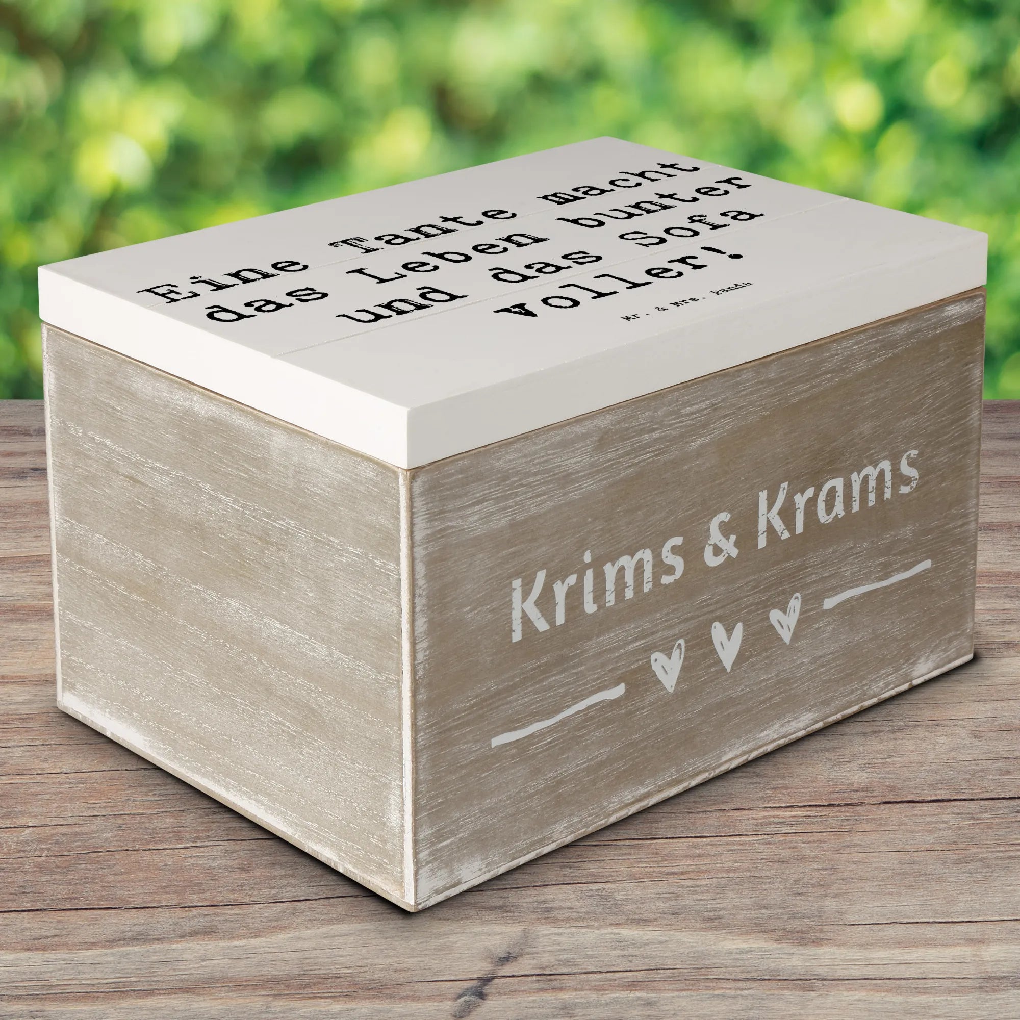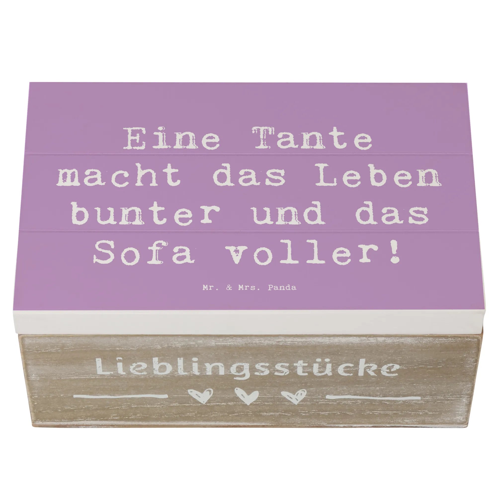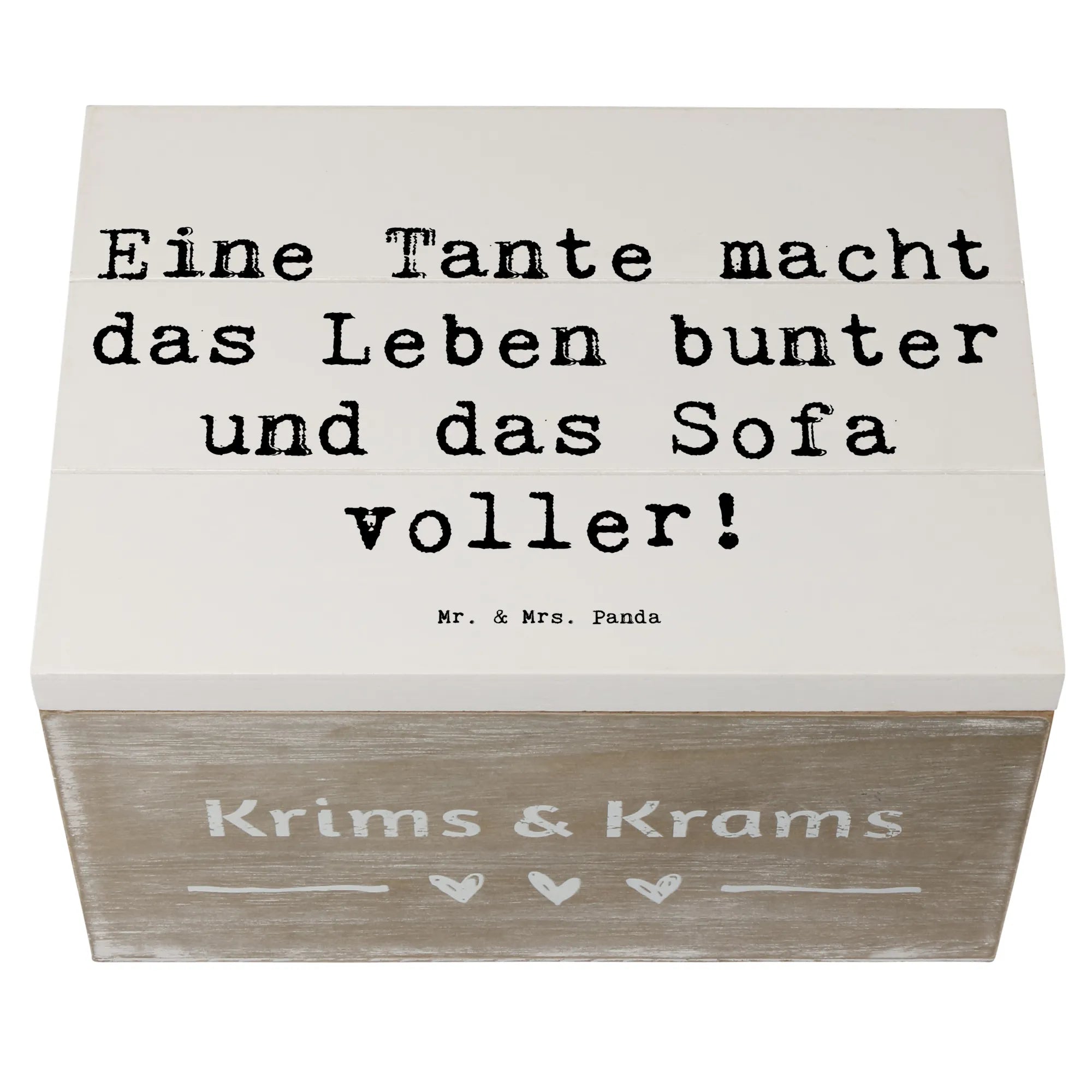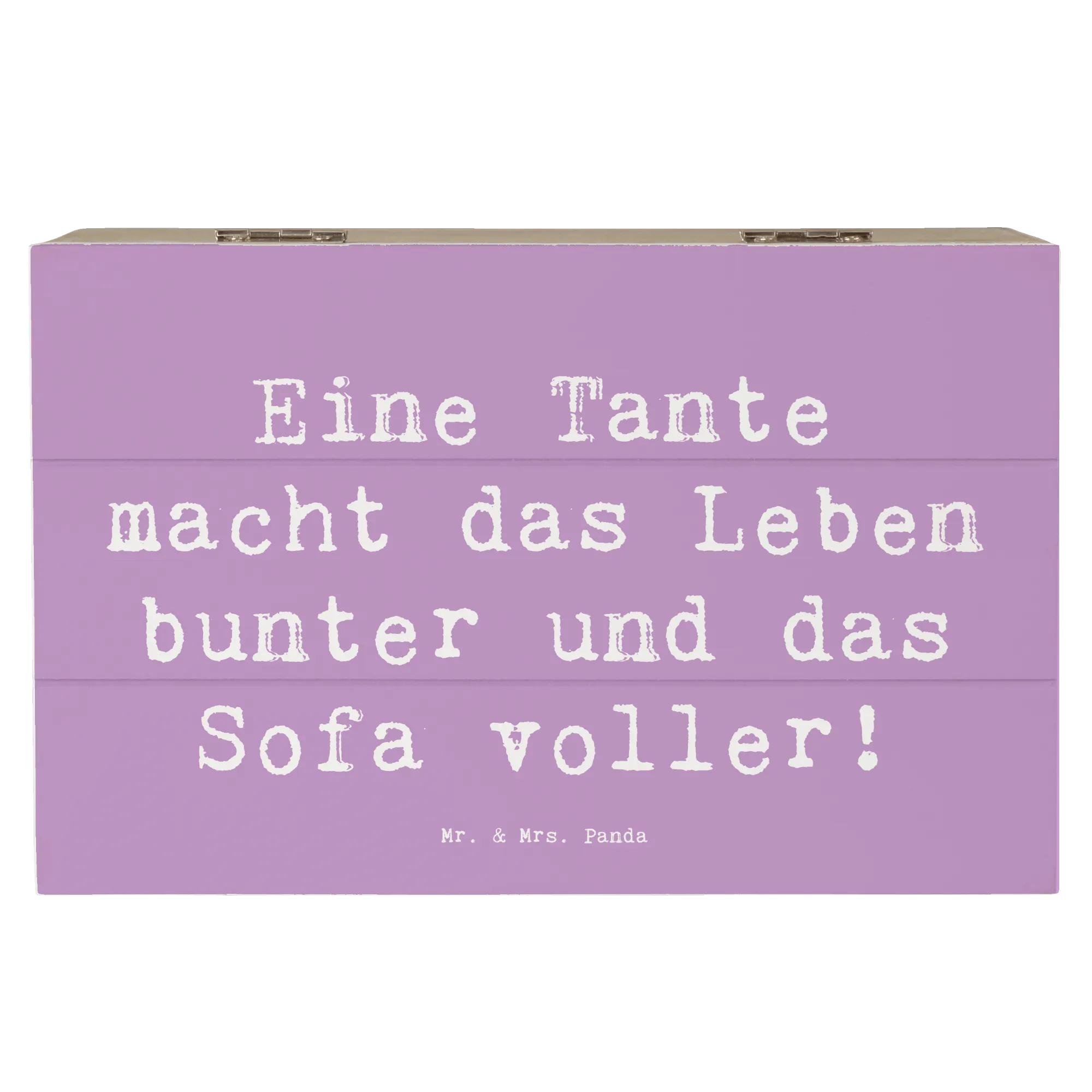 Die wunderschöne Holzkiste von Mr. & Mrs. Panda ist das perfekte Geschenk für Deine Tante. Mit einem liebevollen Spruch, der sagt: "Eine Tante macht das Leben bunter und das Sofa voller!", ist diese Kiste nicht nur praktisch, sondern auch eine wundervolle Erinnerung.